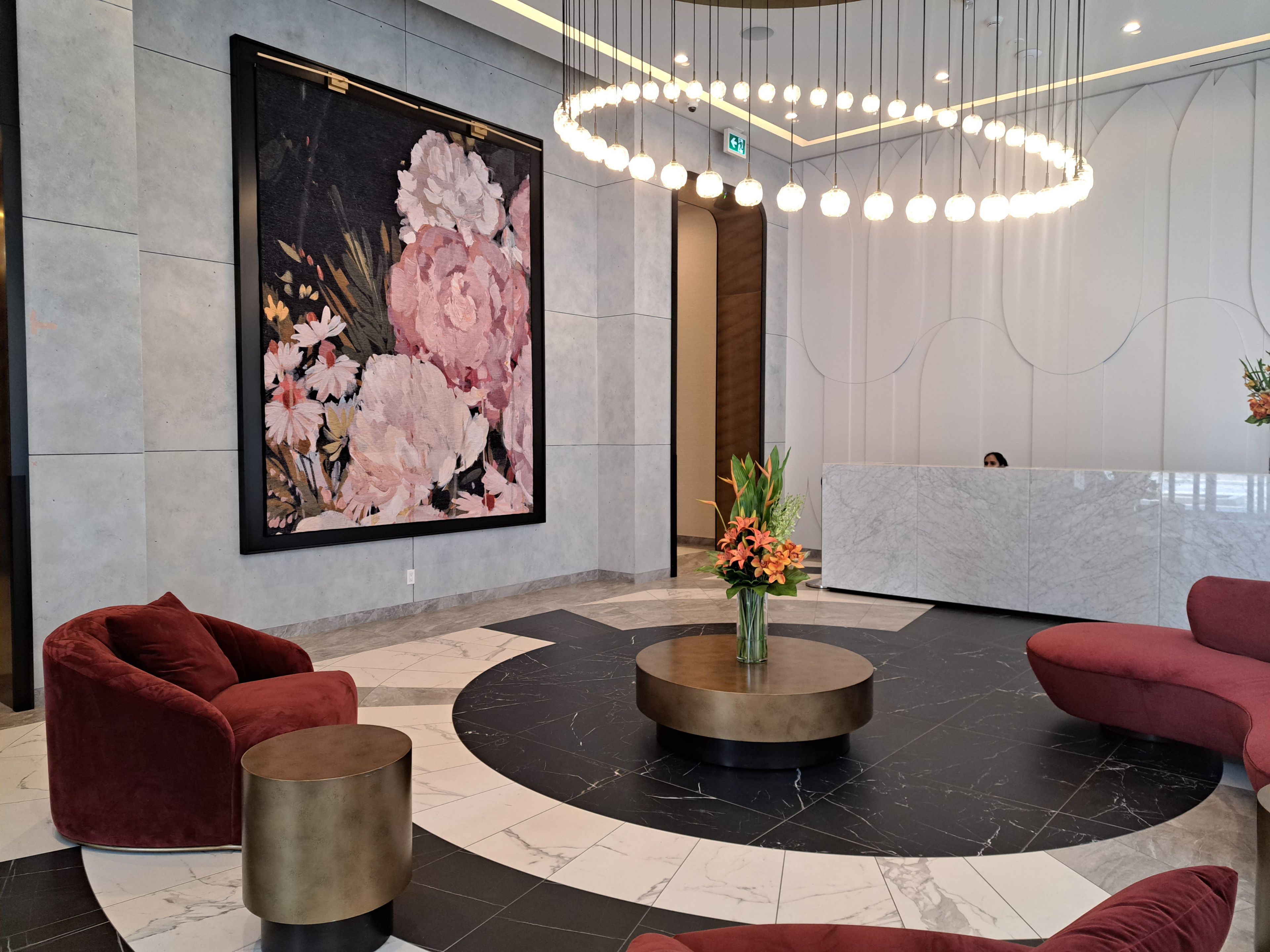 • Building amenities include fitness center, yoga studio, and 24-hour concierge.