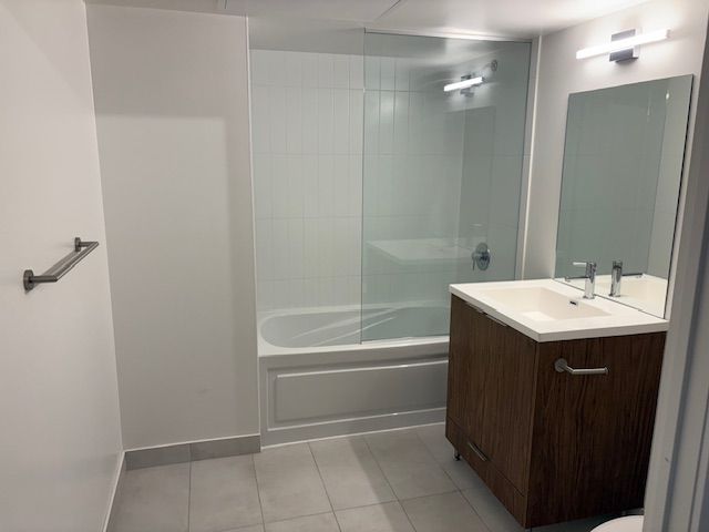 Three year newer 681 one bedroom plus an oversized den luxury condo suite , two full baths, by menkes, brags ceiling to floor windows facing east, the den could be easily used as 2nd bedroom. This boutique building is minutes to eatons centre, uot, metropolitan university of toronto, ttc, financial district & dvp and more