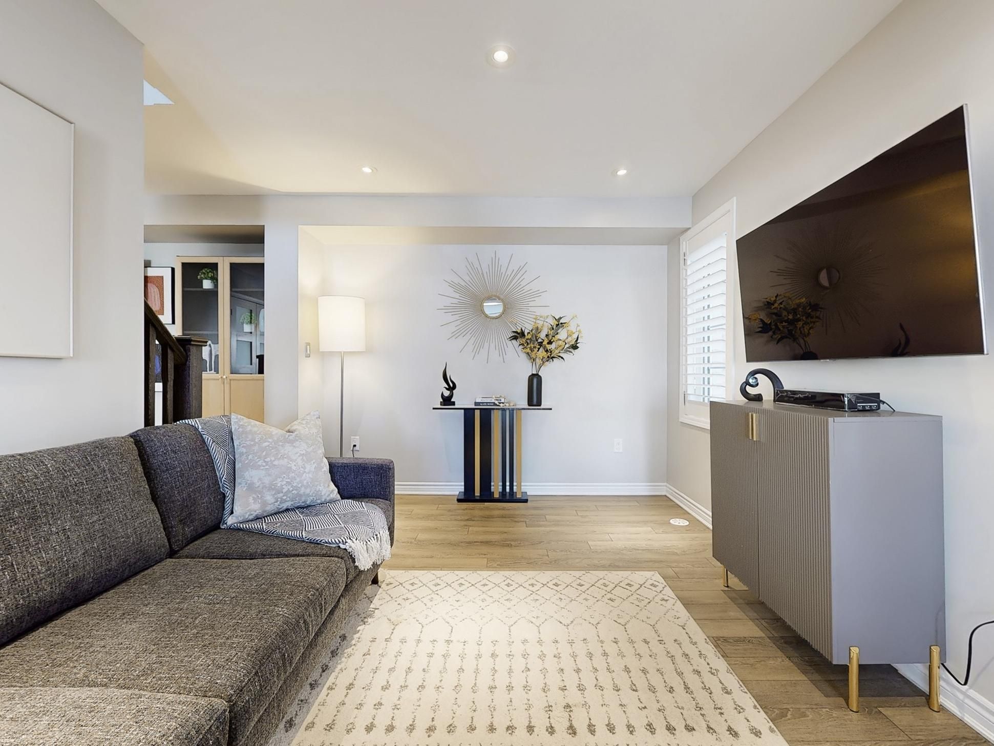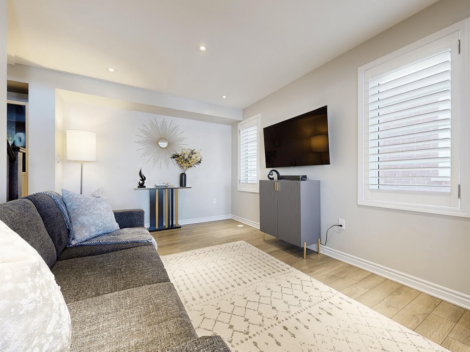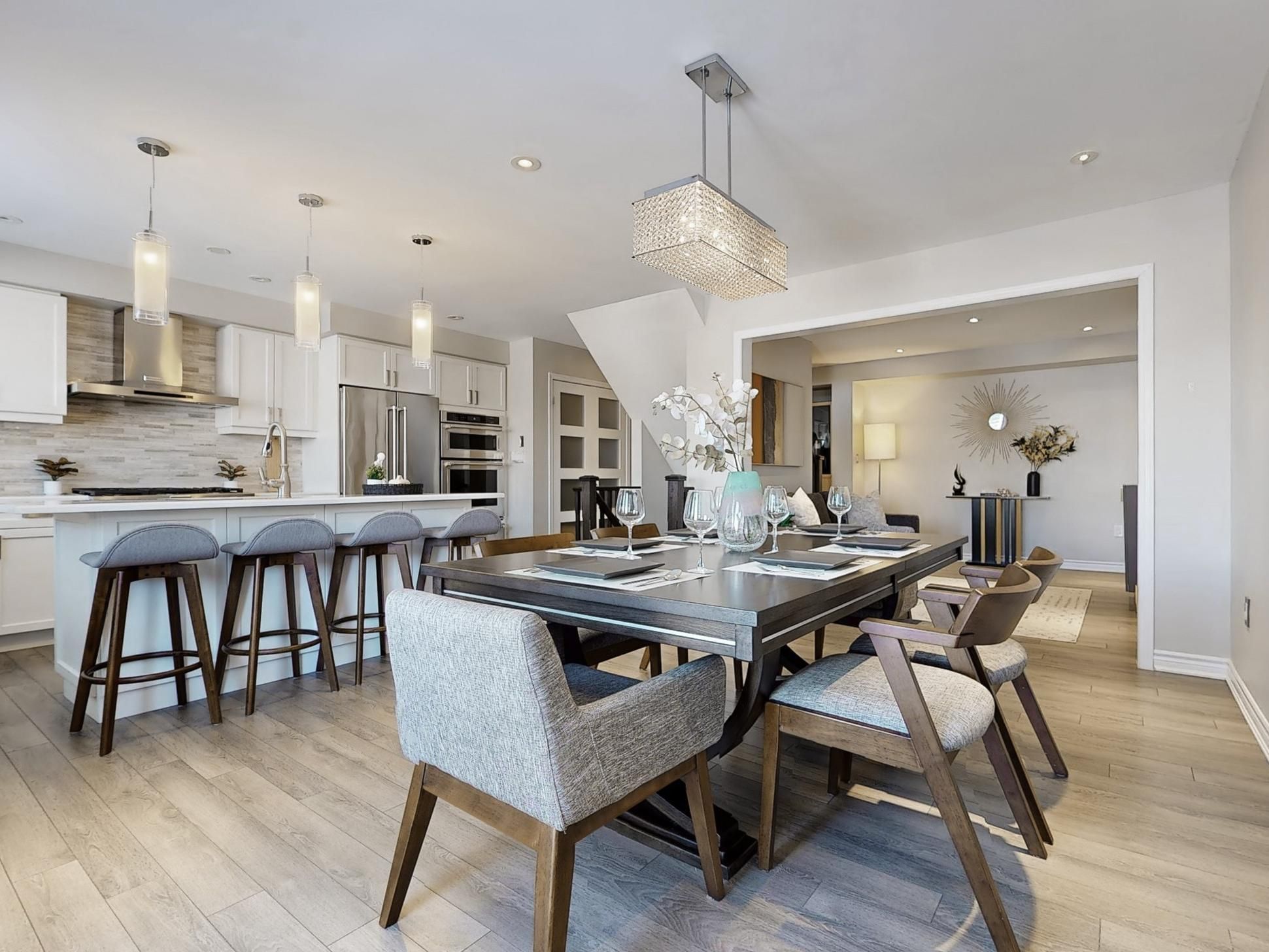 • Modern chef's kitchen featuring quartz counters and upgraded appliances.