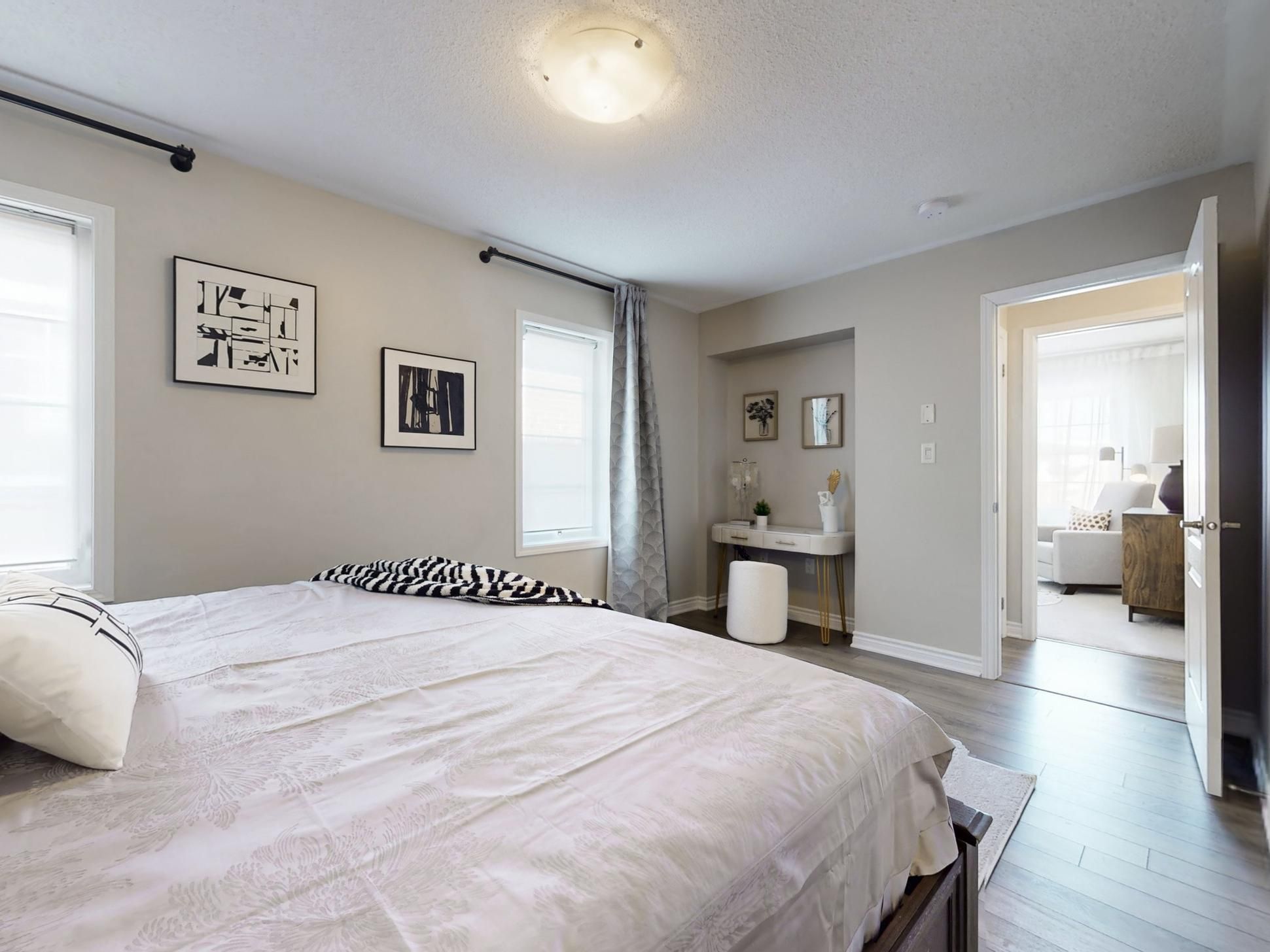 Beautiful freehold end-unit townhome featuring 3 bedrooms + main-floor den with laundry & storage. Stunning chef's kitchen with quartz counters, large island & upgraded appliances. Spacious dining area with walk-out to balcony.,no sidewalk, 3-car parking. Primary bedroom with ensuite bath. Close to hwy 404, shops, plazas & upcoming t&t supermarket. Includes: kitchenaid pro series fridge, 6-burner gas cooktop, double oven & warming drawer, dishwasher, washer/dryer, california wood shutters & central a/c.