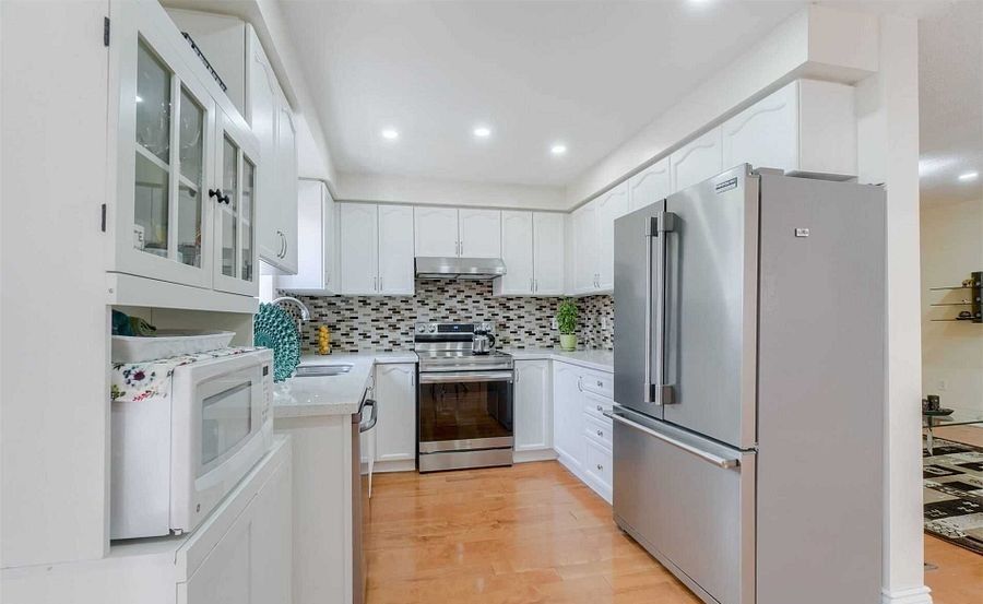 Immaculately maintained, beautiful 3 bdrm 4 bath semi. 2bedroom basement with city approved legal side entrance, full kitchen & full bath provides in-law potential. Large living/dining with hardwood floors. Renovated kitchen with quartz countertop, s/s appls & backsplash. Spacious master with ensuite bath. 2 other good sized rooms. All washrooms renovated. Single garage with 2 more parkings on driveway. Deep lot/backyard. Pot lights. No carpet in the house
