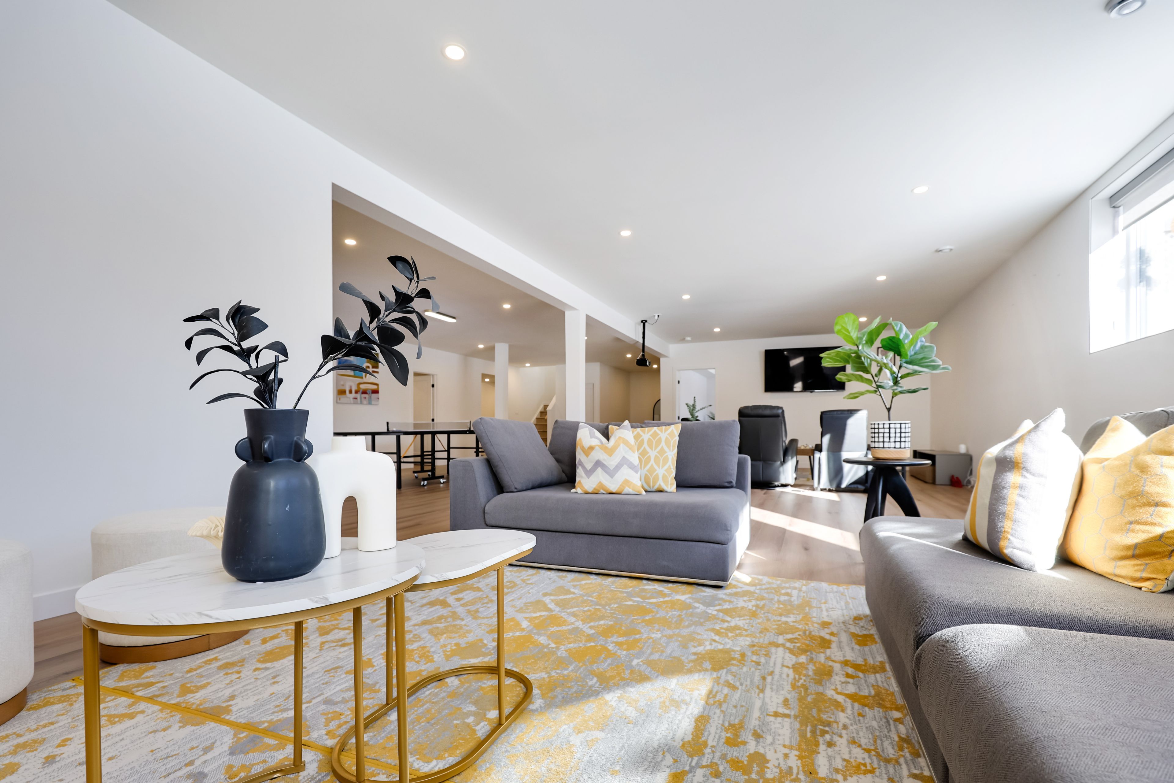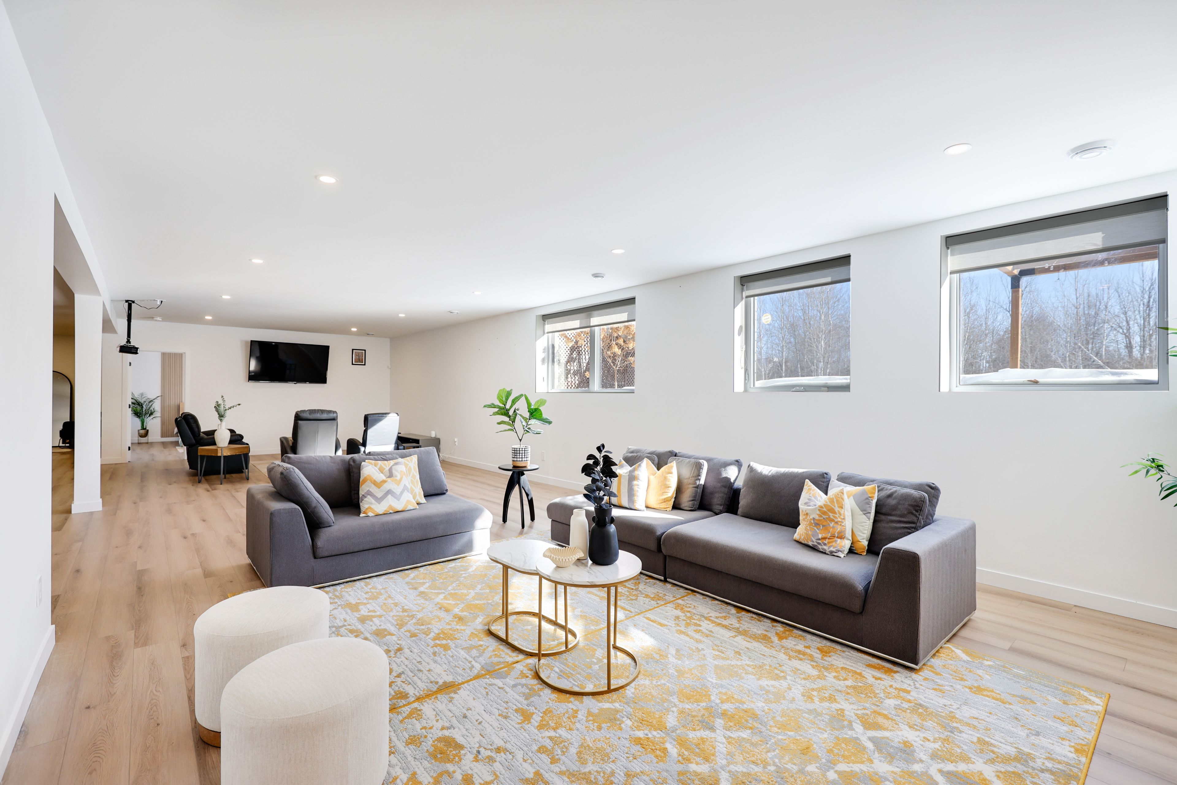 • Finished lower level with gym, recreation area, and additional bedrooms.