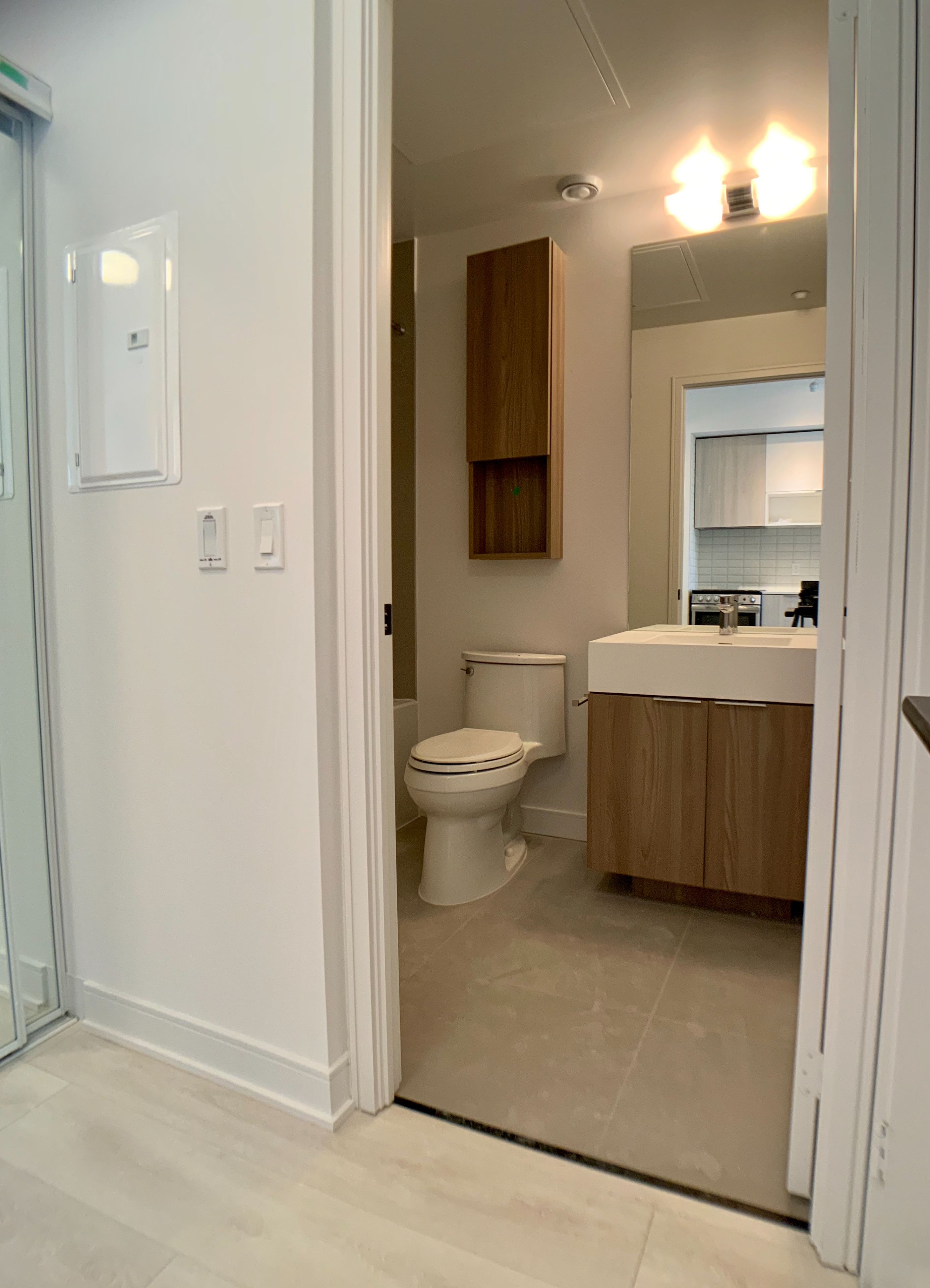 The most functional layout in the building with extra large and extra wide balcony. 9ft ceiling! Bright and spacious real 1 bedroom layout with window in bedroom. Wide plank flooring, high end finishes, stylishly rich stone. Clean and sleek bathroom finishes.