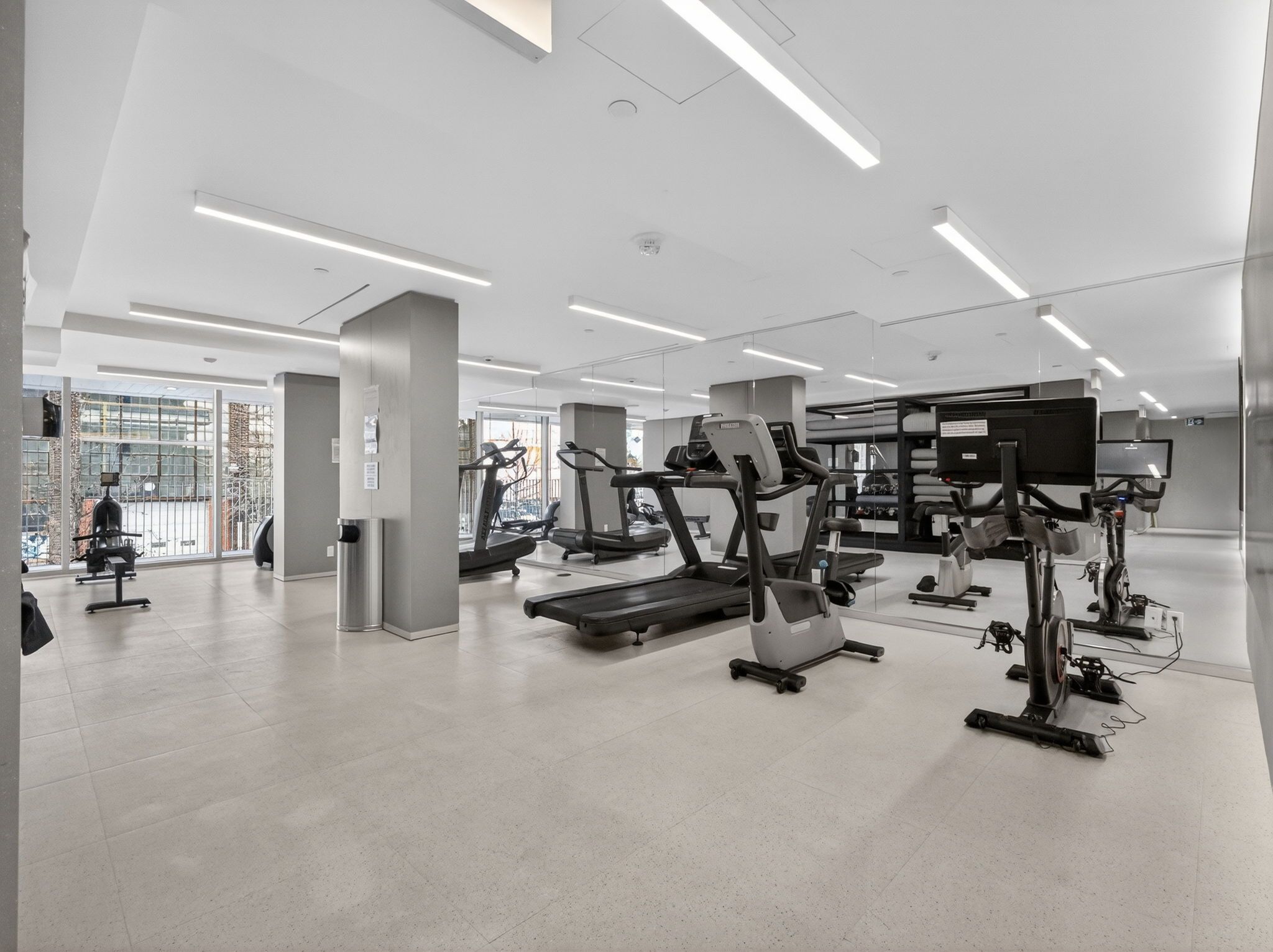 • Full-service building offering amenities like gym, concierge, and BBQ area.