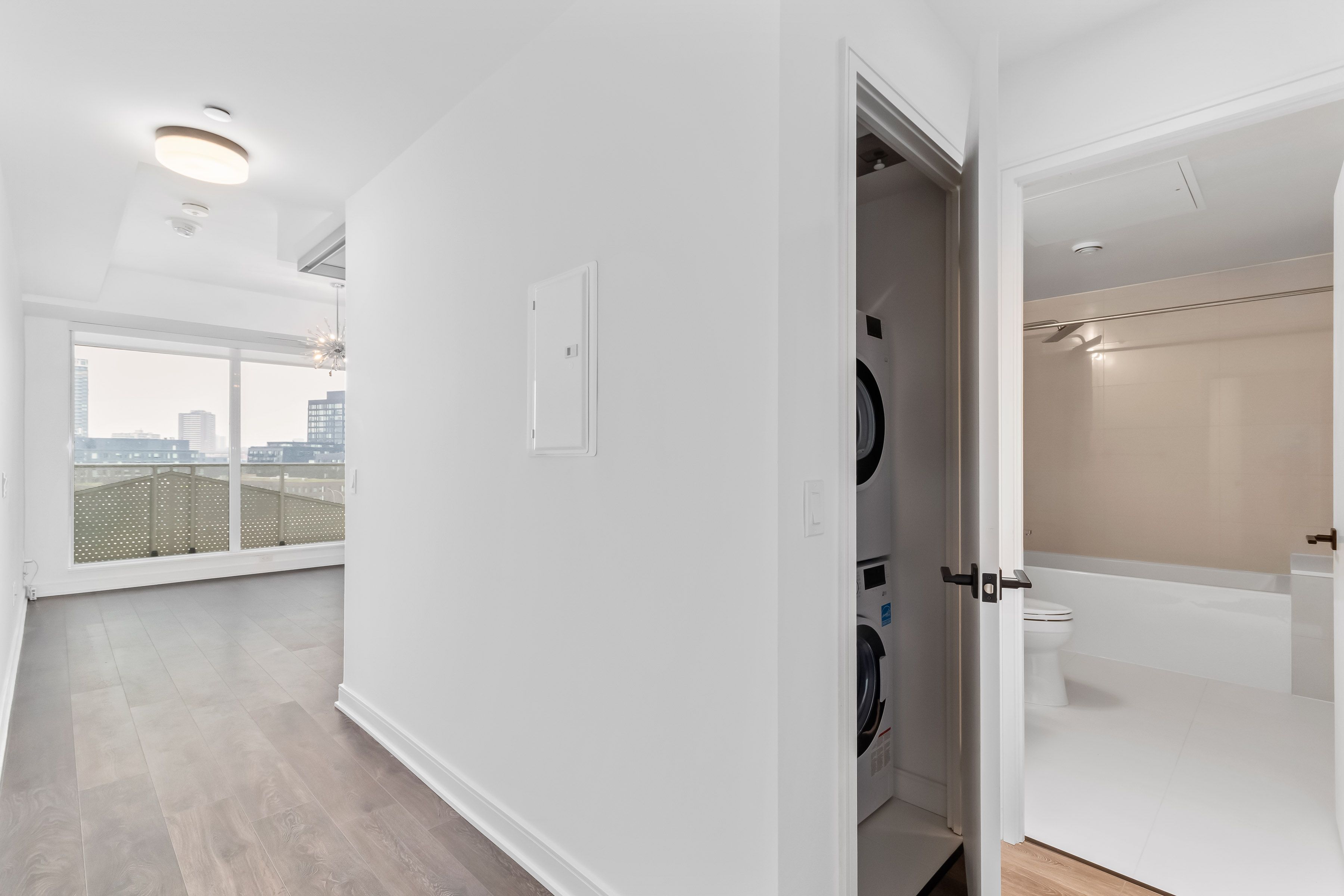 Welcome to the incredible canary district! This spacious unit offers an open concept layout with upgraded laminate flooring, loads of natural light, built in appliances, large den for the perfect office, all within walking distance of public transit and loads of amenities. Come take a look at this amazing unit! 1 locker included.