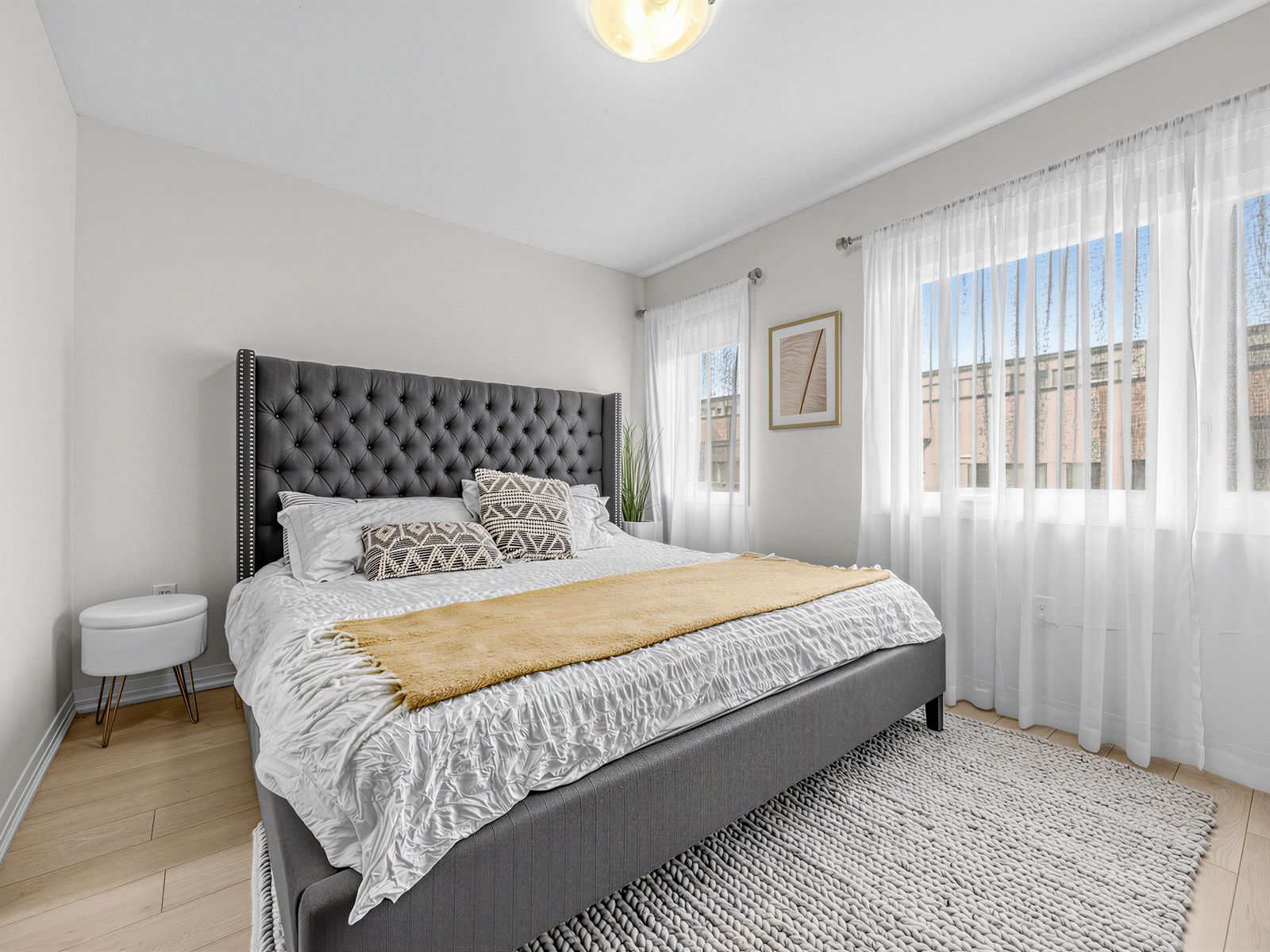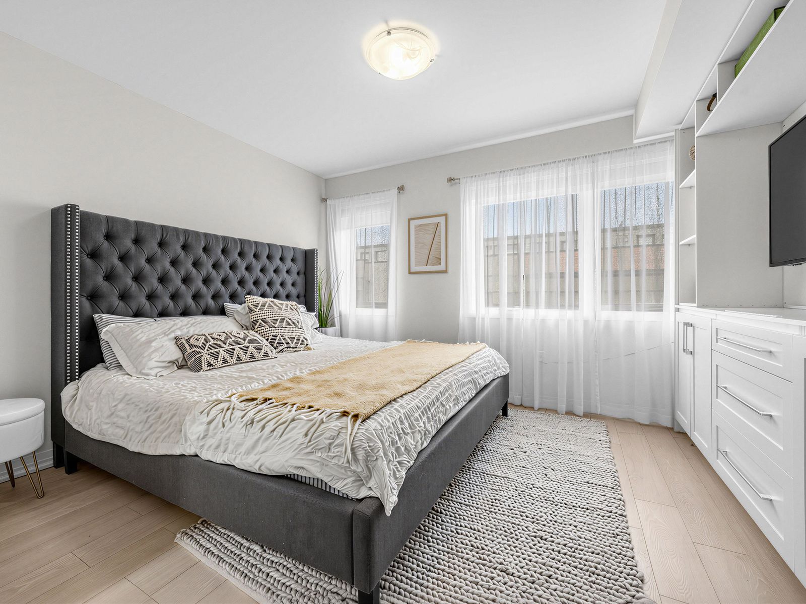 • Bright open-concept layout with large windows and 9-foot ceilings.