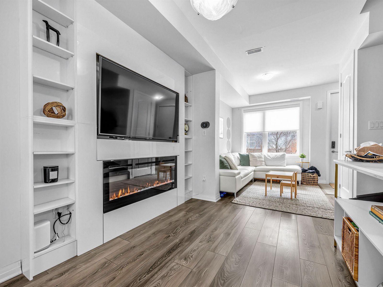 Modern 3+1 bedroom upgraded freehold townhouse by mattamy homes in the family-oriented downview park community, steps away from one of toronto's largest urban parks. Bright with large windows and 9-foot ceilings. The open-concept layout fills with natural light throughout. Features a sleek kitchen with quartz countertops, stainless steel appliances, extra custom cabinetry for additional storage and a large island-perfect for everyday living and entertaining. Check out the custom built-in tv unit and other custom built-ins throughout the home. Check out the carpet-free floors, stained oak staircases, and a walk-out to a private balcony that add to the home's appeal for family and entertaining guests. 2 expansive rooftop terraces provide extra private outdoor space for summer lounging with breathtaking unobstructed views of downsview park. Direct private garage access with remote operation walks into to a finished rec room which can also be used as a 4th bedroom, home office, or guest suite. The entire third floor is dedicated to a luxurious primary retreat, complete with a large closet and upgraded 5-piece ensuite. Thoughtfully designed with 3+1 bedrooms and 3 bathrooms for comfortable family living. Located steps to 300-acre downsview park, ttc, subway, go transit, shopping, schools, and major highways. Designated visitor parking for guests staying overnight. A great opportunity to own a move-in-ready home in a vibrant, growing and family-oriented neighbourhood.