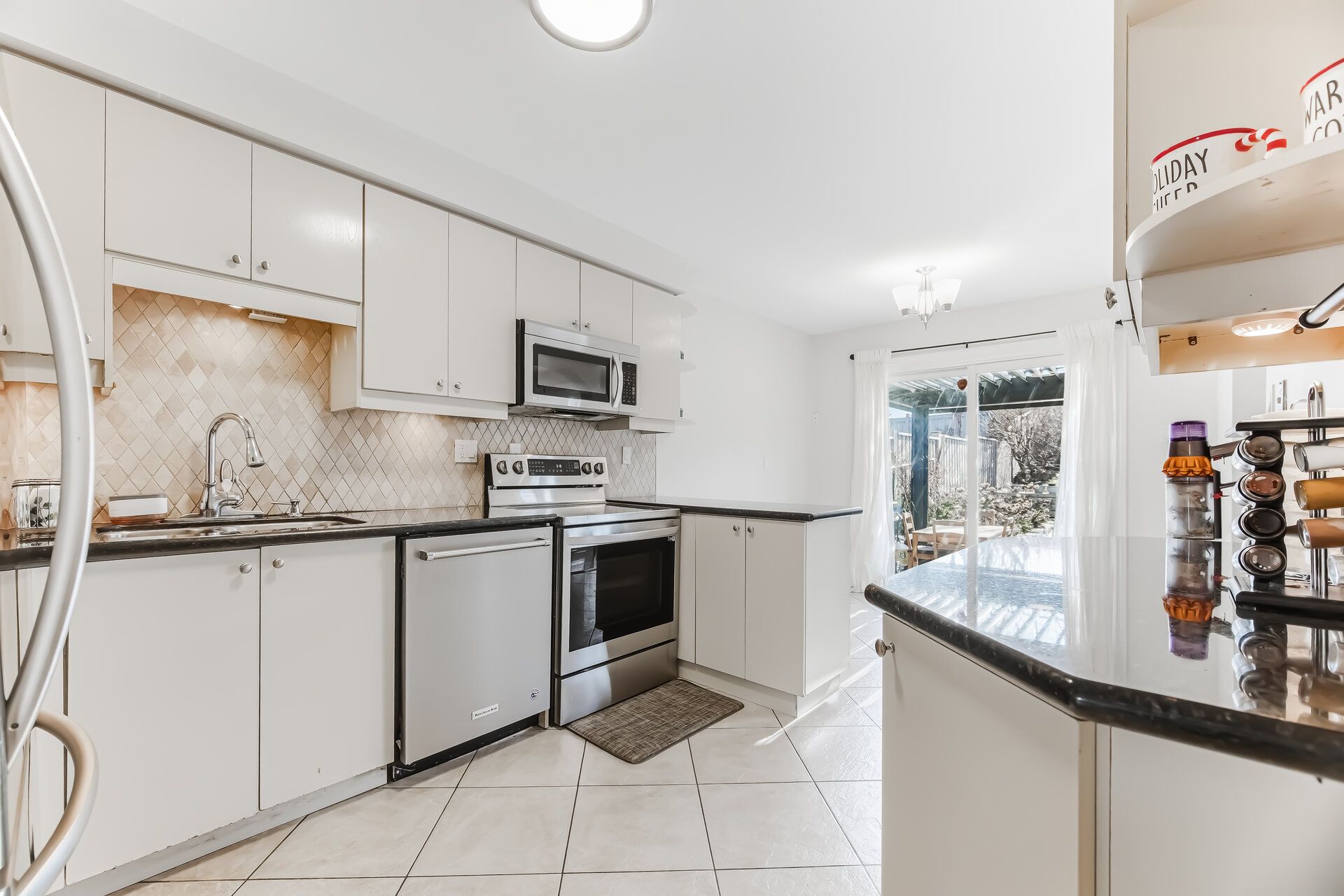 • Updated kitchen includes stainless steel appliances and granite counters.