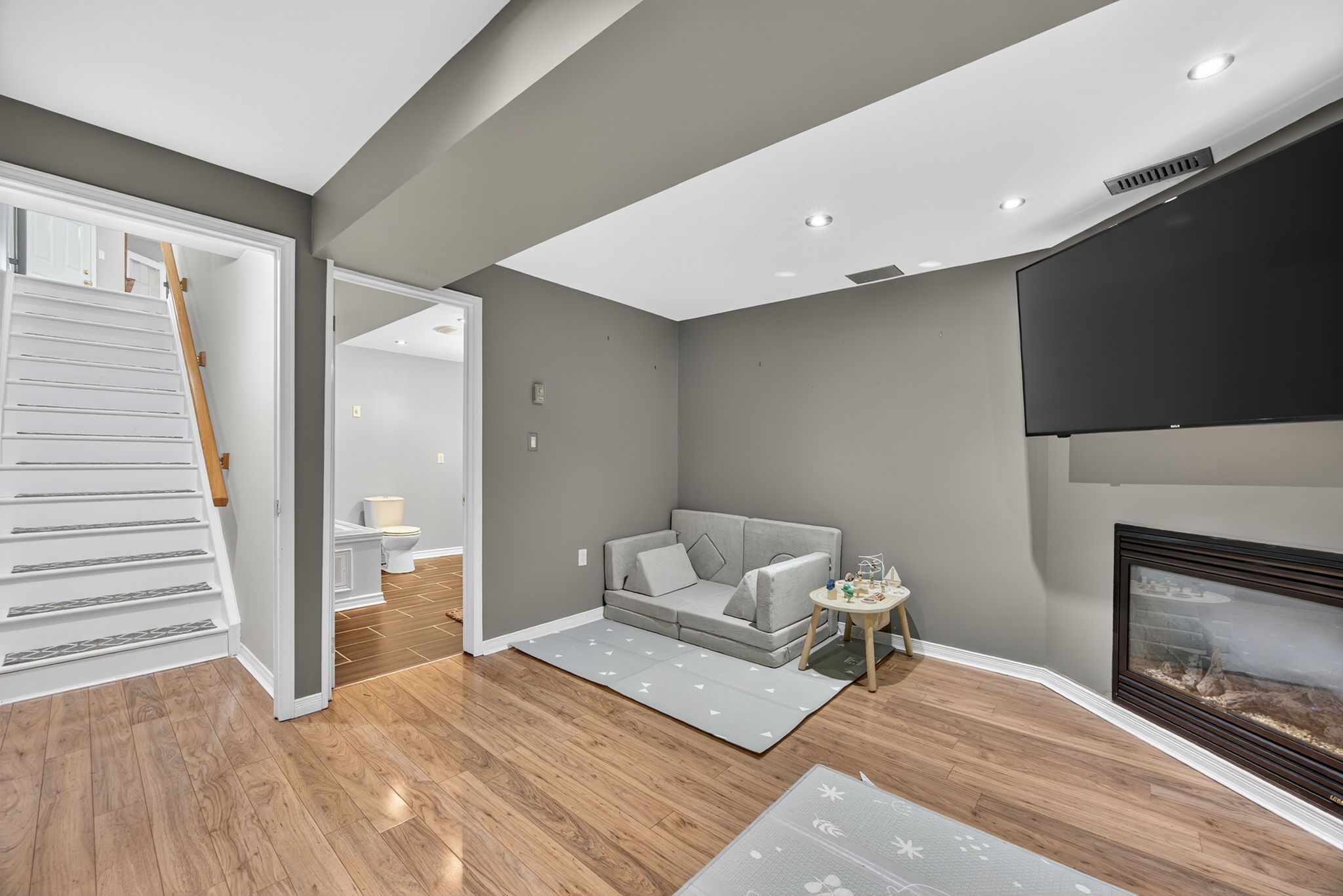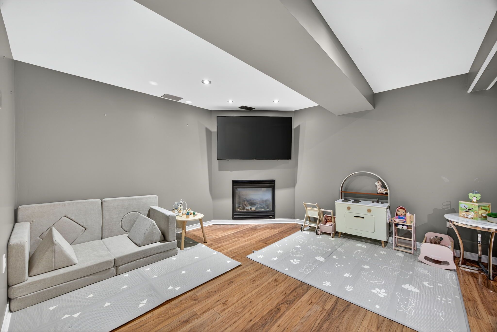 • Fully finished basement with additional bedroom and cozy gas fireplace.