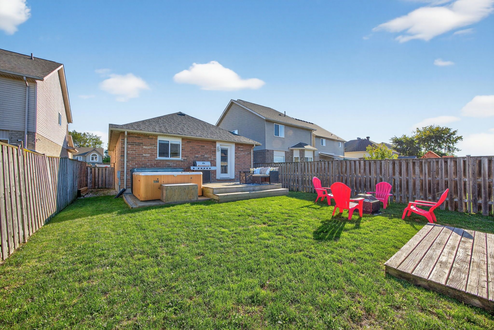 • Fenced backyard featuring a deck and hot tub for relaxation.