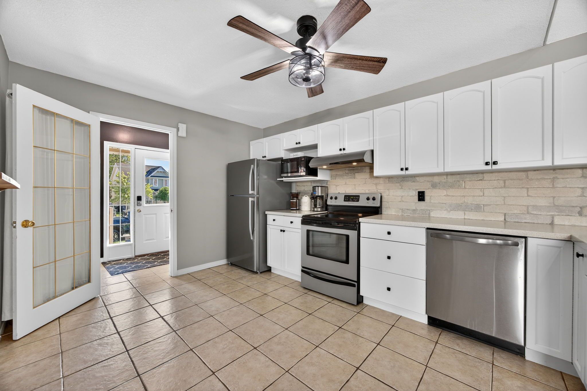 Beautifully maintained detached bungalow offering 2+1 bedrooms, 2 full bathrooms, this home features an inviting open-concept layout with a spacious kitchen, dining, and living area highlighted by a stunning cathedral ceiling that creates an airy, light-filled space. The primary bedroom offers a double closet and convenient walk-out access to the backyard deck, perfect for morning coffee or unwinding in the evening. Main floor laundry adds everyday convenience. The fully finished basement extends your living space with an additional bedroom, full bathroom, and a cozy gas fireplace, ideal for a family room, guest retreat, or recreation space. Outside, enjoy a fully fenced backyard complete with a deck and hot tub, providing a private setting for relaxation and gatherings. An attached garage offers additional storage. Kitchen was upgraded in 2022, main floors done in 2024. Windows/back door/roof(10 year warrantee) done in 2025.