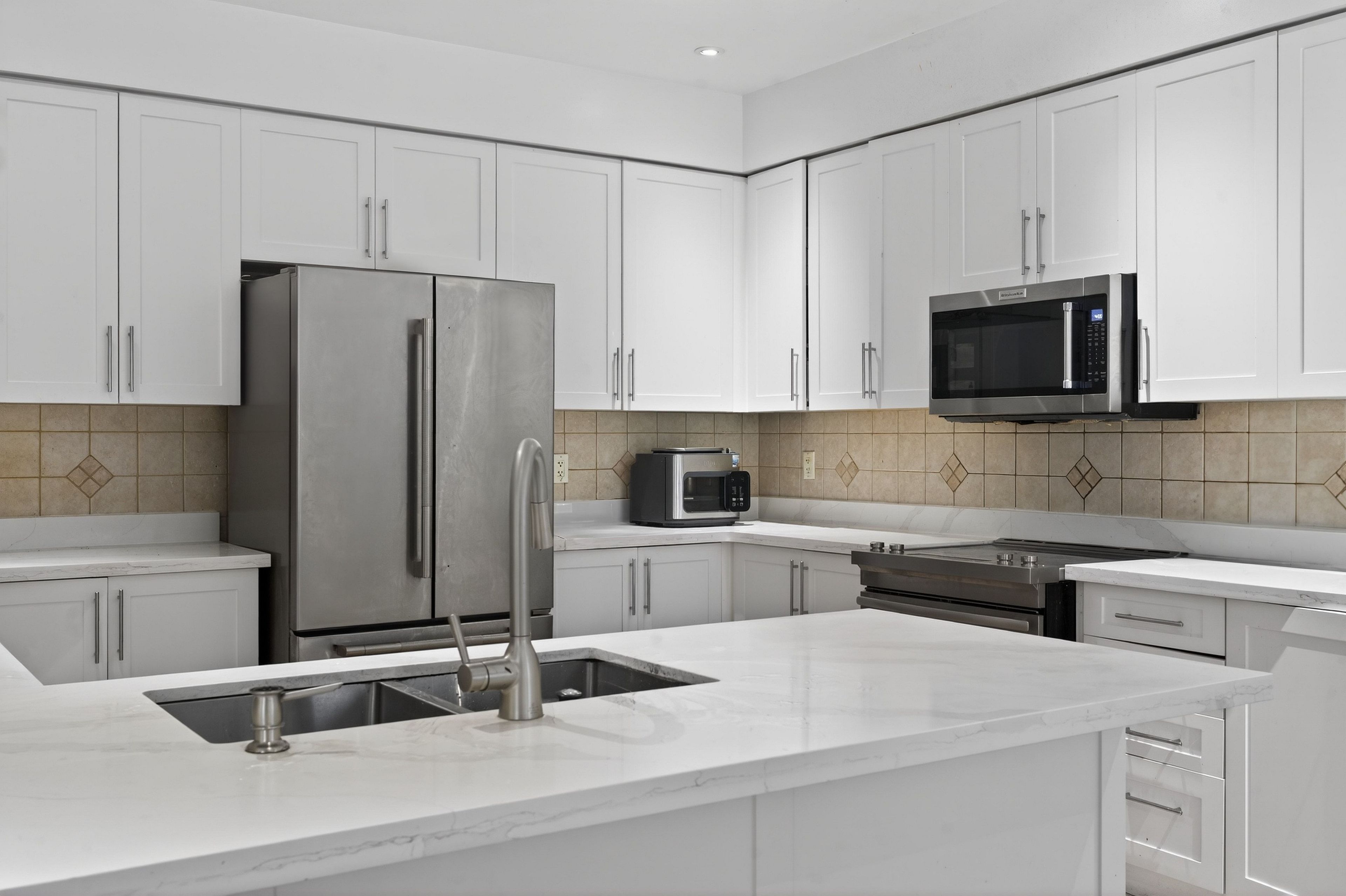 • Spacious kitchen with plenty of cupboards and updated stainless steel appliances.