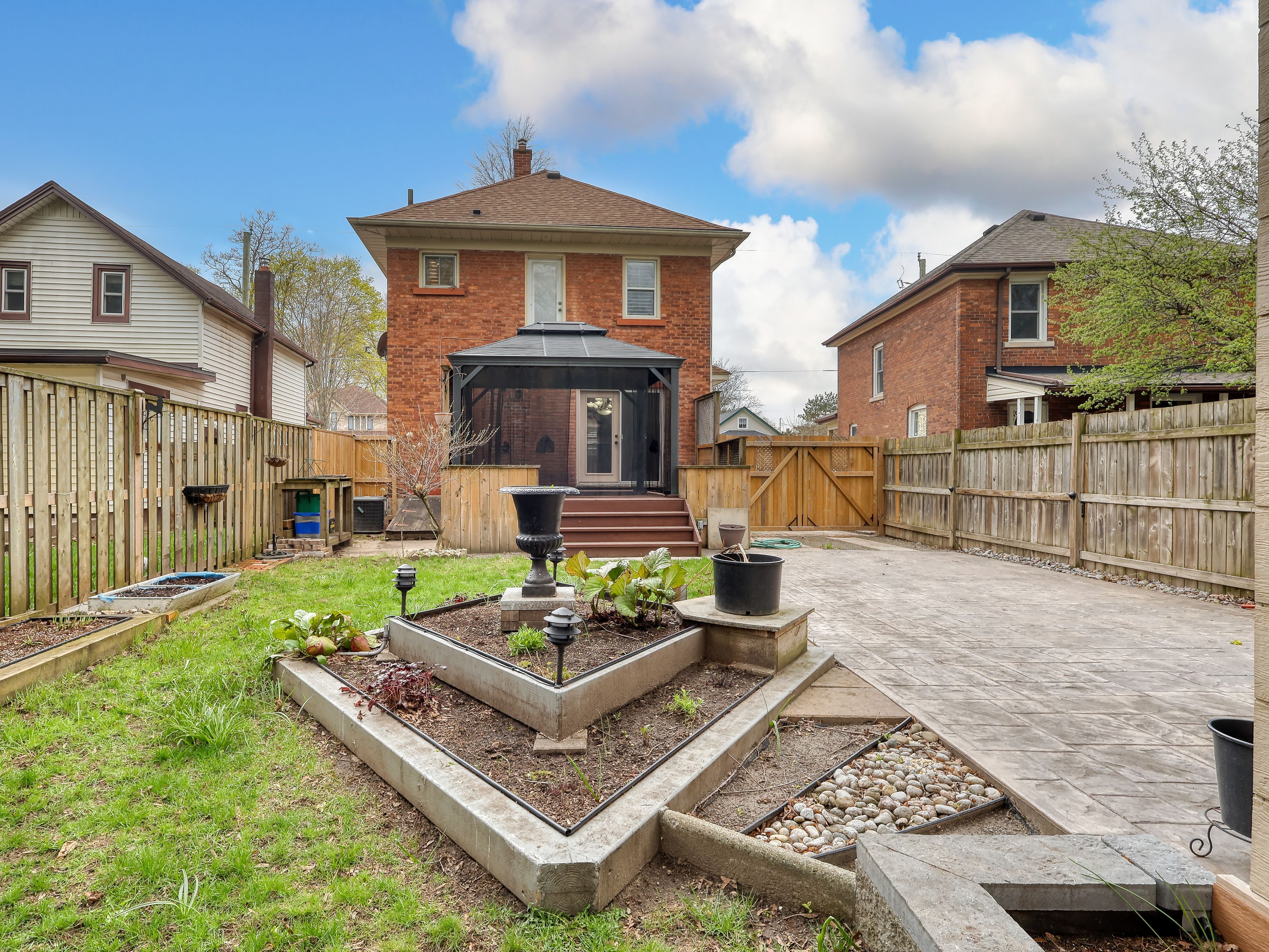 Exceptional all brick century home beautifully updated while retaining its original character and charm. Carpet free main floor . Built in cabinets surround the fireplace hearth while coffered wood beams embrace the bright dining room . French doors to deck and gazebo overlooking nicely landscaped fenced yard. Open concept kitchen featuring island with bar stools, stainless steel fridge and stove. Lovely engineered hardwood floors, eye catching lighing throughout, california shutters 3 bedrooms up with ultra modern 3 pc bath. Main bedroom has door leading to a potential balcony but don't open it basement is almost complete with family room and 3 pc bath. Just pick your own flooring and bathroom fixtures . Gas hookups for kitchen stove and dryer. Dumont alarm system just needs monitoring . Enjoy those hazy lazy days of summer on this covered front veranda . Single car detached garage built aug 2022 equipped with hydro and garage door opener (not activated) garden shed also has hydro. Located in family friendly neighbourhood close to just about everything including schools, parks, community centre , shopping , easy access top major highways