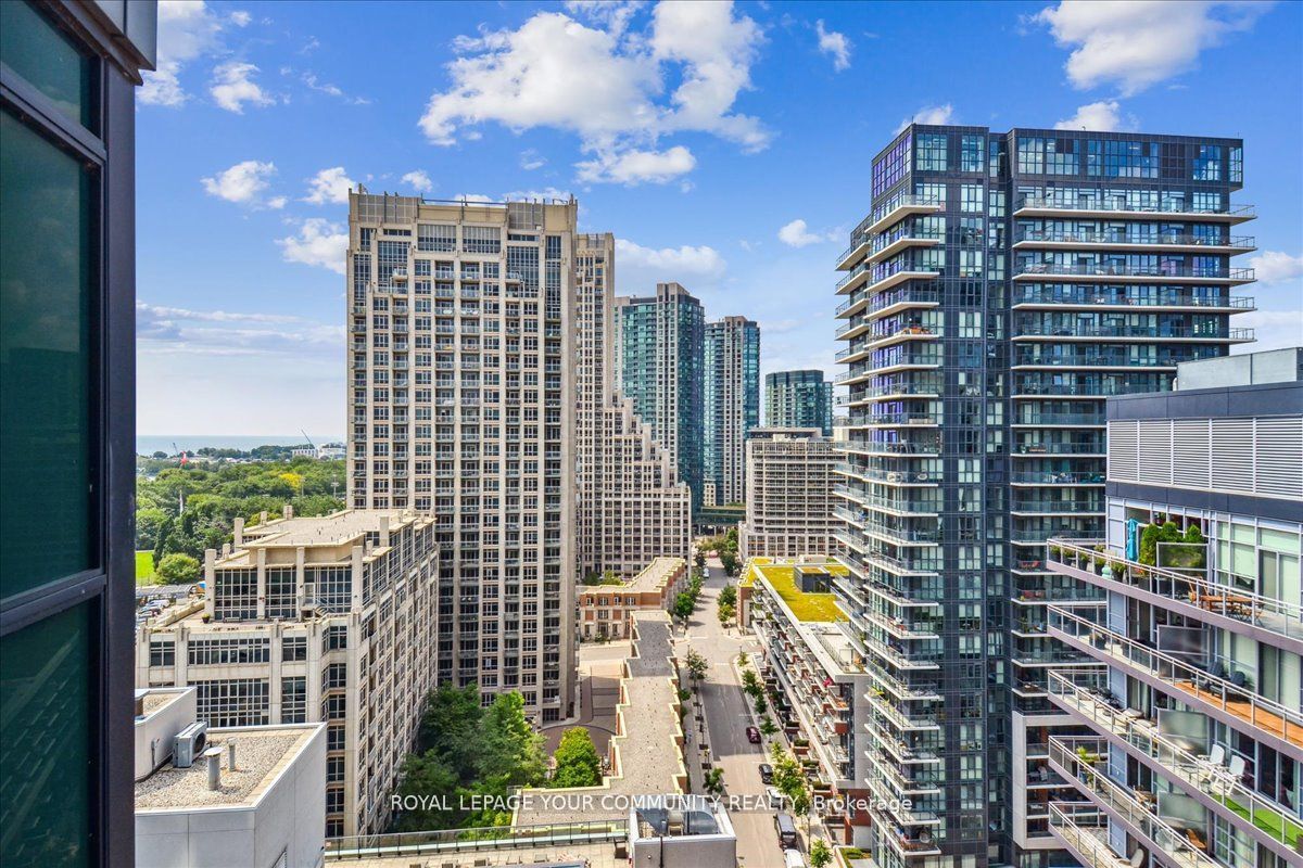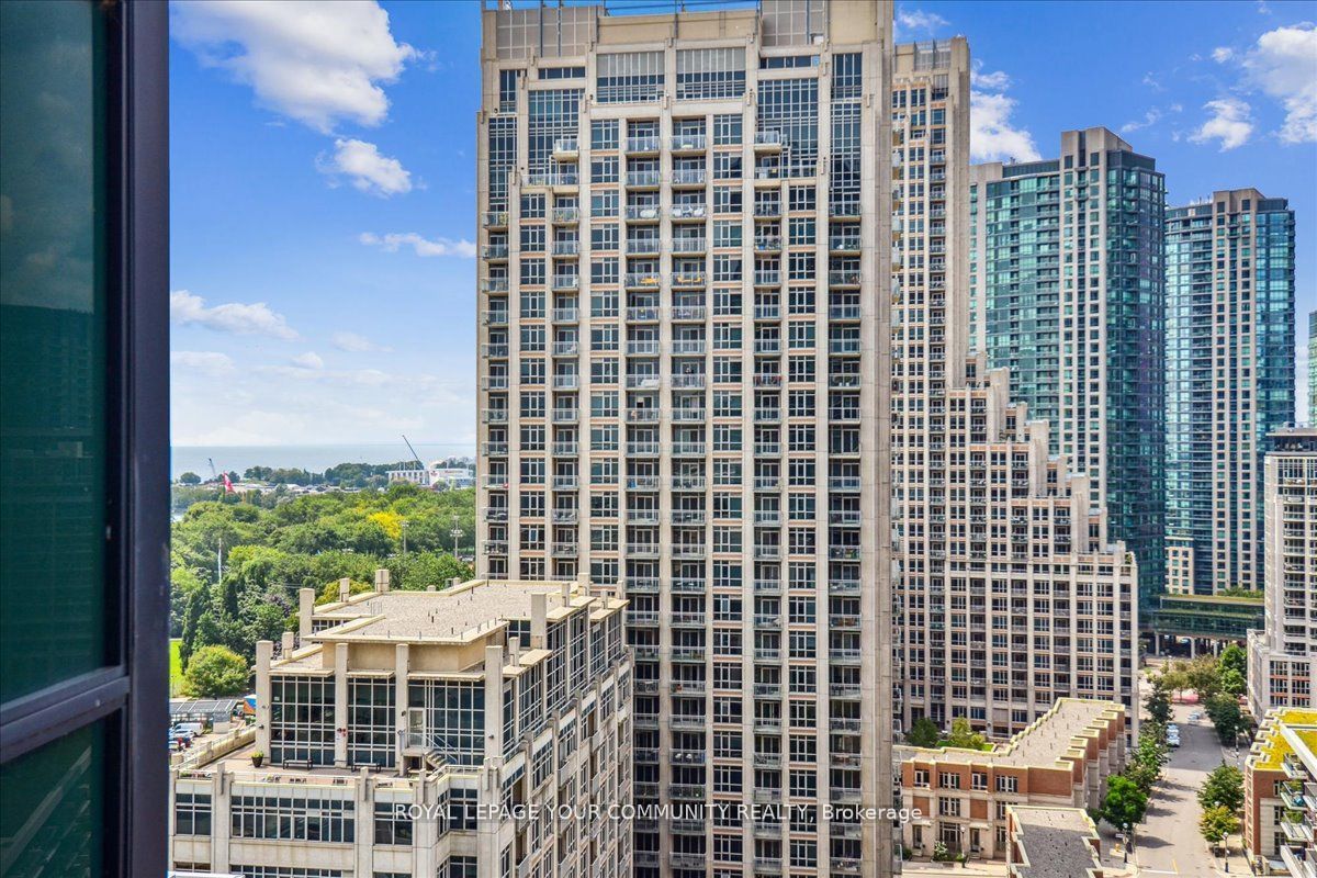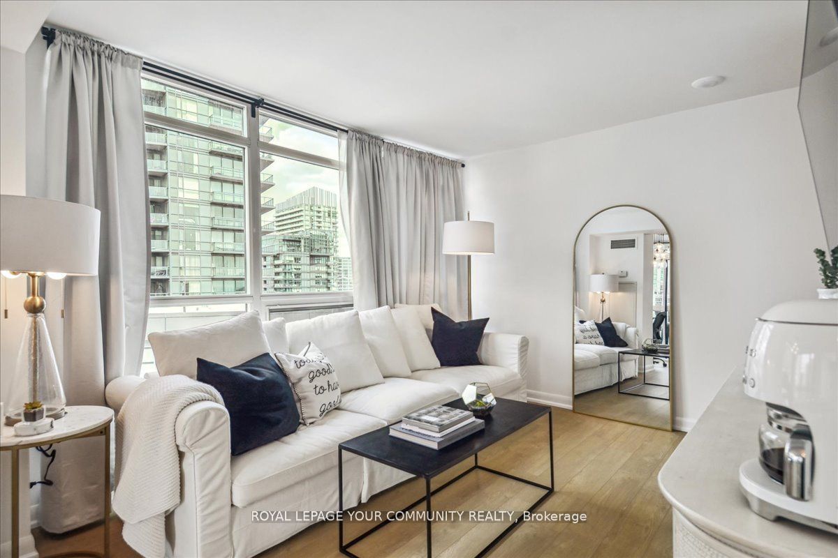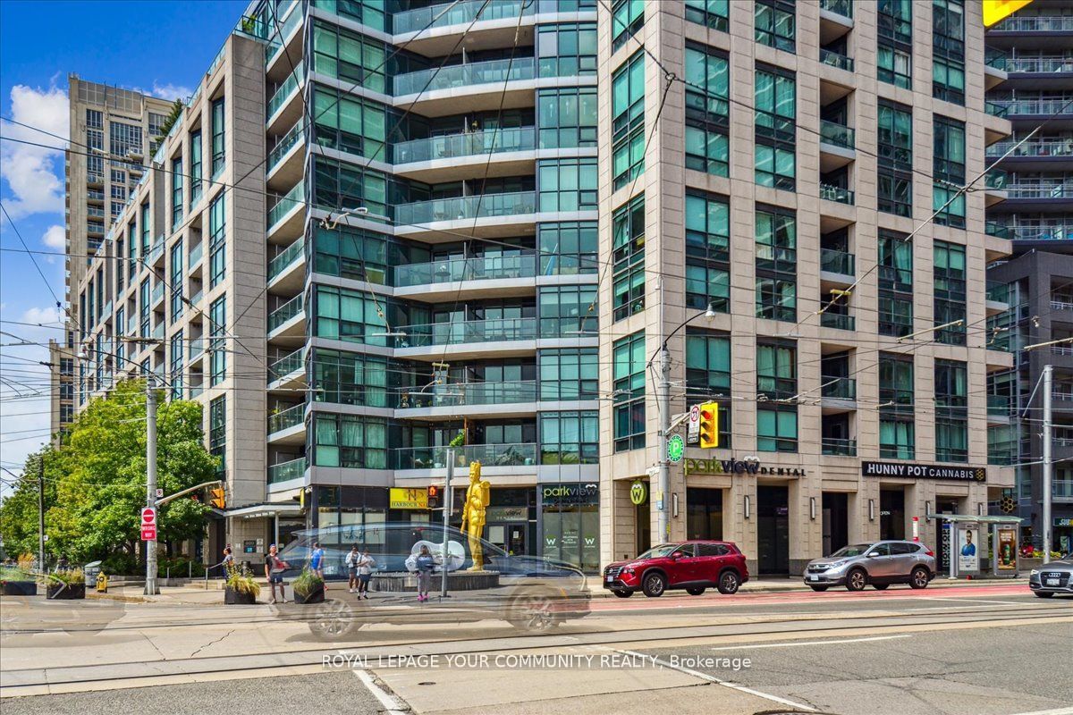 Spacious corner suite with breathtaking lake views! Step into this exquisite one-bedroom corner suite, where floor-to-ceiling windows flood the space with natural light and showcase panoramic lake and city views. The functional and spacious layout includes room for a dedicated workspace, perfect for modern living. Recently upgrade dwith sleek new flooring and contemporary finishes, this suite is move-in ready and designed to impress. Ideally located just steps from loblaws, shoppers drug mart, lcbo, and starbucks, with ttc streetcars at your doorstep and easy access to highways. Enjoy toronto's best restaurants., entertainment, and stunning suite that combines luxrury, convenience and unbeatable views! Parking rents in the building for roughly $150/month