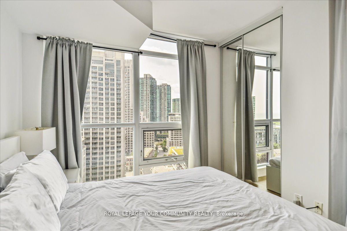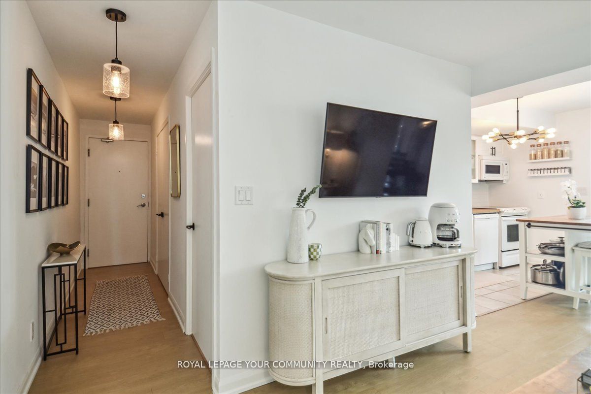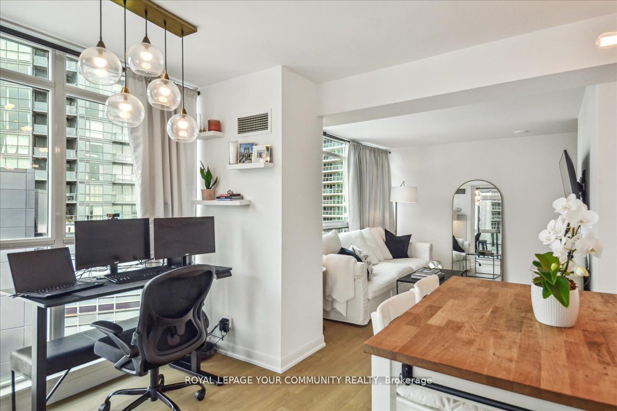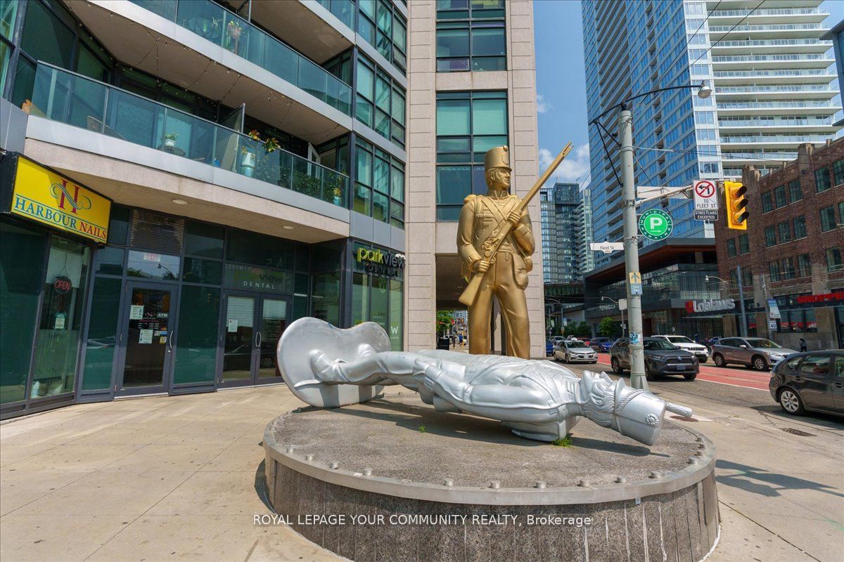 Spacious corner suite with breathtaking lake views! Step into this exquisite one-bedroom corner suite, where floor-to-ceiling windows flood the space with natural light and showcase panoramic lake and city views. The functional and spacious layout includes room for a dedicated workspace, perfect for modern living. Recently upgrade dwith sleek new flooring and contemporary finishes, this suite is move-in ready and designed to impress. Ideally located just steps from loblaws, shoppers drug mart, lcbo, and starbucks, with ttc streetcars at your doorstep and easy access to highways. Enjoy toronto's best restaurants., entertainment, and stunning suite that combines luxrury, convenience and unbeatable views! Parking rents in the building for roughly $150/month