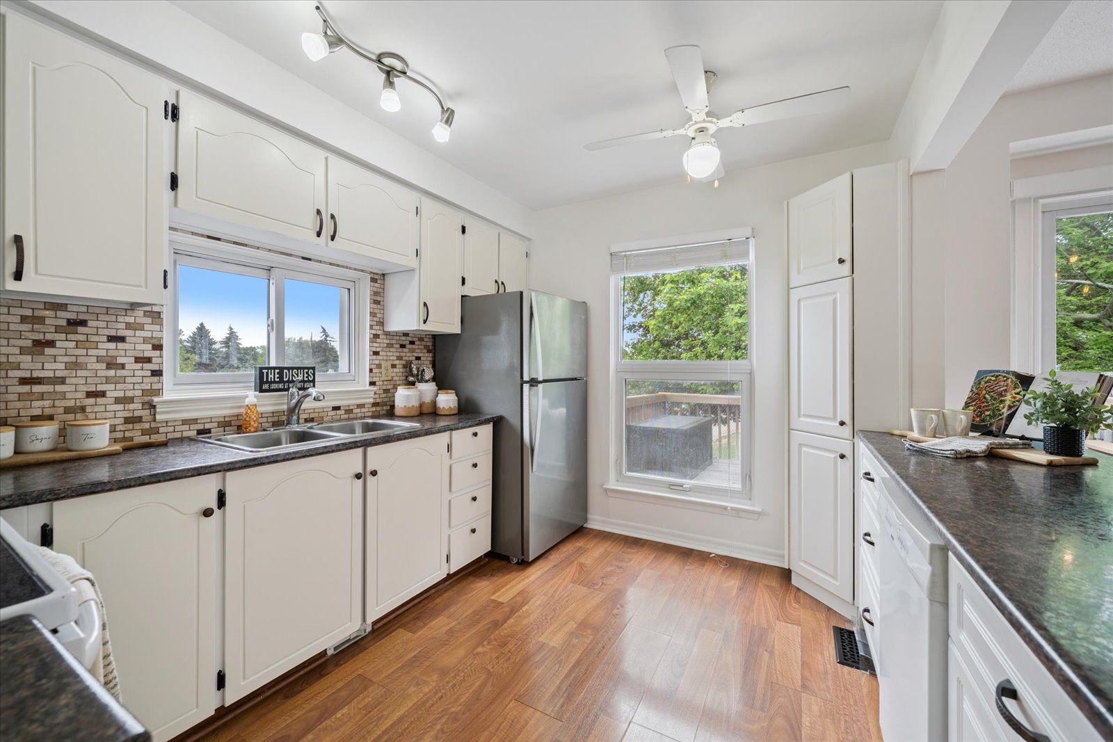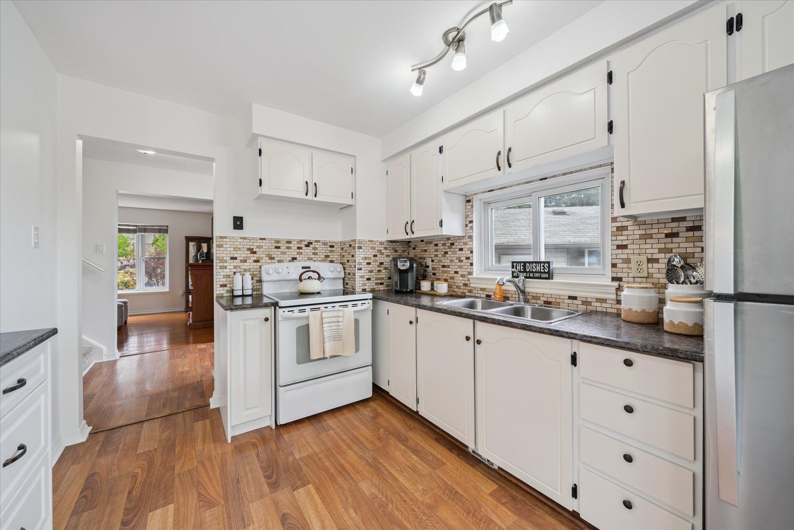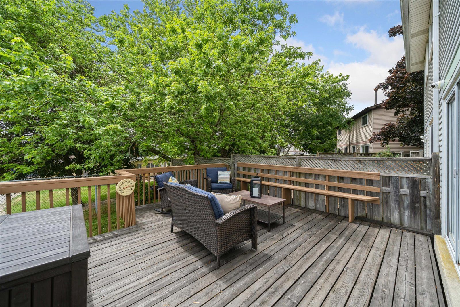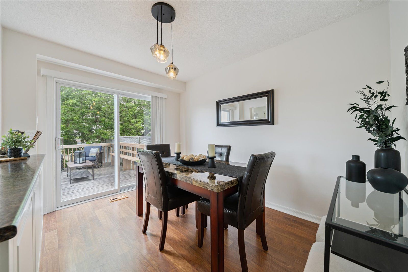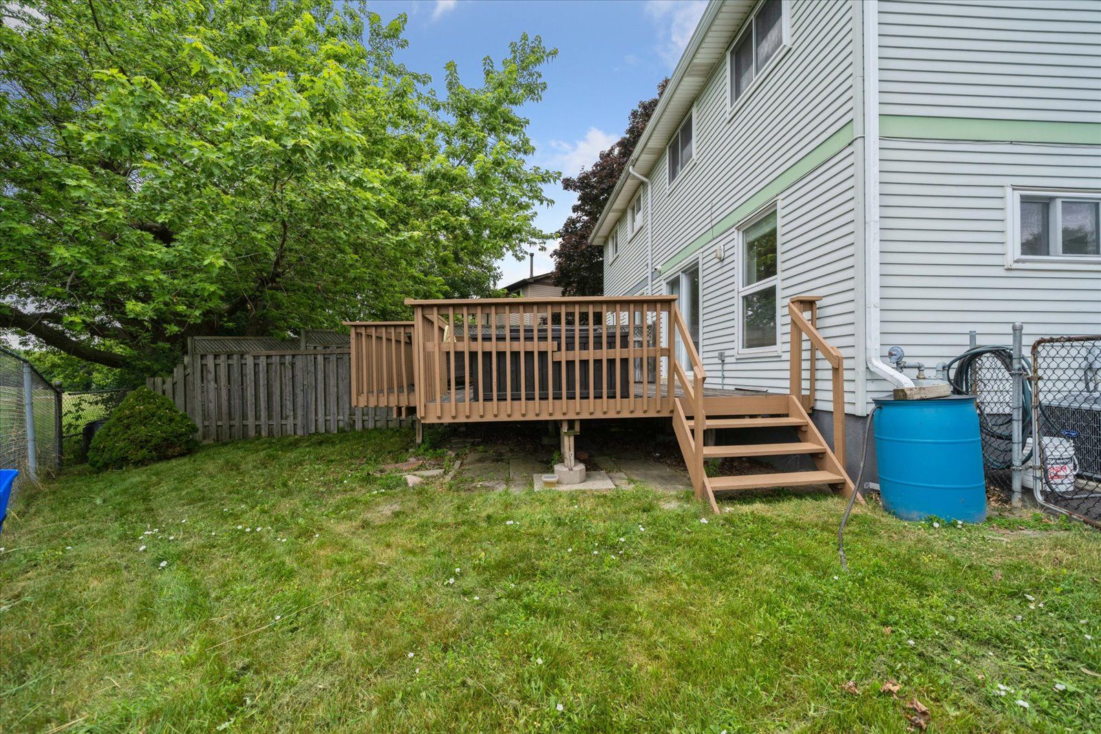 Open house november 22nd 1-3pm. Offers anytime. Welcome to this well maintained 3 bedroom semi-detached home nestled in a quiet, family oriented neighbourhood - just steps to schools, scenic parks, and walking/biking trails. Enjoy the convenience of being minutes from highway 401/407, shopping, transit, and all amenities. With no neighbours behind or on one side, you'll enjoy added privacy and peaceful surroundings. Step inside to a bright and spacious living room featuring a large bay window that fills the space with natural light. The functional kitchen overlooks the dining area, which offers seamless indoor-outdoor living with a walk-out to a private backyard deck - perfect for entertaining or relaxing with family. Upstairs you'll find three good sized bedrooms, including a primary bedroom with double closets for ample storage, along with a full 4-piece bathroom featuring a tub, shower and updated vanity. The finished basement offers a versatile recreation room, additional storage space, and a convenient 2-piece bathroom - ideal for growing families or work-from-home needs. Outside the property boasts a widened driveway with plenty of parking and a separate, standalone oversized garage - complete with the potential for heated floors. The additional fenced-in front yard space is perfect for kids, pets, or added outdoor enjoyment. Recent upgrades include the furnace, air conditioner, roof shingles, central vacuum, and leaf guards on the gutters, offering peace of mind and comfort for years to come. Don't miss your chance to call this move-in-ready gem your home!