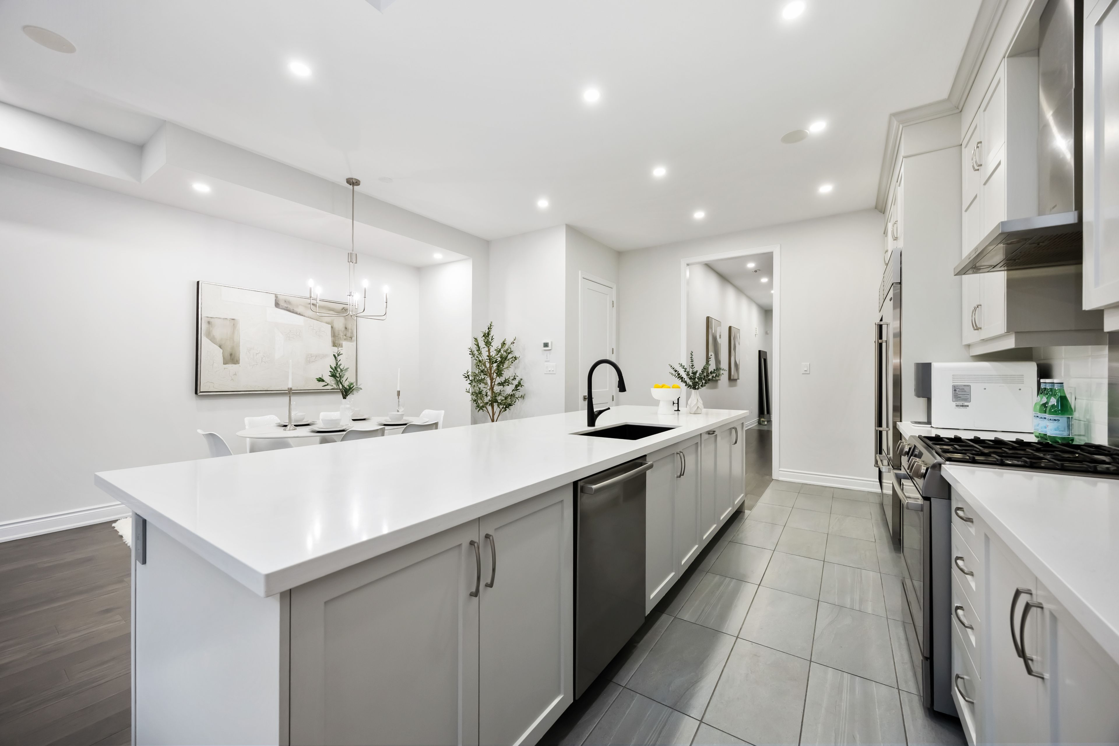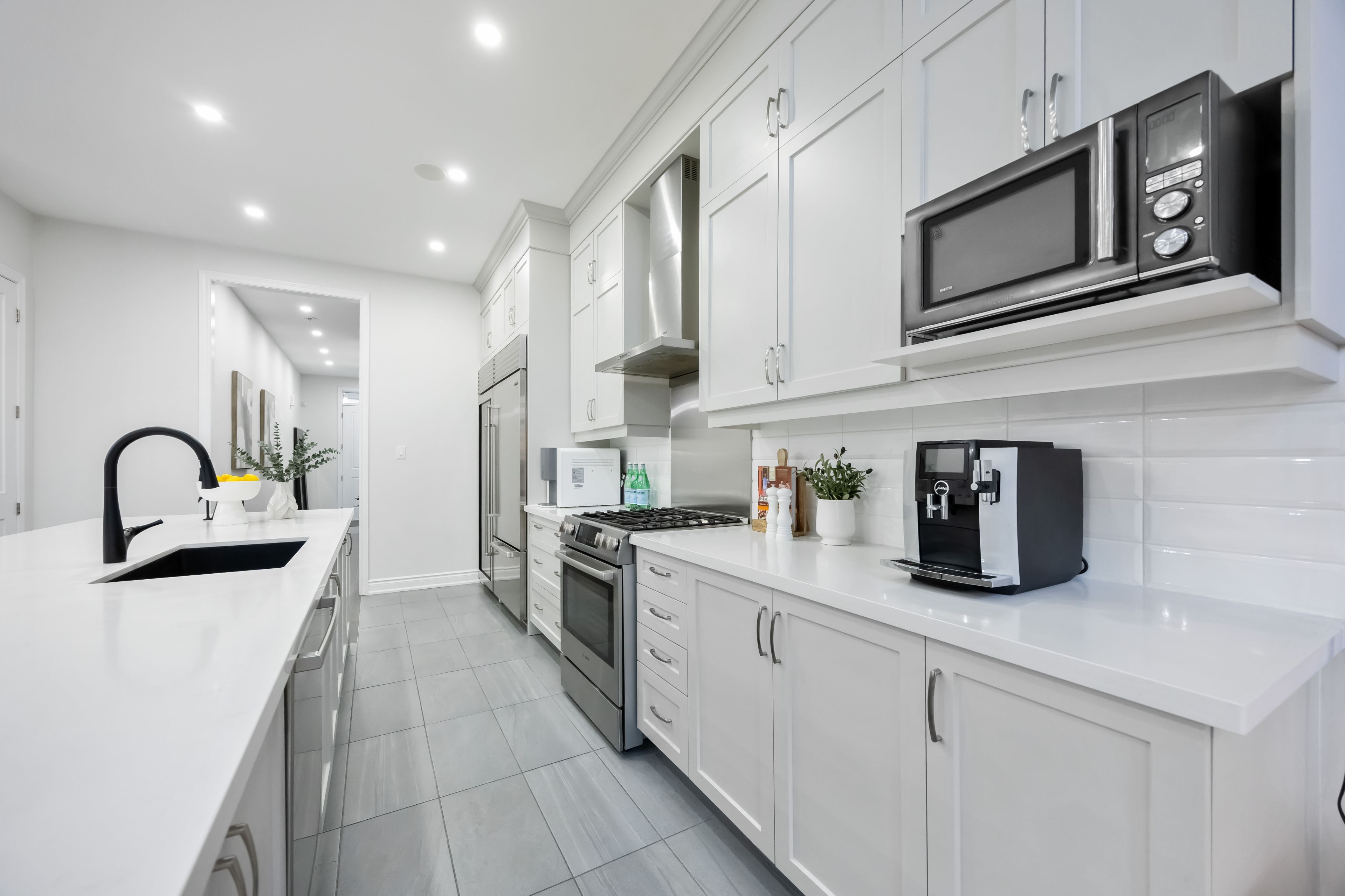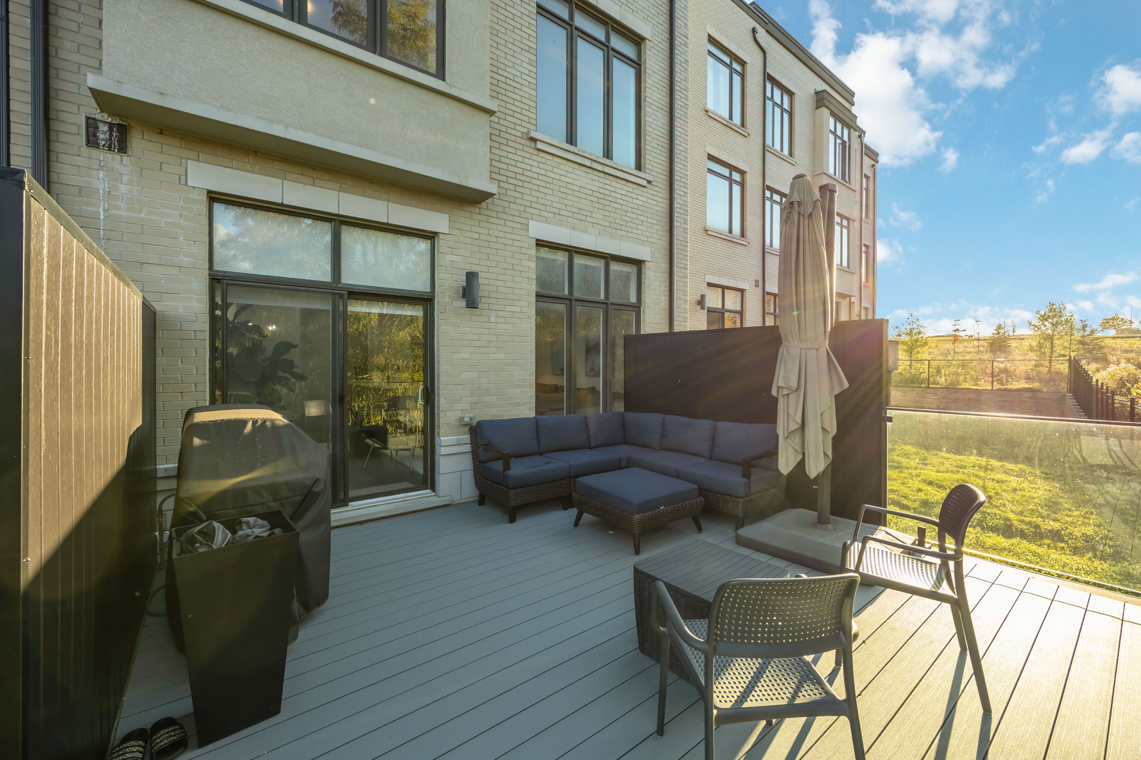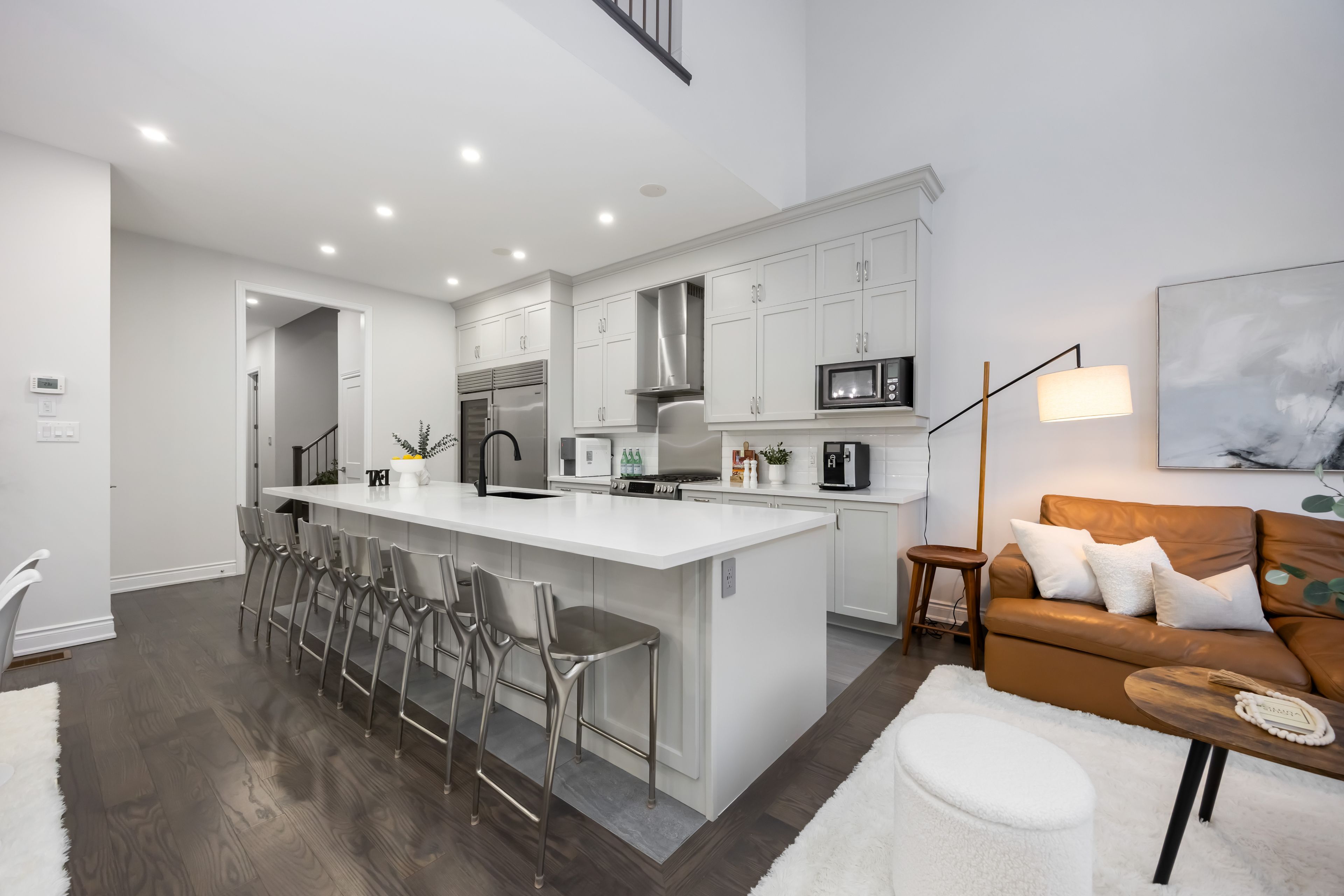 Ravine lot! Loaded with upgrades! Discover high-end finishes and meticulous upgrades in this exceptional freehold townhome overlooking a tranquil ravine in vaughan's prestigious patterson community. Offering approximately 3,500 sq. Ft. Of total living space with everyday functionality. The family room showcases impressive soaring 20-ft ceilings and expansive windows that fill the space with natural light and stunning ravine views. The main floor features 10-ft ceilings, rich hardwood flooring, and an open-concept layout perfect for entertaining. Spent $$$ on upgrades, including engineered hardwood flooring on the 2nd and 3rd levels, a professionally finished basement, new bathrooms, and custom walk-in closets. A stunning chef's kitchen anchors the space with an oversized 15-ft quartz island, premium appliances, new sub zero 32inch fridge and sub zero 30 inch built-in wine storage unit, built-in speakers, and direct access to a private balcony. Upstairs on 3rd floor, the primary retreat offers a 10-ft ceiling, walk-in closet, and spa-inspired ensuite with a freestanding tub, glass shower, and double sinks. The walk-out basement opens to lush greenery and a protected ravine, offering exceptional privacy and tranquility rarely found in the city. This residence showcases timeless quality and attention to detail. Steps to parks, top-rated schools, trails, shopping, and minutes to major highways - this home truly has it all!