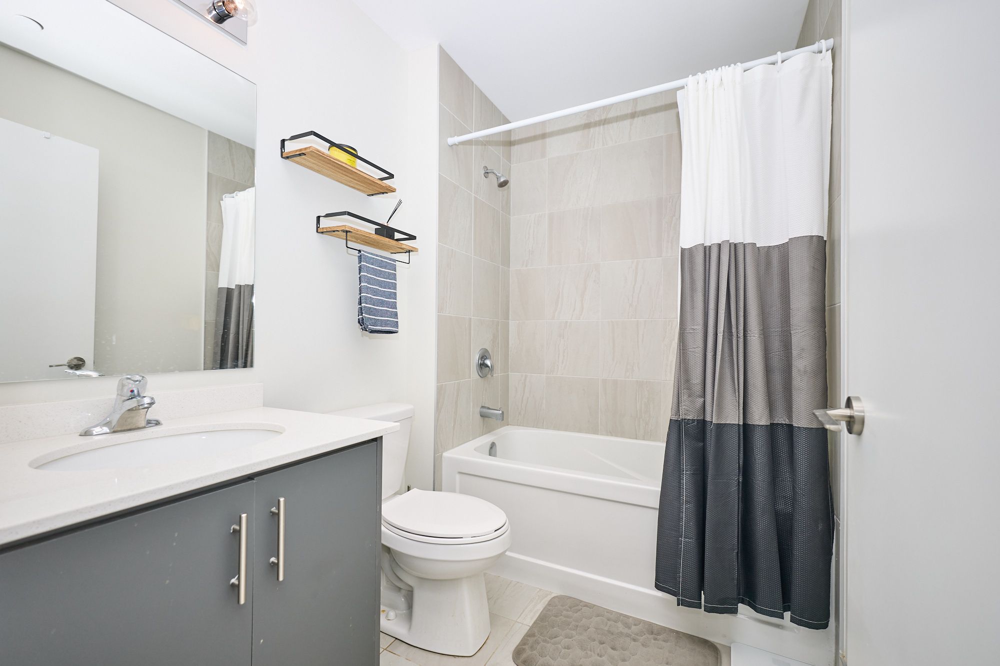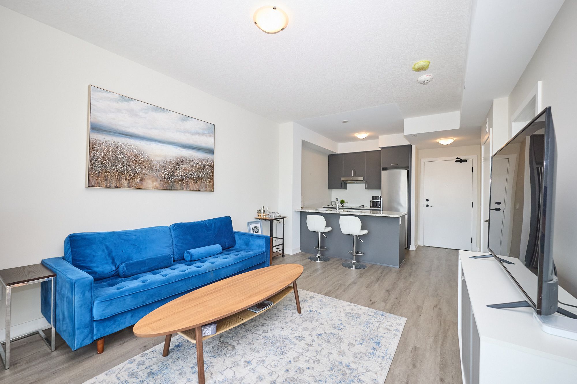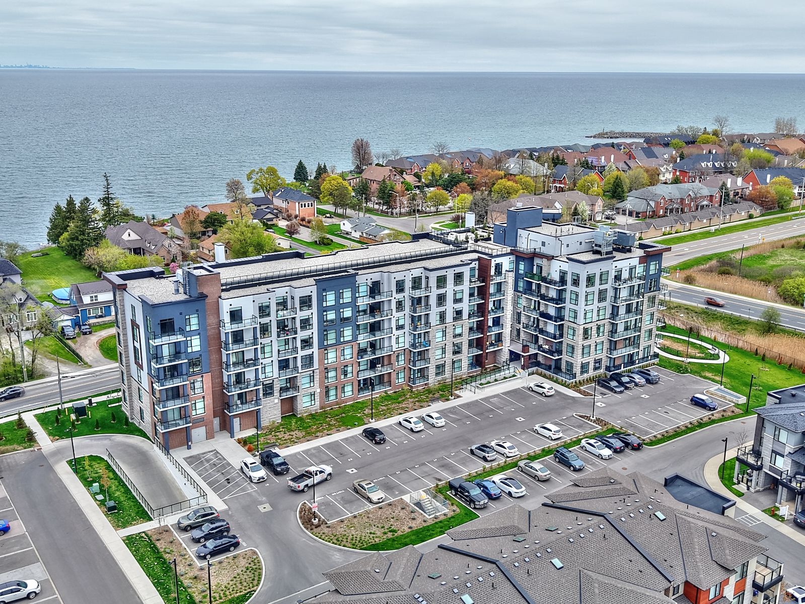 Experience elevated condo living in this beautifully designed suite built by the renowned desantis homes in the como building. Featuring a spacious open-concept layout, this residence is adorned with chic finishes and large windows that flood the space with natural light. The kitchen is both stylish and functional, complete with a breakfast bar perfect for casual dining, while in-suite laundry adds everyday convenience. Step outside to a generously sized balcony that offers additional living space ideal for relaxing or entertaining. This unit includes a dedicated underground parking spot and a private storage locker, offering both security and convenience for your lifestyle. Residents enjoy access to an impressive array of building amenities, including a rooftop terrace with breathtaking views of lake ontario, outfitted with bbqs, loungers, and a welcoming seating area. Pet lovers will appreciate the on-site dog park and pet grooming spa, while the media room and party room provide space for social gatherings and entertainment. Located in a prime spot for commuters, this home is just minutes from the qew and within walking distance to the lake, blending convenience with lifestyle in one exceptional package.