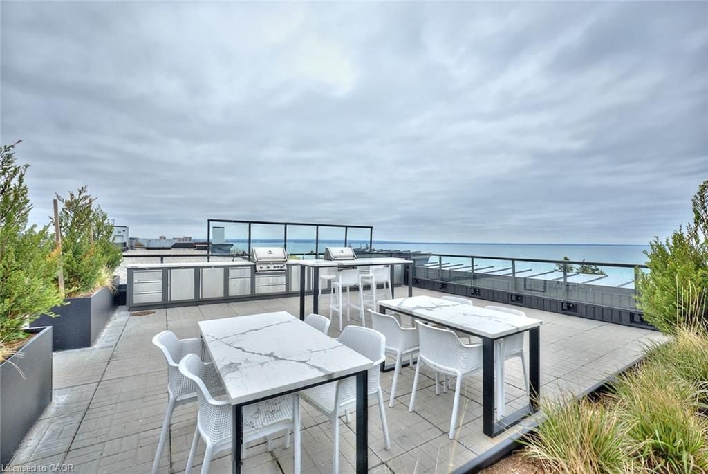 Fantastic opportunity in stoney creek's coveted waterfront neighbourhood! Stylish two bedroom unit with 2 parking spots! Custom glass shower with recessed lighting, modern kitchen with extended cabinets, stainless steel appliances, and vinyl plank floors. Enjoy the como's thoughtfully designed amenities, including an indoor social room, a rooftop bbq and lounge area for entertaining, a bark park for your furry friends, and even a bark spa! Includes 1 underground parking, 1 on ground parking and a locker for extra storage. Great hwy access, shopping, park, trails, and waterfront nearby. Don't miss out!