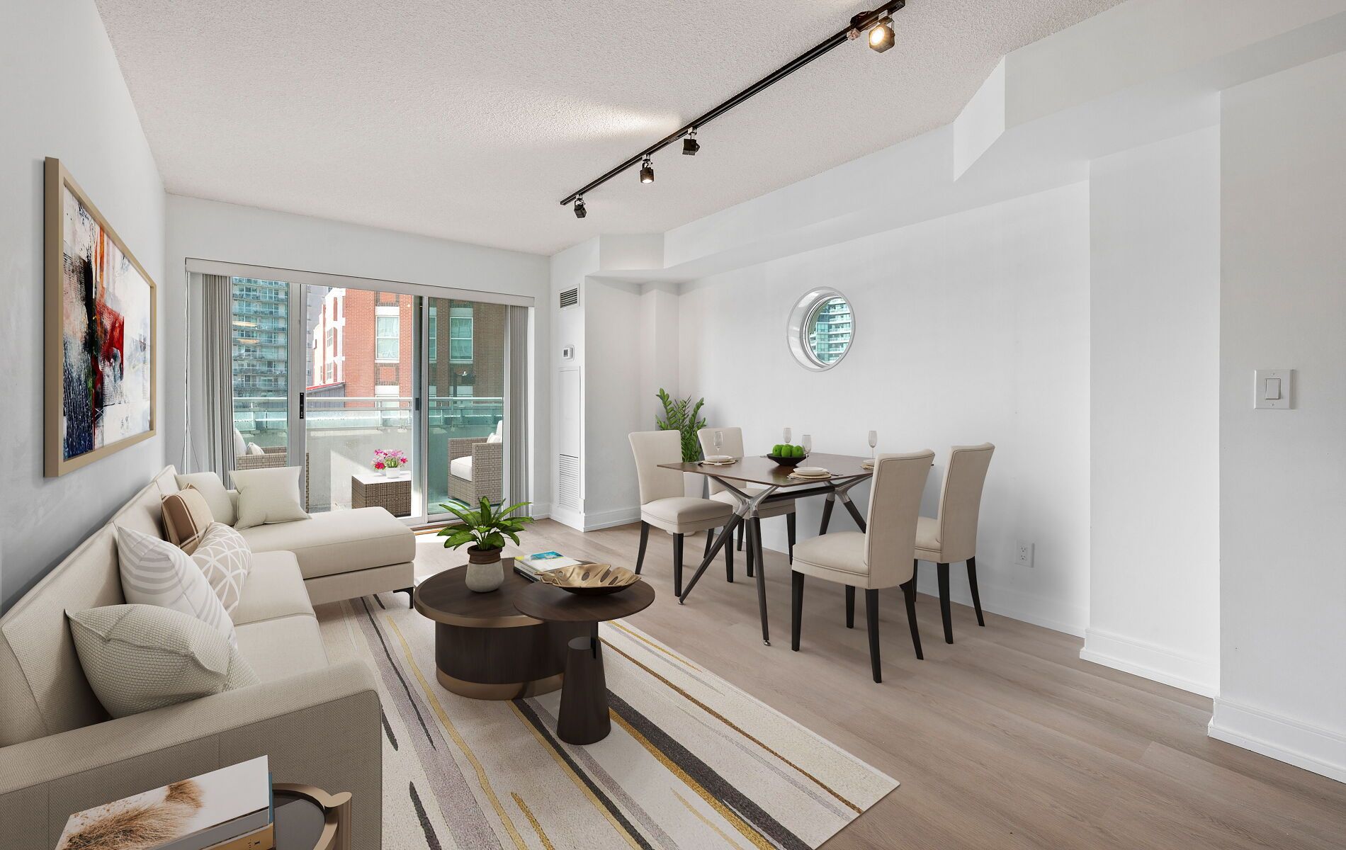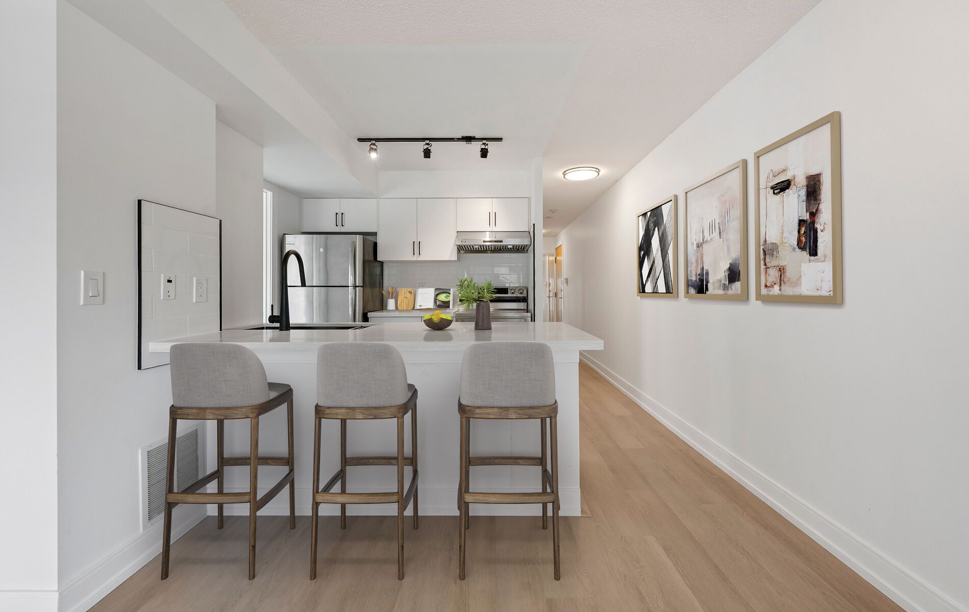 • Recently renovated condo with modern finishes and high ceilings.