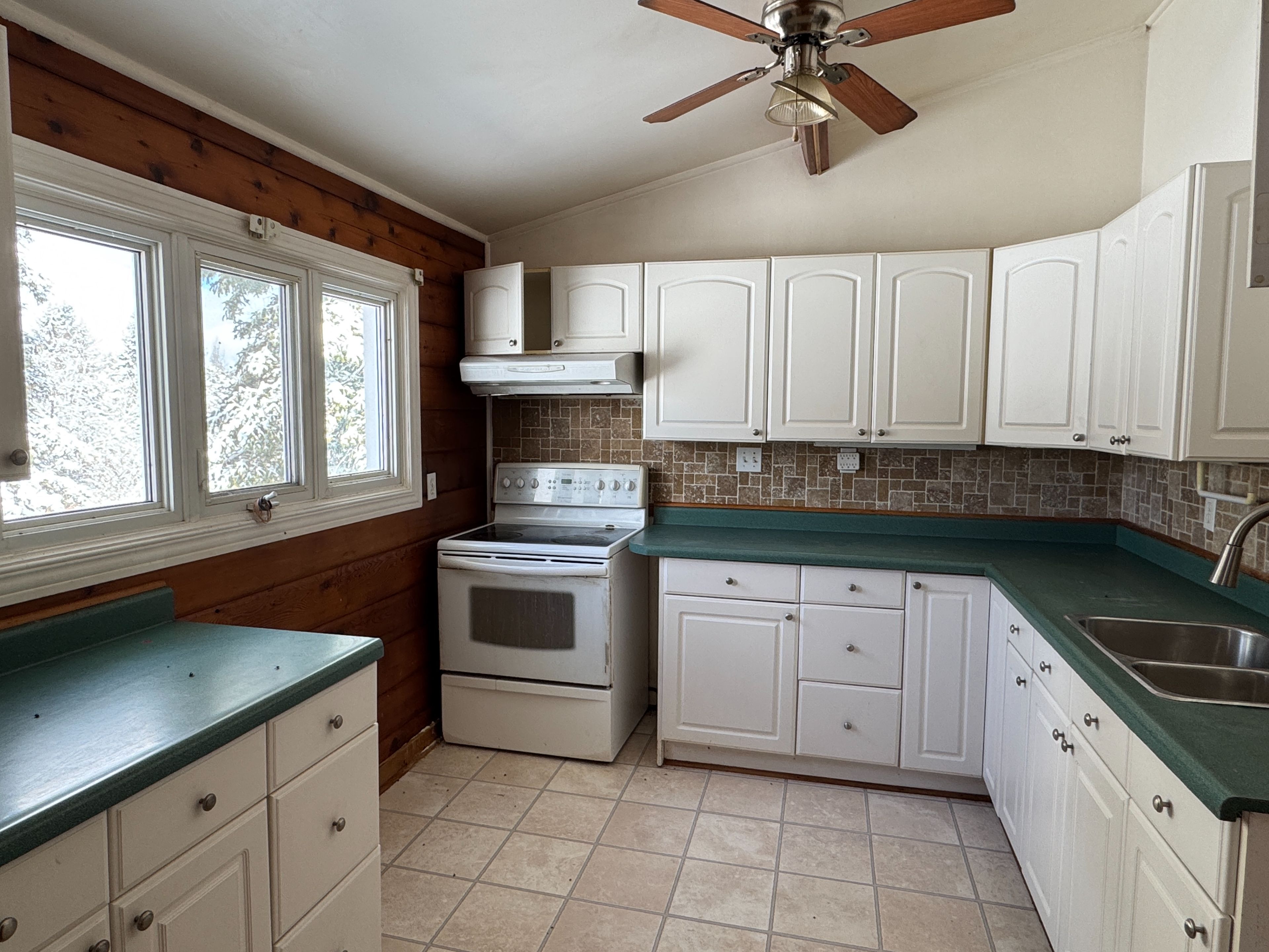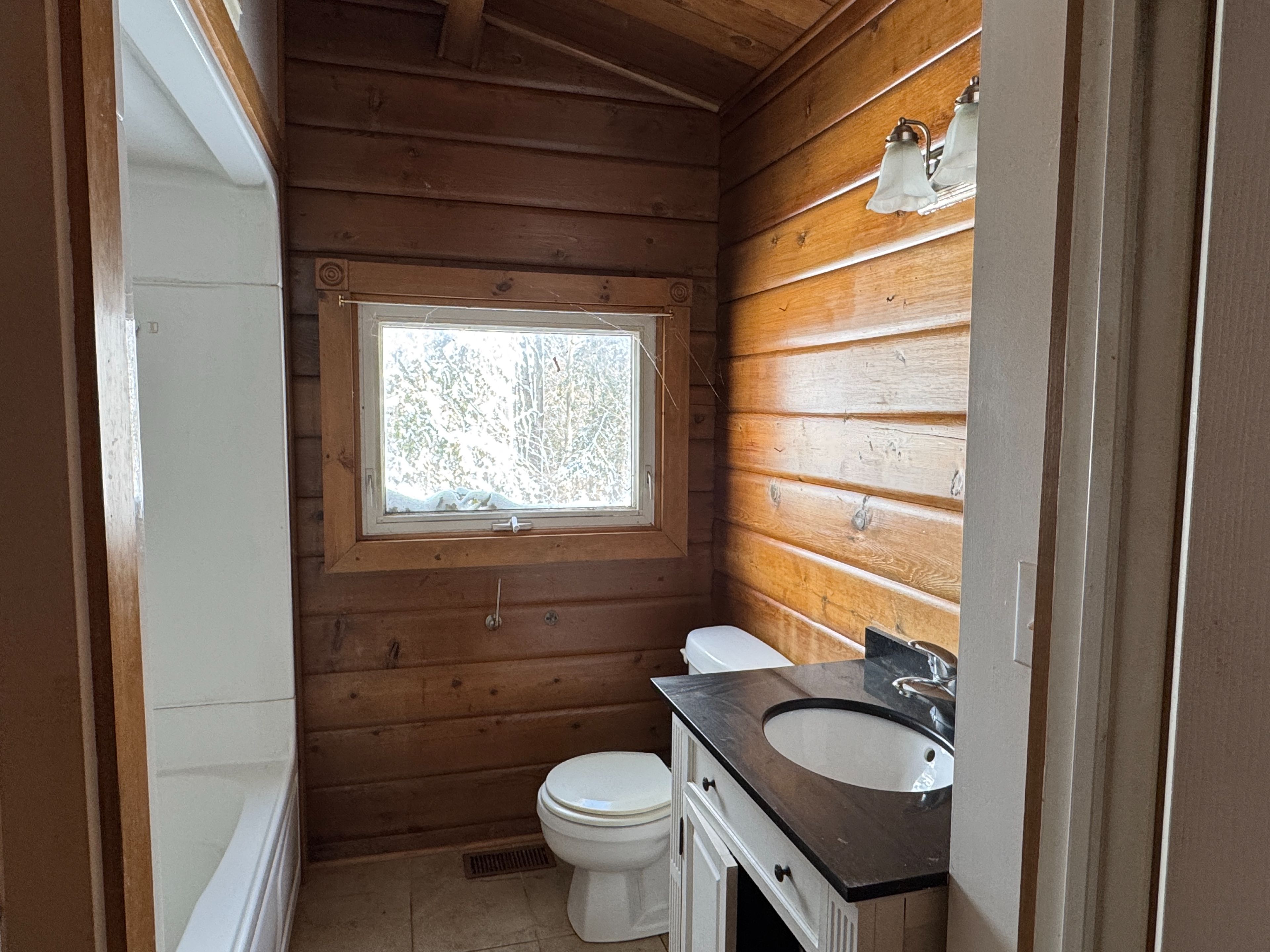 • Lower level includes three bedrooms and a cozy family area with wood stove.