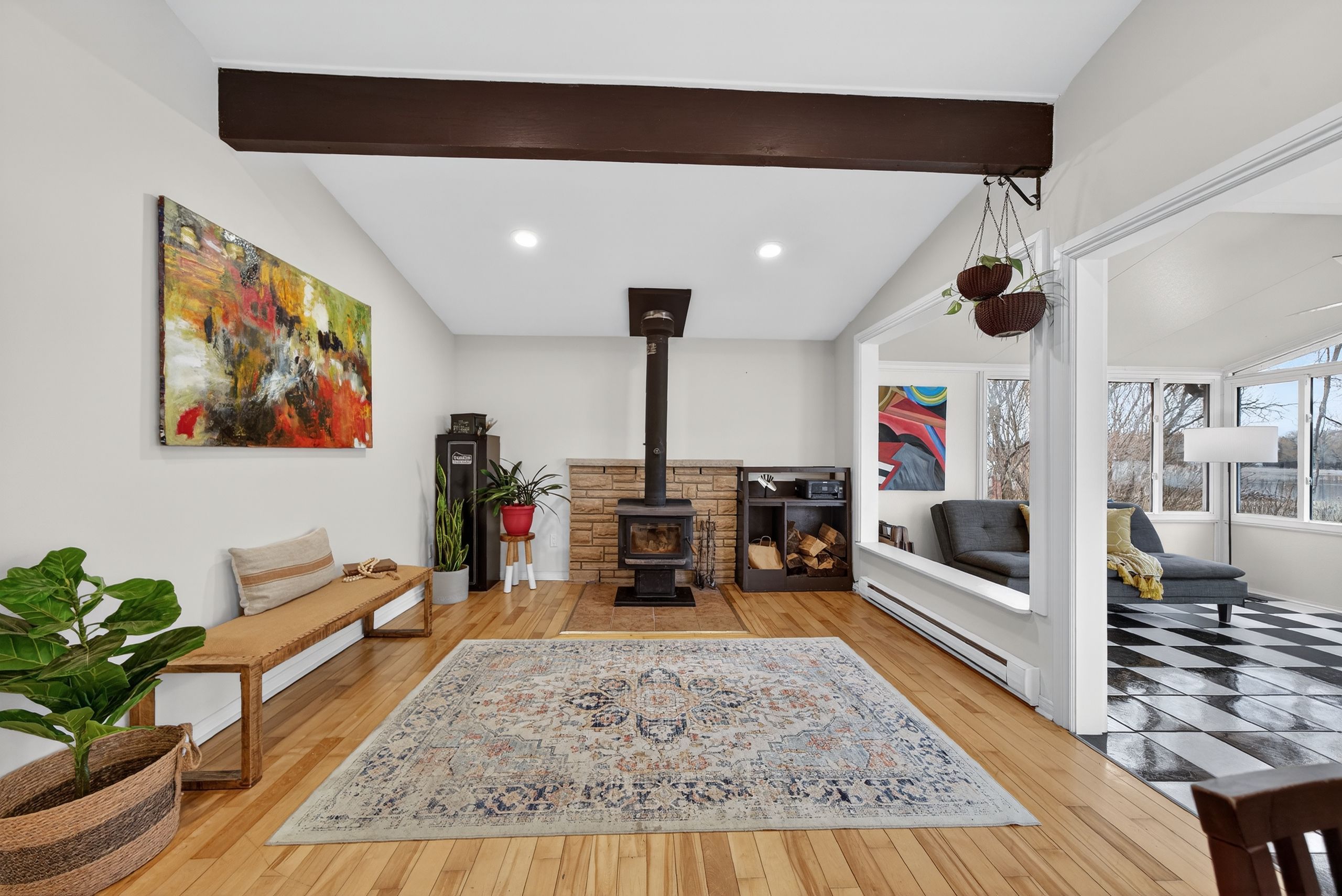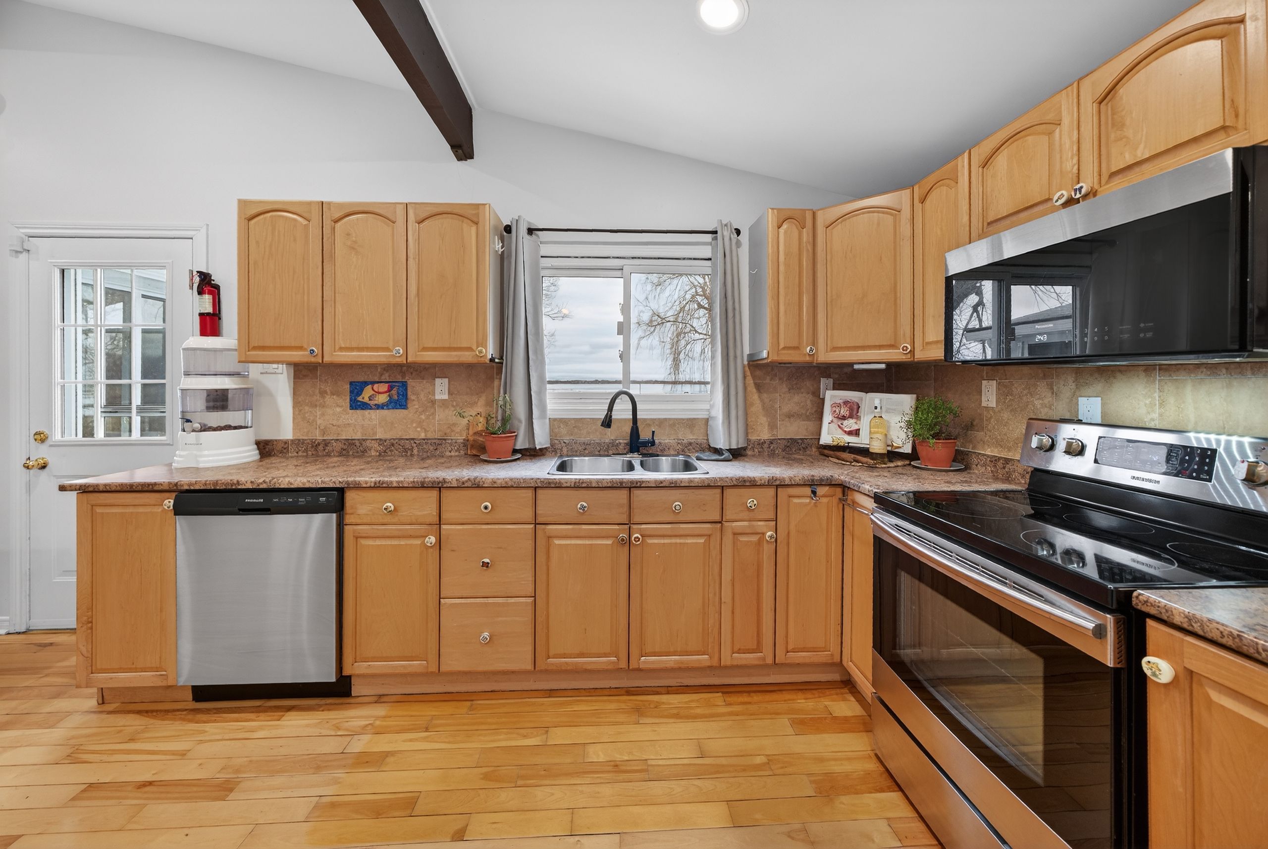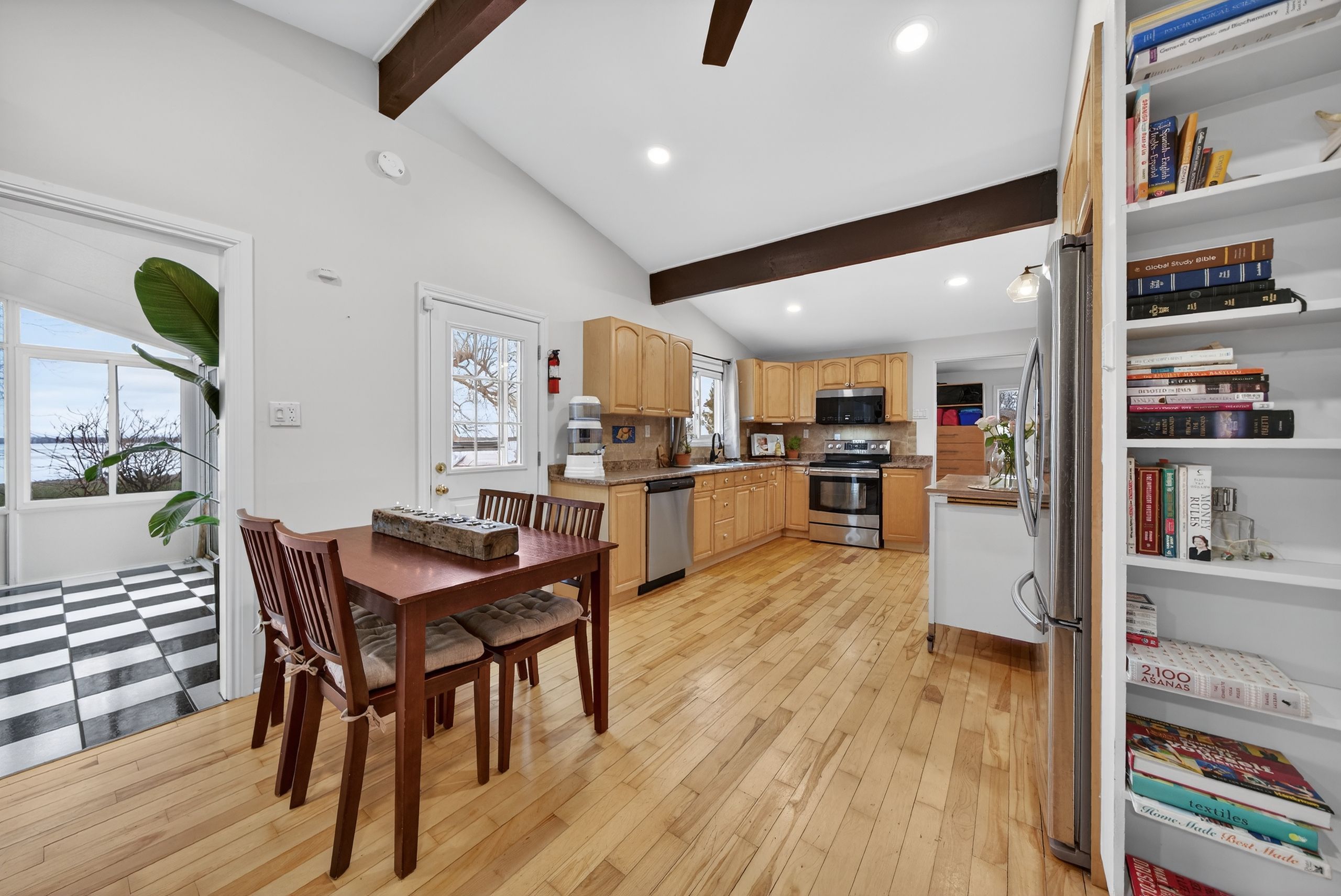• Classic cottage features like vaulted ceilings and a bright sunroom.