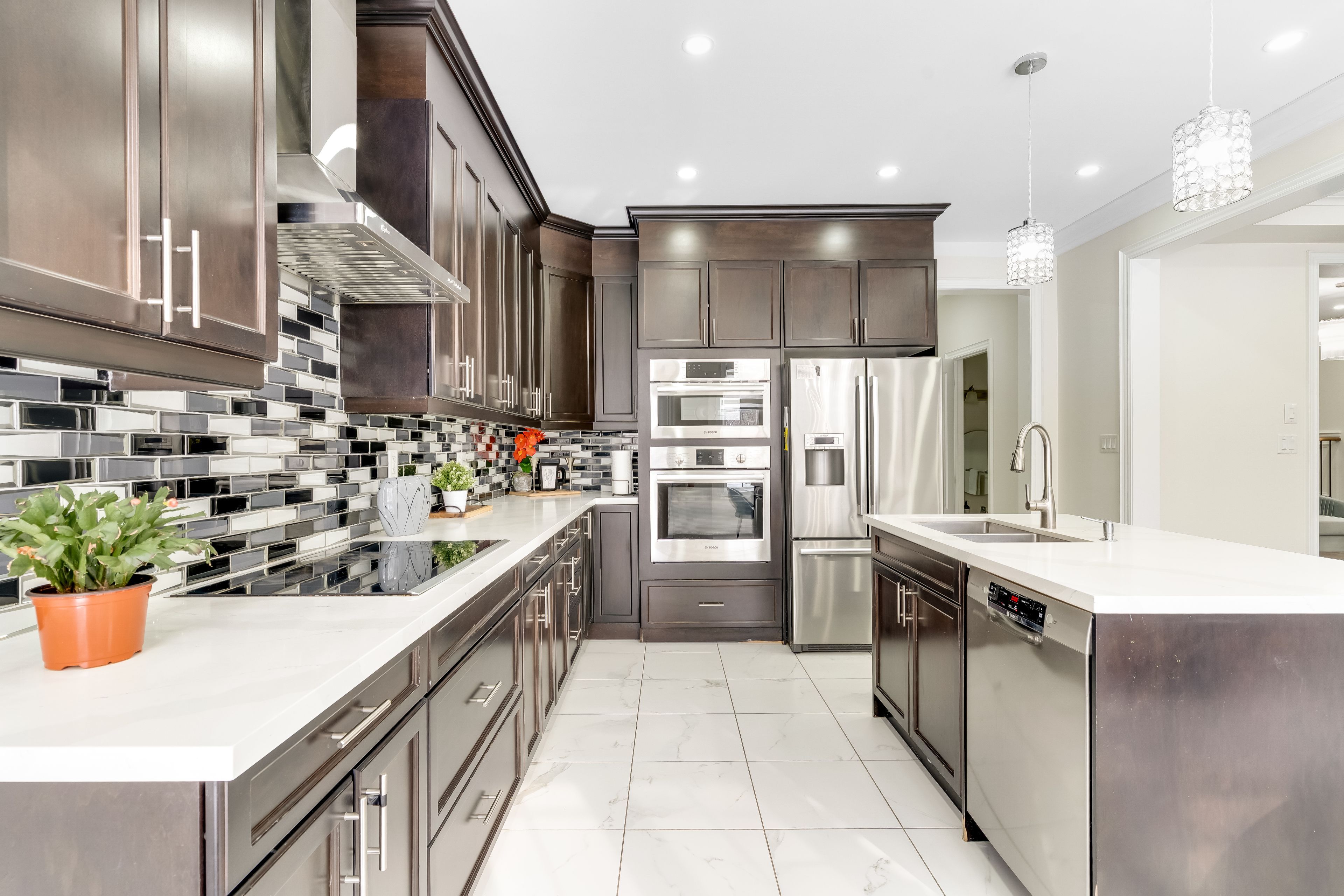 • Chef's kitchen with quartz countertops and premium built-in Bosch appliances.