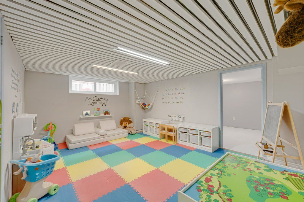• Spacious lower level features a recreation room with fireplace and office space.
