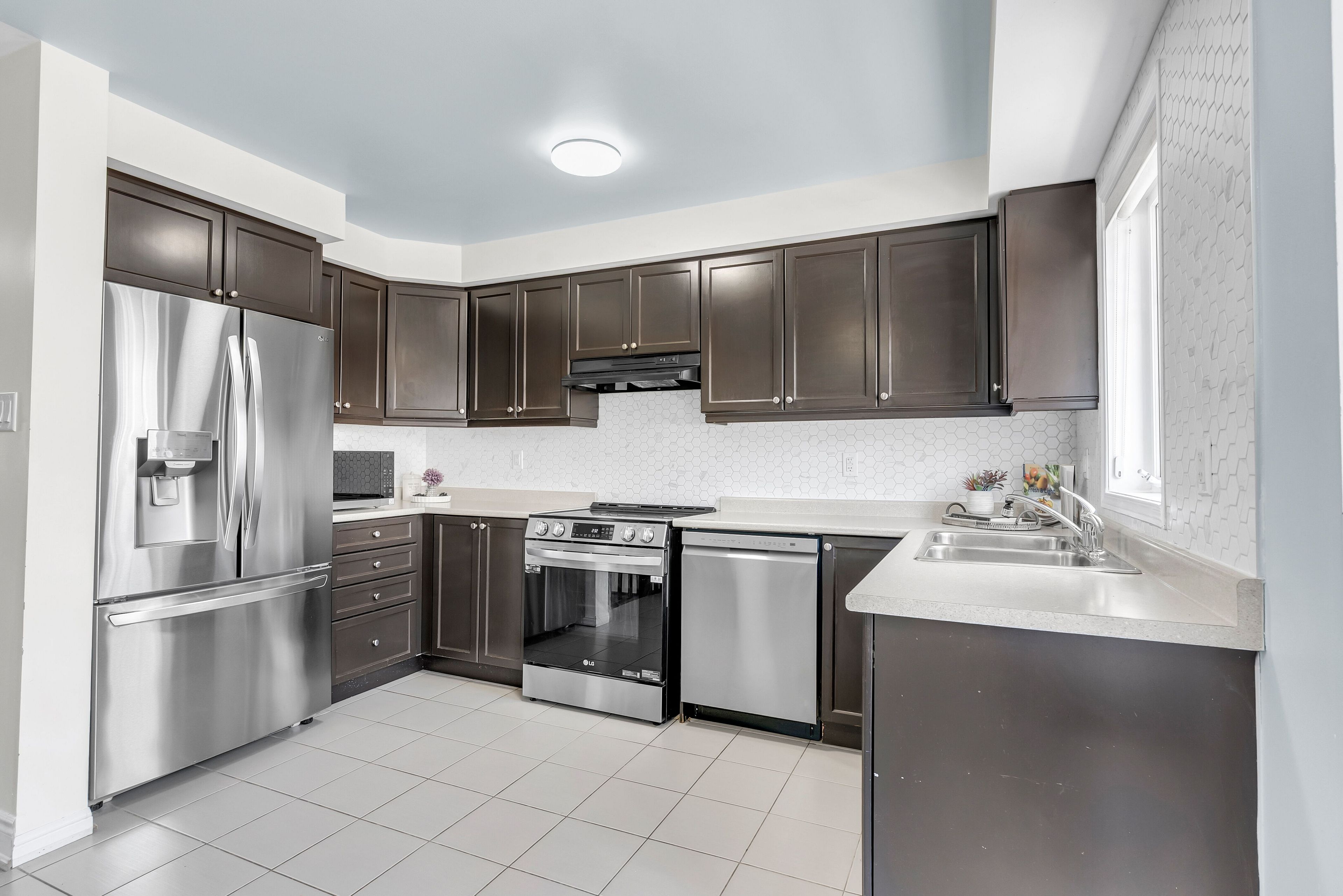 • Generously sized kitchen with ample cabinetry and large breakfast area.