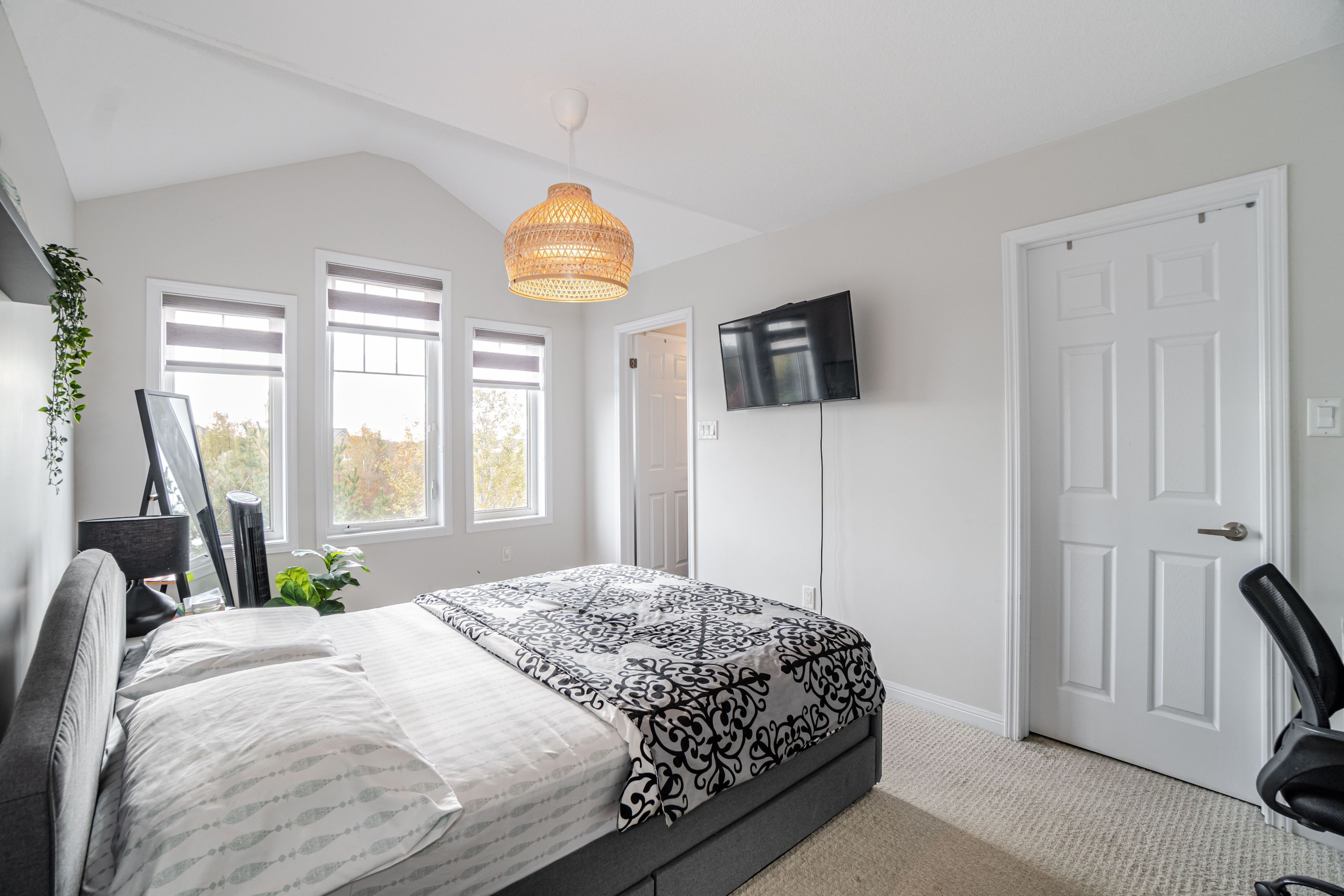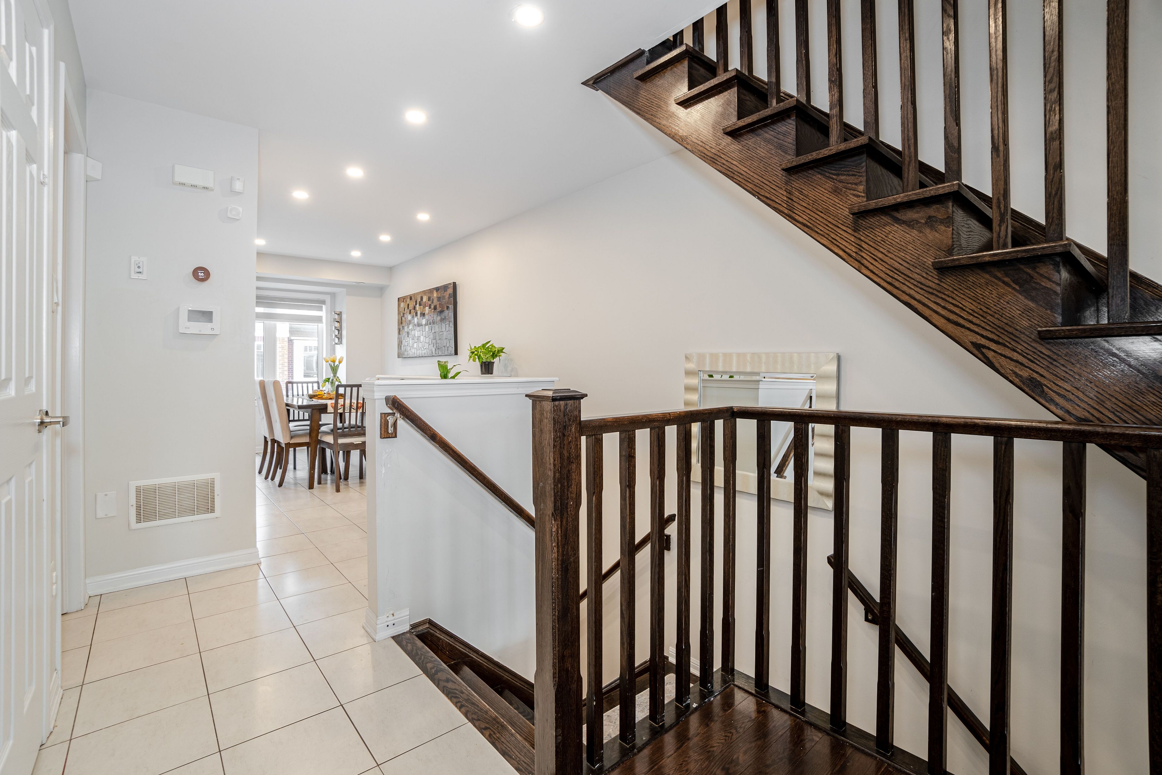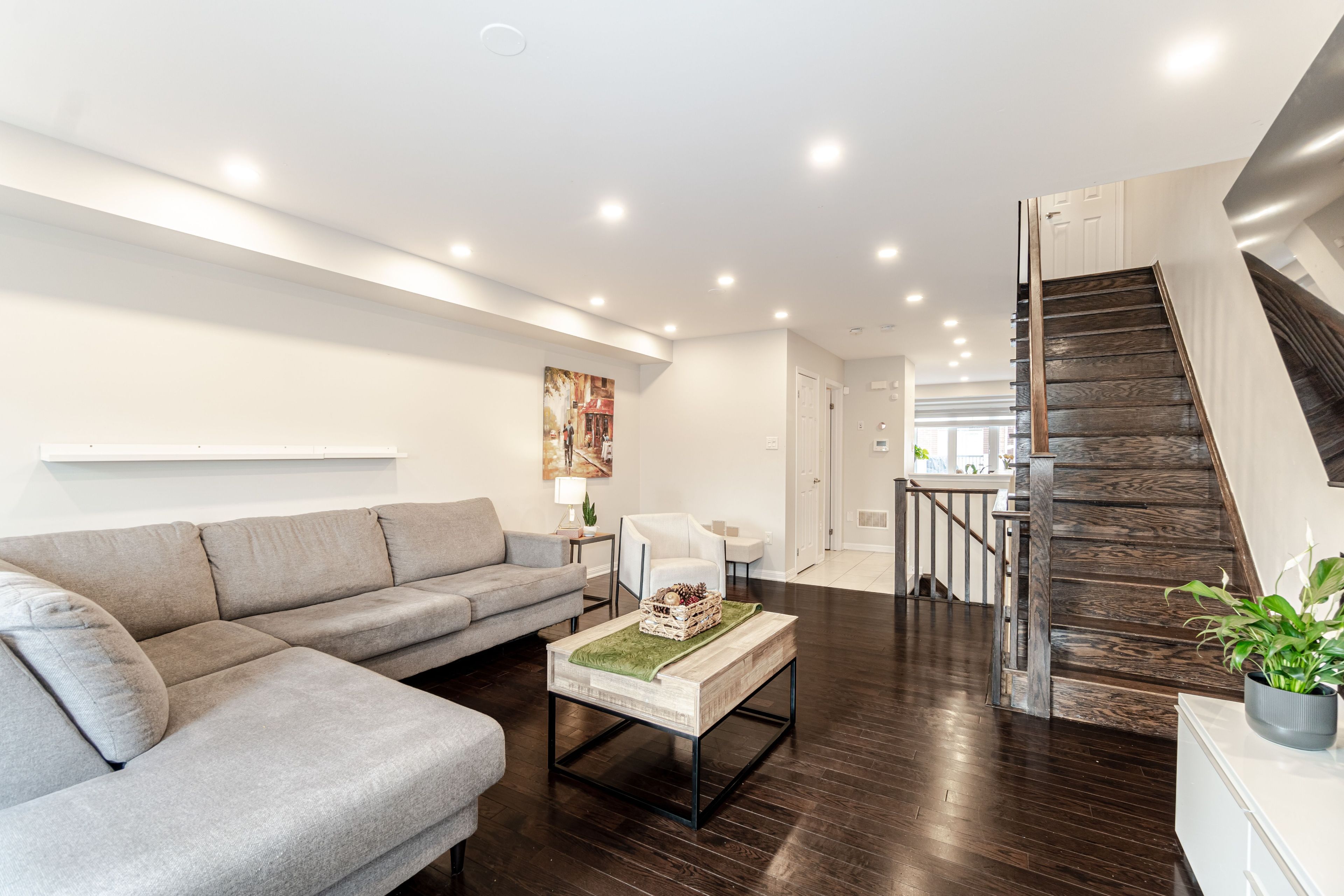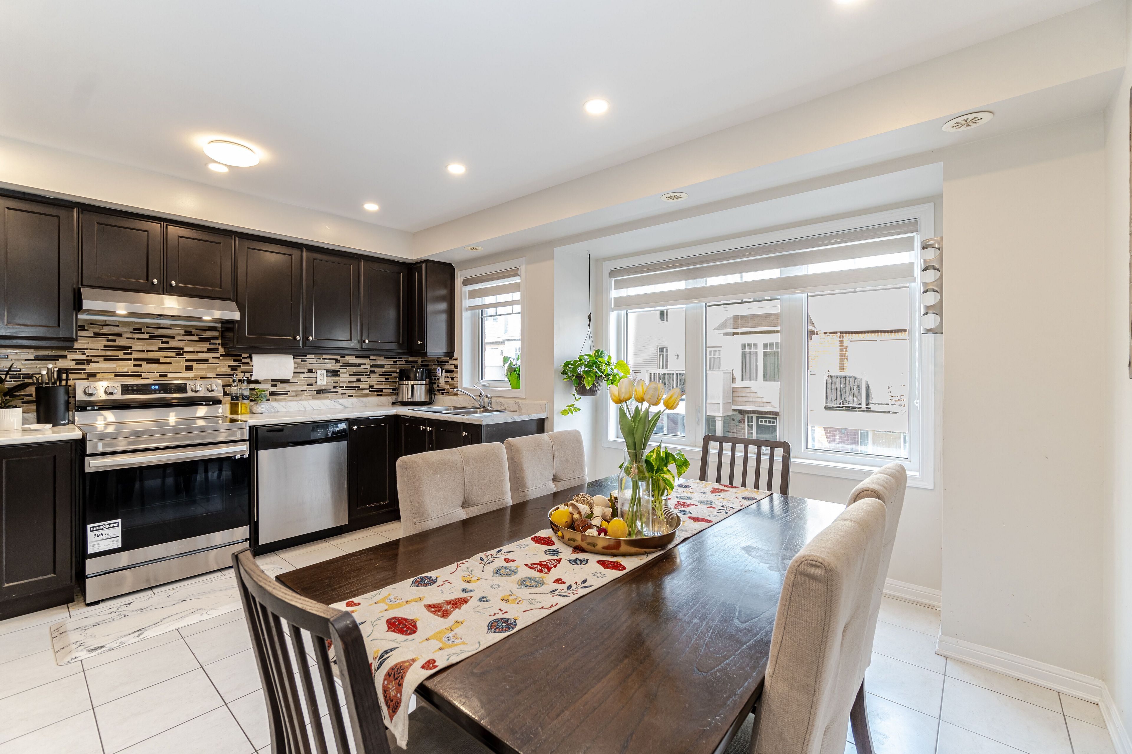 Bright and well-maintained freehold end unit townhome offering a functional multi-level layout in a family-friendly neighbourhood. The open concept living area features wall paneling, pot lights, wide plank flooring, and large windows providing excellent natural light. Welcoming front foyer with additional flex space ideal for a home office or sitting area. Attractive brick exterior with private entrance and great curb appeal. Spacious kitchen includes ample cabinetry, stainless steel appliances, full size dining area with a walk-out to a private balcony perfect for everyday living and entertaining. Upstairs offers spacious bedrooms with generous closet space and neutral finishes, including a sun-filled primary bedroom. Bathrooms are clean and updated, including a convenient powder room. Garage access to the home. Move-in ready and ideal for first-time buyers, professionals, or families. Surrounding the home are numerous paths and trails, perfect for leisurely walks and biking adventures. Conveniently located just minutes away from kelso conservation area, downtown freehold milton, several shopping plazas, milton's education village and wilfred laurier university milton campus.