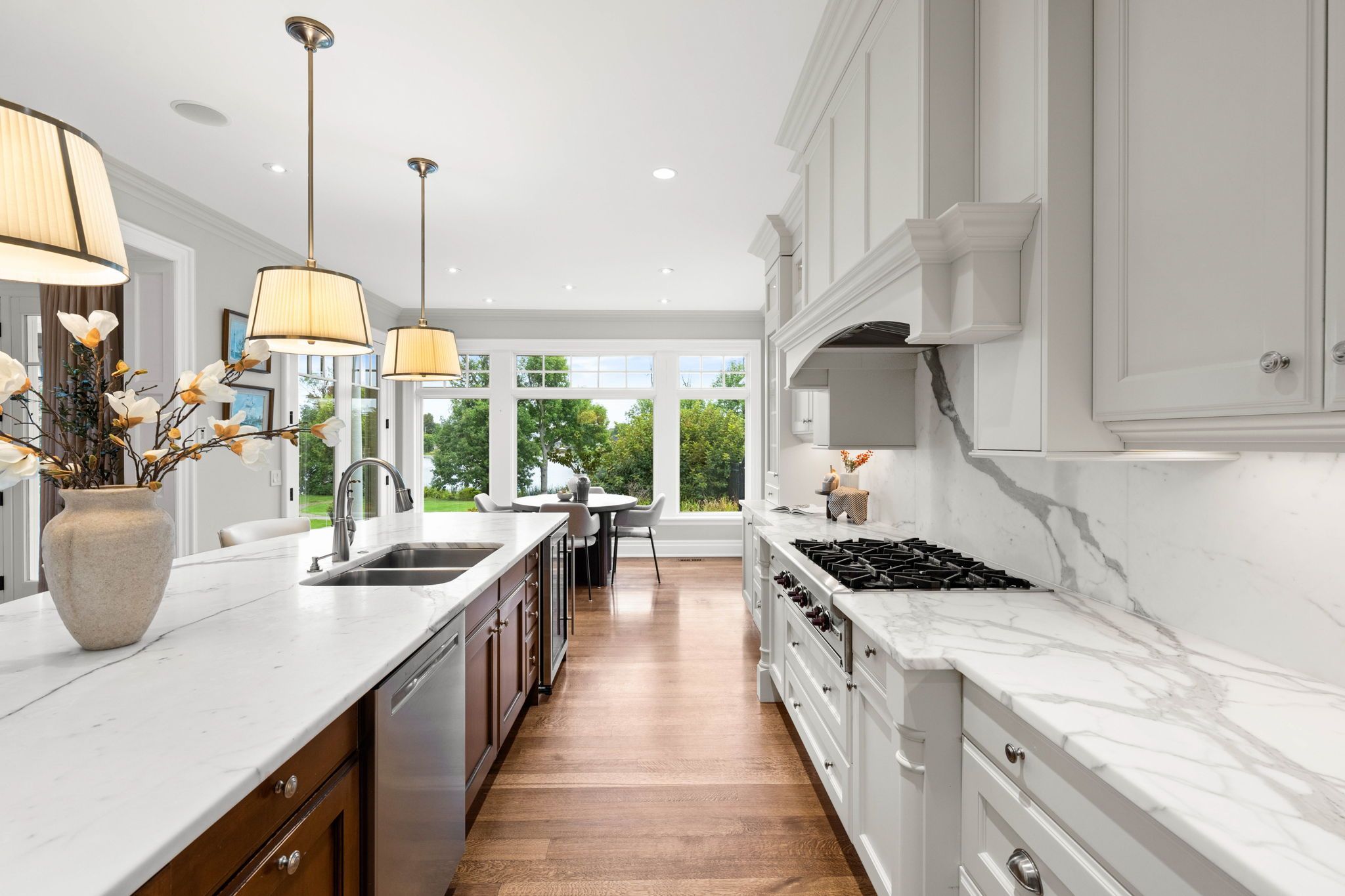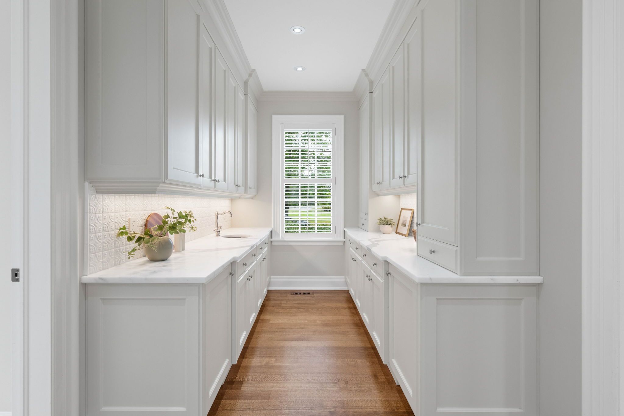• Custom kitchen with marble countertops and exquisite craftsmanship throughout.