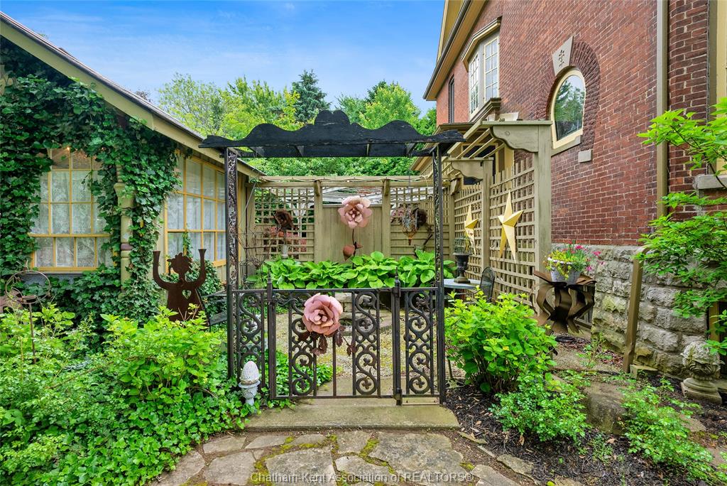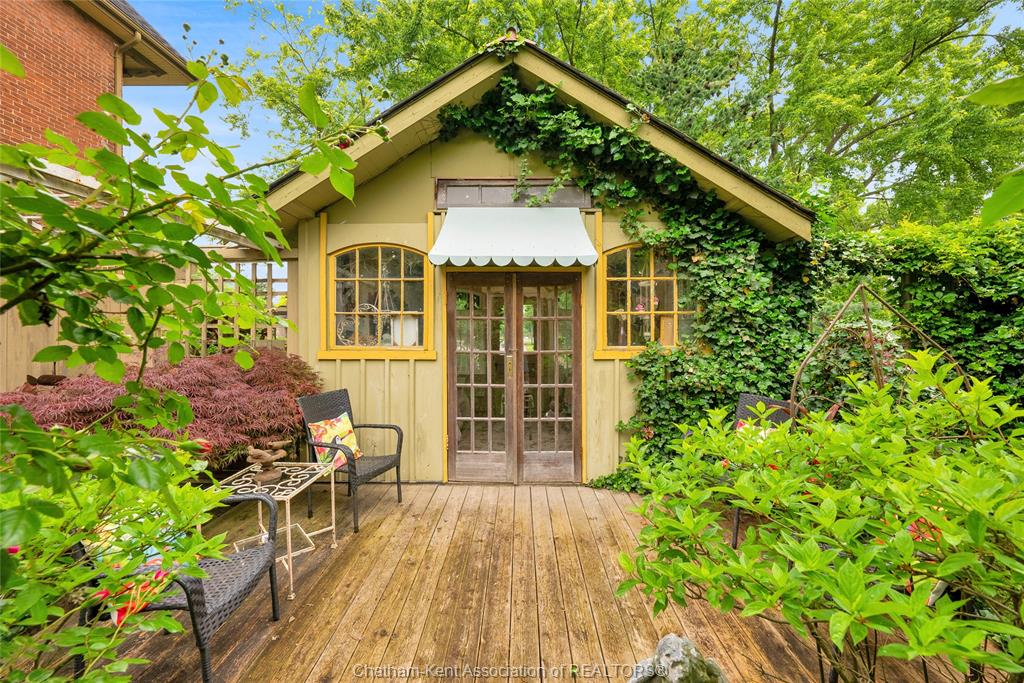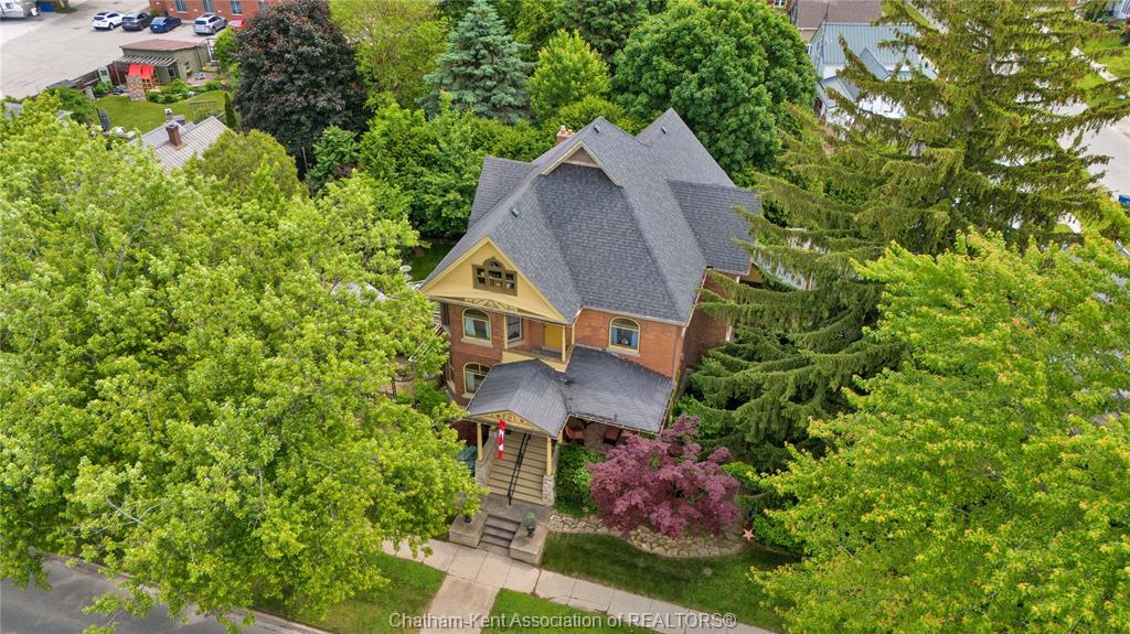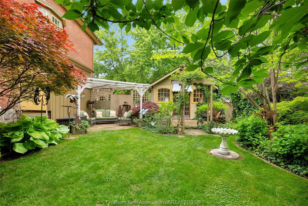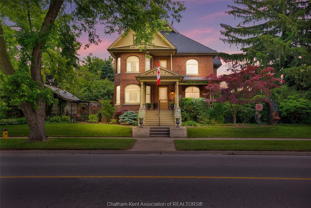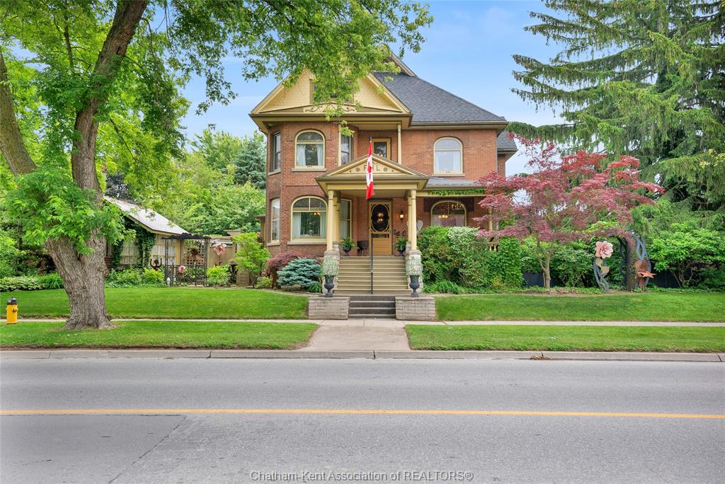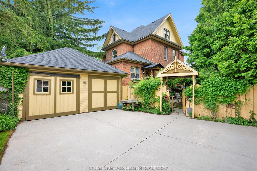 This iconic victorian-style home stands proudly in the heart of dresden, offering a rare blend of character, meticulous craftsmanship, charm, and is being offered for the first time in over 60 years. From the moment you arrive, you'll be captivated by the beautifully landscaped walkways, intricate woodwork, rich trim details, pocket doors, and the impressive scale of the home—truly unlike anything else on the market. Lovingly maintained and thoughtfully updated over the years, the home preserves its original charm while offering plenty of improvements. The main floor offers a large kitchen with ample cabinetry, joining a large dining room, providing a great space for entertaining. Two sitting rooms for potential office/dens and a 2pc bath complete the main floor. Upstairs, you’ll find 4 spacious bedrooms, including a generous primary suite complete with a large ensuite. Wide hallways and transom windows enhance the sense of space and elegance, with access to a balcony overlooking north street. The third-floor attic presents even more potential—ideal for a home office, creative studio, or cozy retreat. Meanwhile, the fully finished basement includes a separate entrance, a large family room, additional bedroom, kitchenette, and an updated 3pc bathroom—perfect for multi generational living, guests or potential rental income. Step outside into a storybook setting: private and peaceful grounds featuring a pergola, winding garden paths, serene sitting areas, and a one-of-a-kind she shed complete with hydro—perfect for hobbies, relaxation, or creative pursuits. A concrete drive leads to the detached double-car garage, rounding out this extraordinary property. Property to be sold in "as-is" condition as per request of the estate.