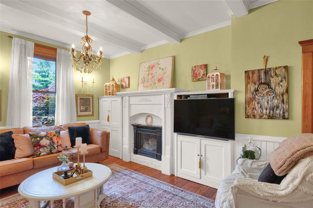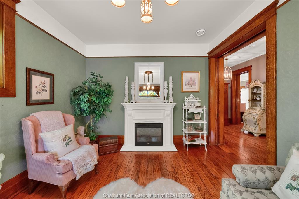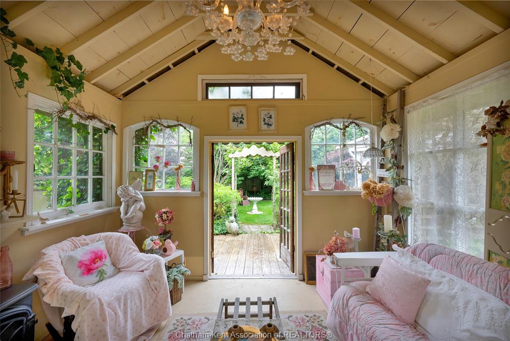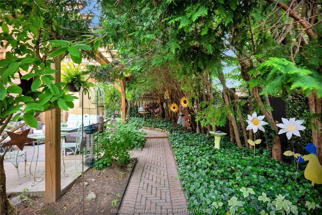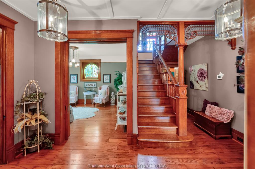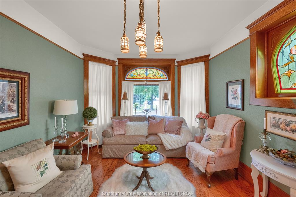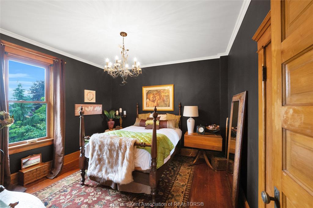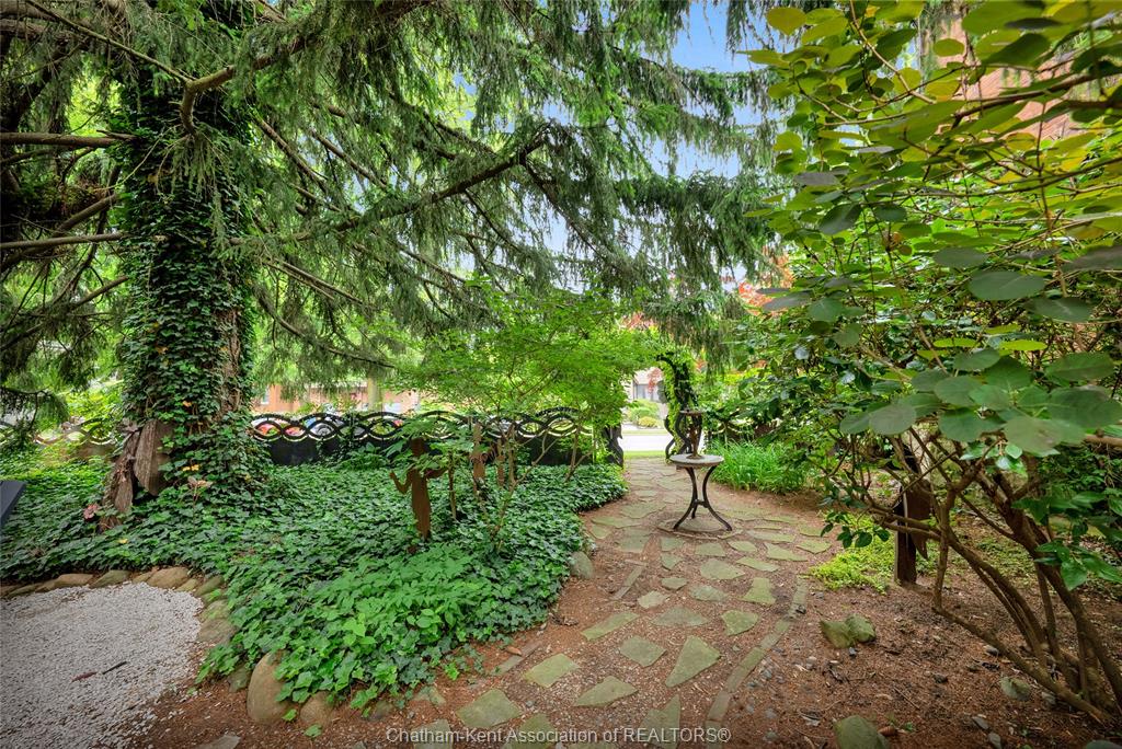 This iconic victorian-style home stands proudly in the heart of dresden, offering a rare blend of character, meticulous craftsmanship, charm, and is being offered for the first time in over 60 years. From the moment you arrive, you'll be captivated by the beautifully landscaped walkways, intricate woodwork, rich trim details, pocket doors, and the impressive scale of the home—truly unlike anything else on the market. Lovingly maintained and thoughtfully updated over the years, the home preserves its original charm while offering plenty of improvements. The main floor offers a large kitchen with ample cabinetry, joining a large dining room, providing a great space for entertaining. Two sitting rooms for potential office/dens and a 2pc bath complete the main floor. Upstairs, you’ll find 4 spacious bedrooms, including a generous primary suite complete with a large ensuite. Wide hallways and transom windows enhance the sense of space and elegance, with access to a balcony overlooking north street. The third-floor attic presents even more potential—ideal for a home office, creative studio, or cozy retreat. Meanwhile, the fully finished basement includes a separate entrance, a large family room, additional bedroom, kitchenette, and an updated 3pc bathroom—perfect for multi generational living, guests or potential rental income. Step outside into a storybook setting: private and peaceful grounds featuring a pergola, winding garden paths, serene sitting areas, and a one-of-a-kind she shed complete with hydro—perfect for hobbies, relaxation, or creative pursuits. A concrete drive leads to the detached double-car garage, rounding out this extraordinary property. Property to be sold in "as-is" condition as per request of the estate.