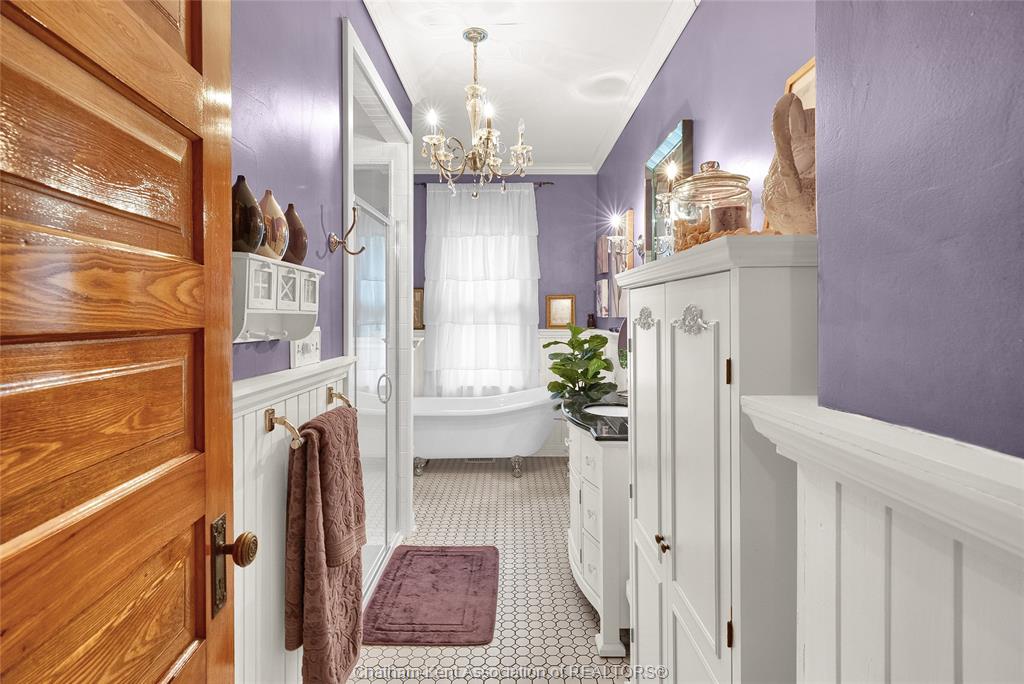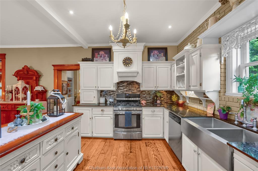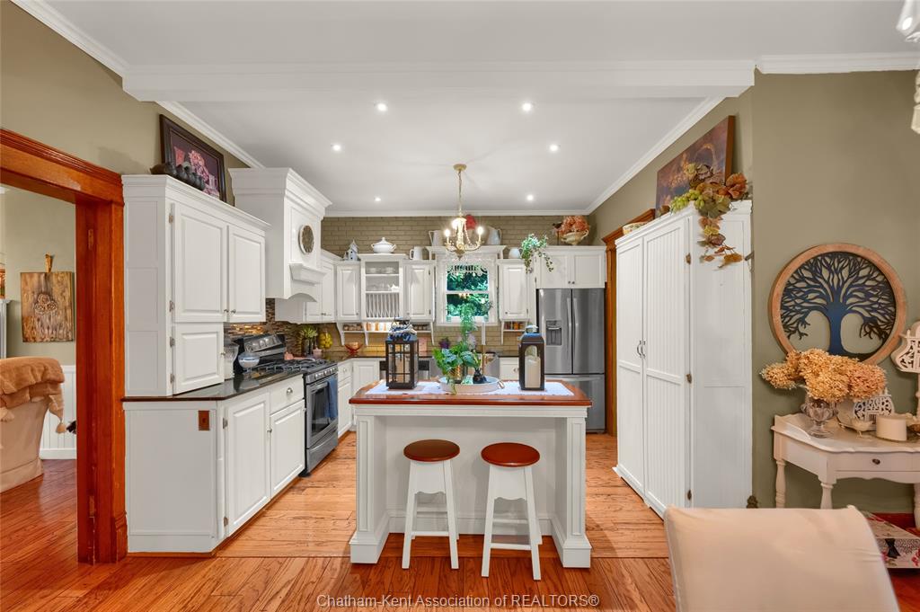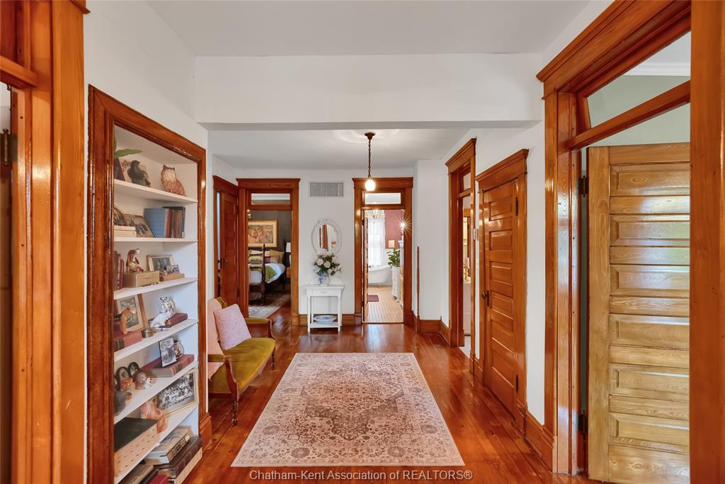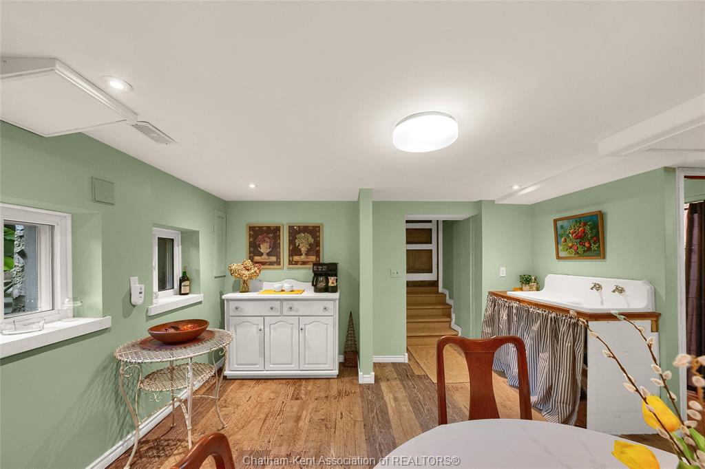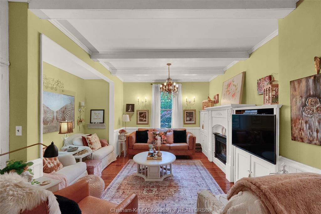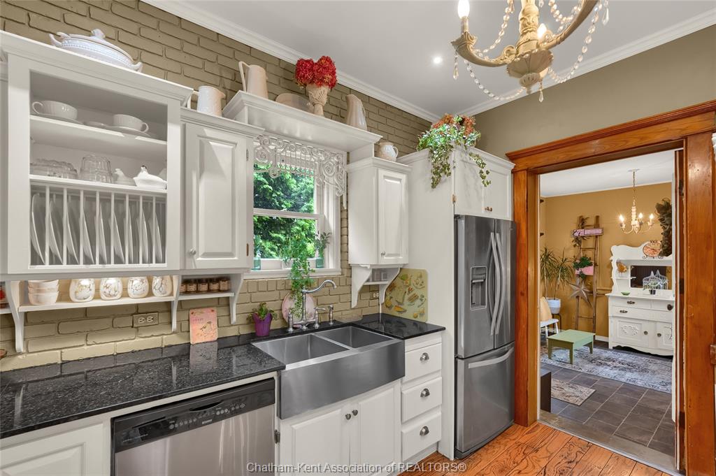 This iconic victorian-style home stands proudly in the heart of dresden, offering a rare blend of character, meticulous craftsmanship, charm, and is being offered for the first time in over 60 years. From the moment you arrive, you'll be captivated by the beautifully landscaped walkways, intricate woodwork, rich trim details, pocket doors, and the impressive scale of the home—truly unlike anything else on the market. Lovingly maintained and thoughtfully updated over the years, the home preserves its original charm while offering plenty of improvements. The main floor offers a large kitchen with ample cabinetry, joining a large dining room, providing a great space for entertaining. Two sitting rooms for potential office/dens and a 2pc bath complete the main floor. Upstairs, you’ll find 4 spacious bedrooms, including a generous primary suite complete with a large ensuite. Wide hallways and transom windows enhance the sense of space and elegance, with access to a balcony overlooking north street. The third-floor attic presents even more potential—ideal for a home office, creative studio, or cozy retreat. Meanwhile, the fully finished basement includes a separate entrance, a large family room, additional bedroom, kitchenette, and an updated 3pc bathroom—perfect for multi generational living, guests or potential rental income. Step outside into a storybook setting: private and peaceful grounds featuring a pergola, winding garden paths, serene sitting areas, and a one-of-a-kind she shed complete with hydro—perfect for hobbies, relaxation, or creative pursuits. A concrete drive leads to the detached double-car garage, rounding out this extraordinary property. Property to be sold in "as-is" condition as per request of the estate.