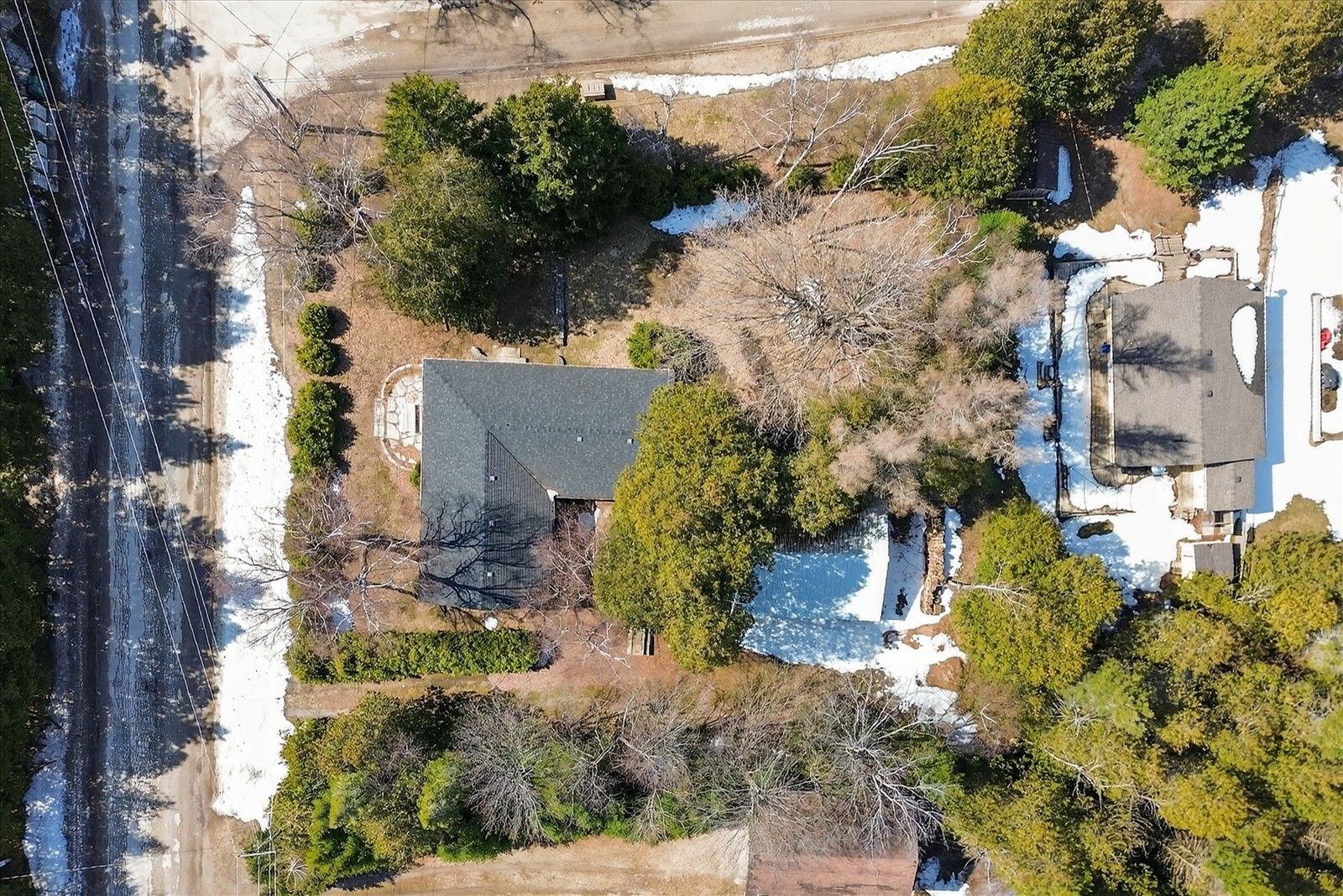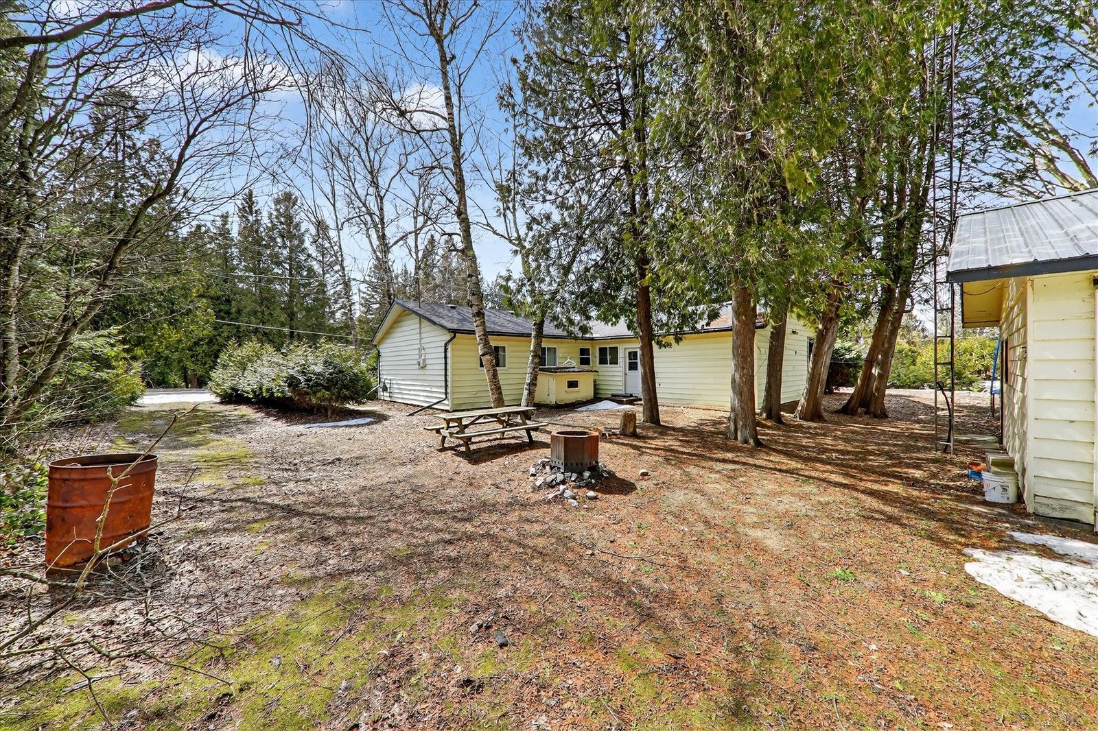 • Generous outdoor space with patios, firepit, and mature trees.