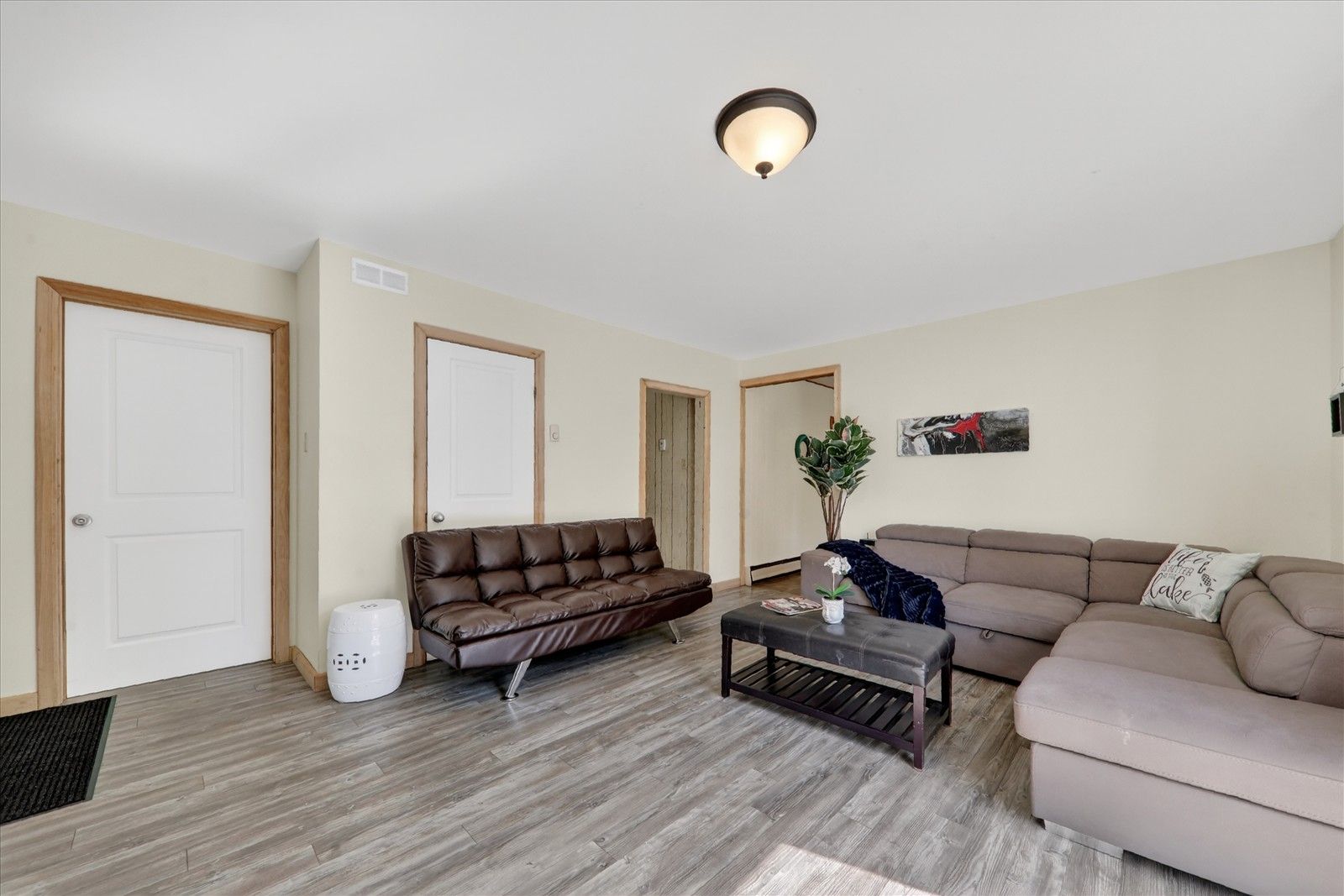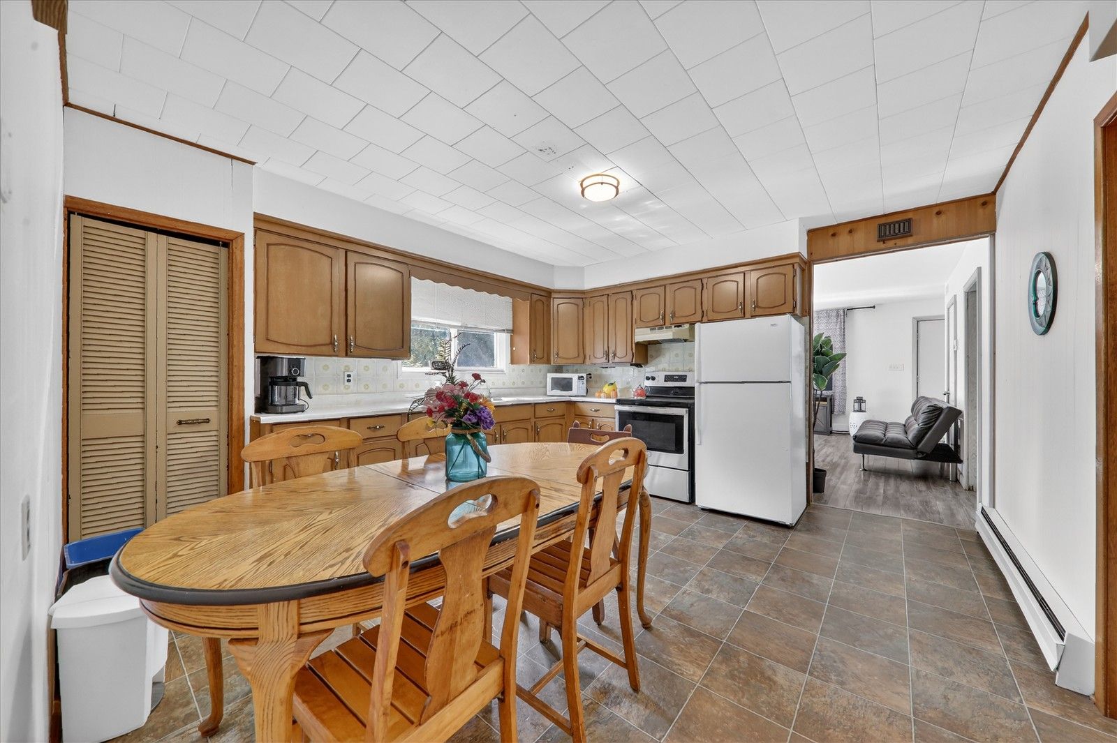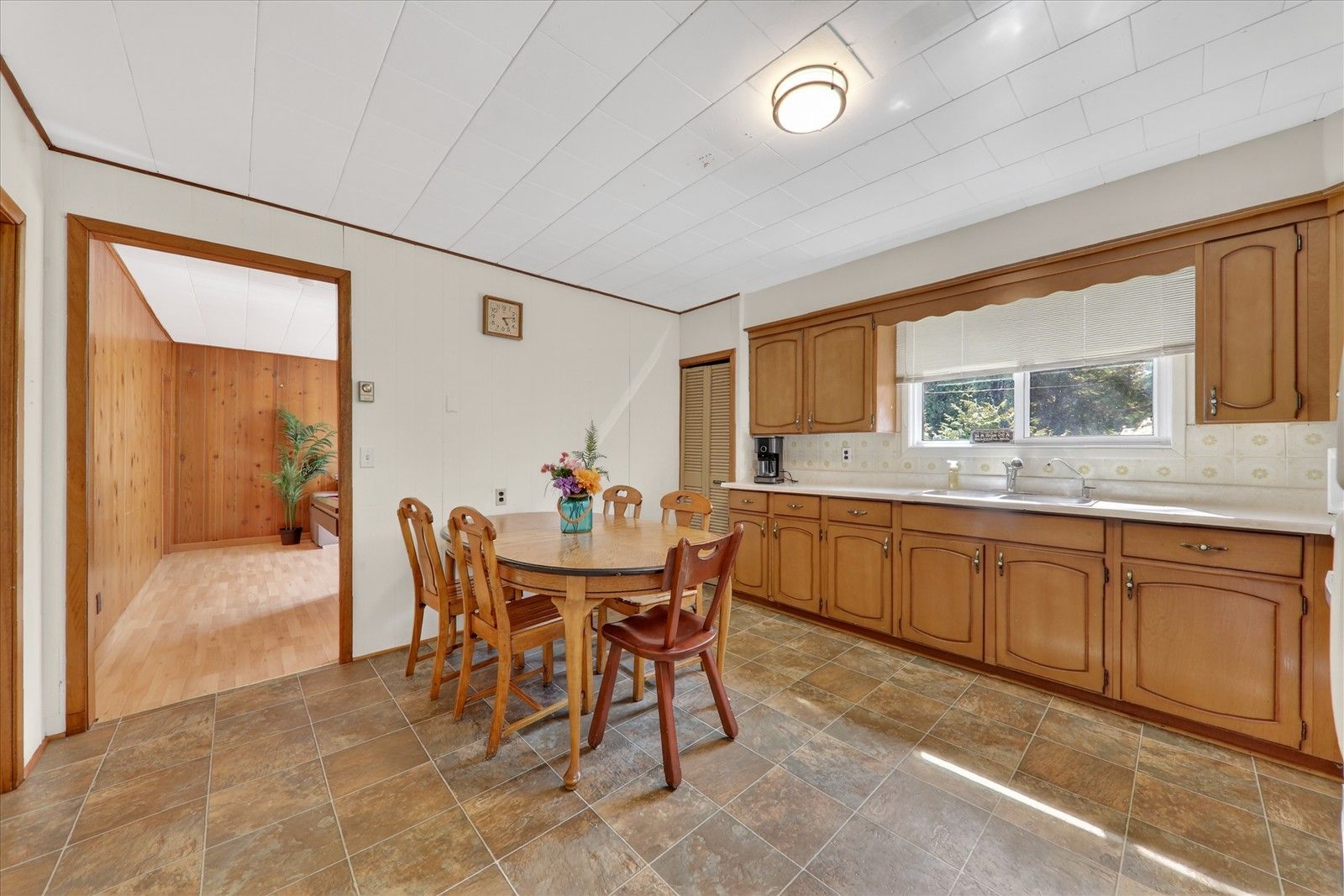 • Functional bungalow layout with two living areas and eat-in kitchen.