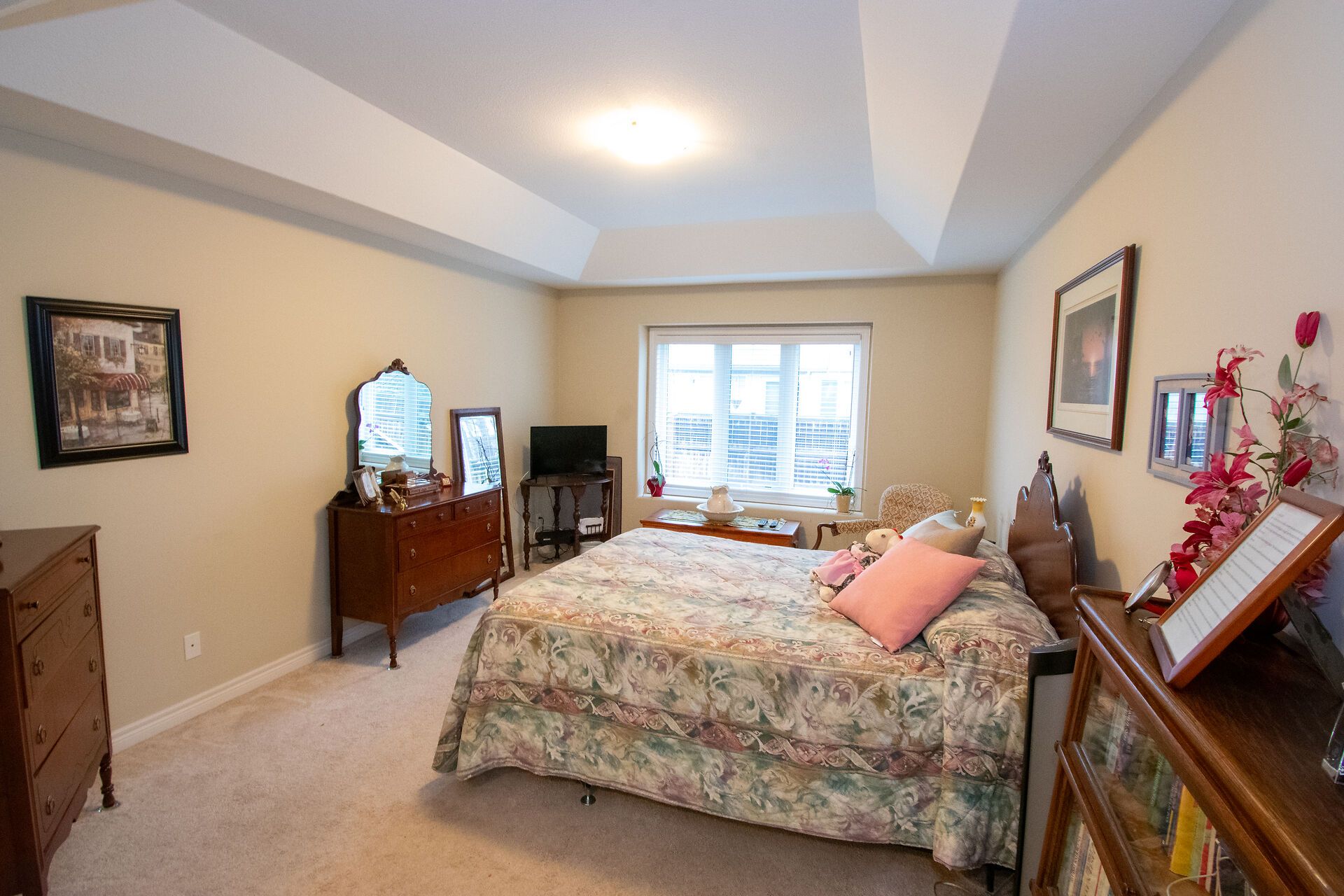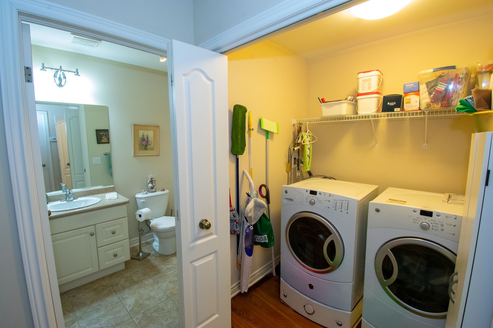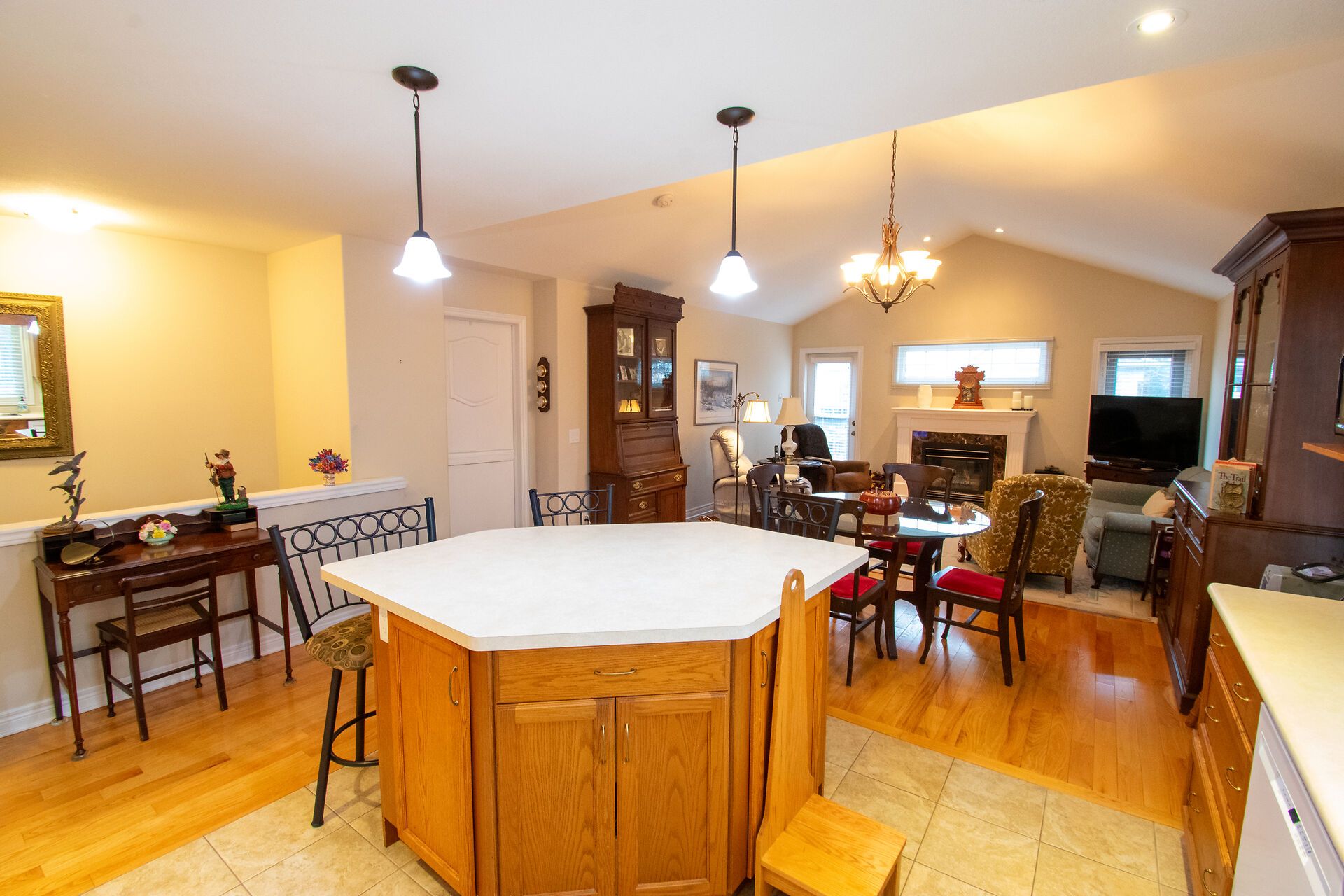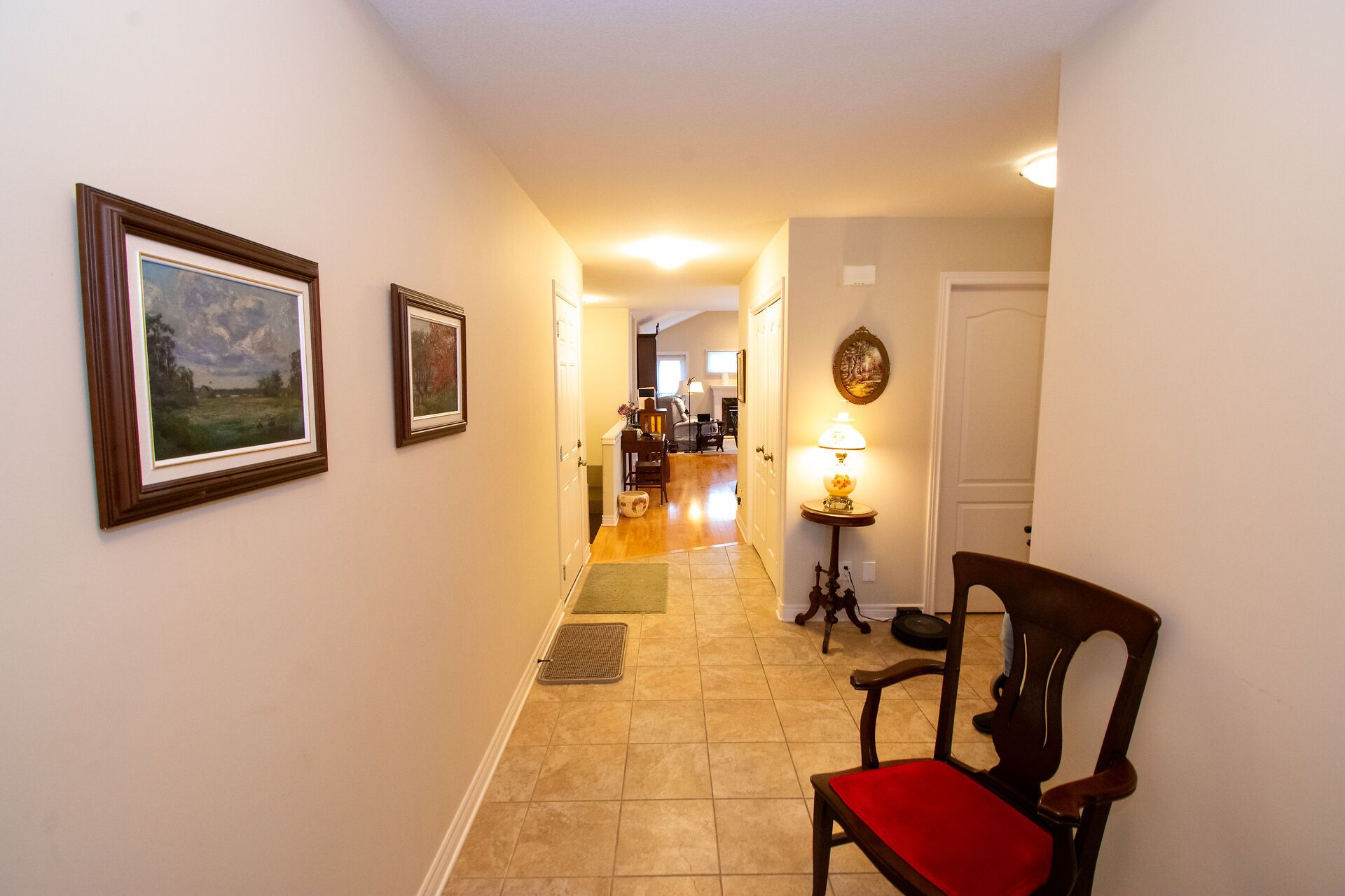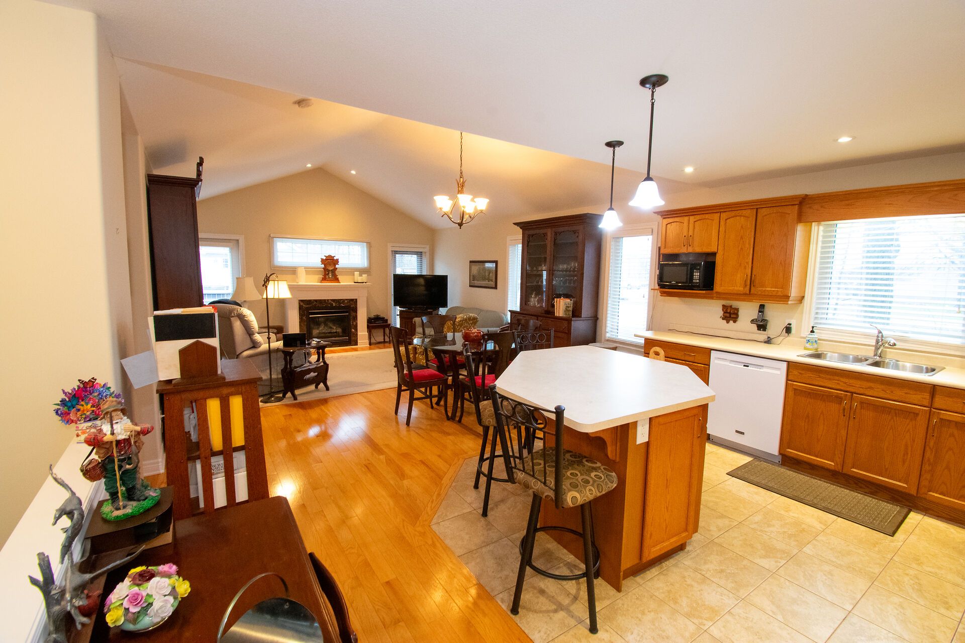 "well cared for end unit vacant land condo townhome in quiet brockwood terrace 16 unit complex. This well cared for 2 bedroom and 2 bath end unit vacant land condo townhome with single attached garage with inside access is a great opportunity for someone looking to downsize"", as you enter into the large foyer, you are greeted with a spacious area with tray ceiling & tile floors & inside access to the garage. Continue on, you will notice a good sized guest bedroom/ seating area with large closet and off the bedroom you have main floor laundry and separate 4pc main bath. At the end of the foyer, you head into the stunning open concept elmwood kitchen and great room area with vaulted ceiling & hardwood flooring & gas fireplace. In the updated kitchen you have plenty of counter & cabinet space (pull out drawers & spice drawer) with island & pot lighting and built-in appliances. In the great room you have dining area and living room combo w/ plenty of natural light, gas fireplace and separate door leading to a large deck area with gazebo. Off the kitchen you head into a generous sized master bedroom with tray ceiling, walk-in closet and large 3pc ensuite. Upstairs also offers an abundance of closet space. Once you have completed the main level you can head downstairs you notice a full height unfinished basement with full height and easy to finish offer. Close to amenities, welland canal, outlet mall & approx 10 mins to niagara on the lake