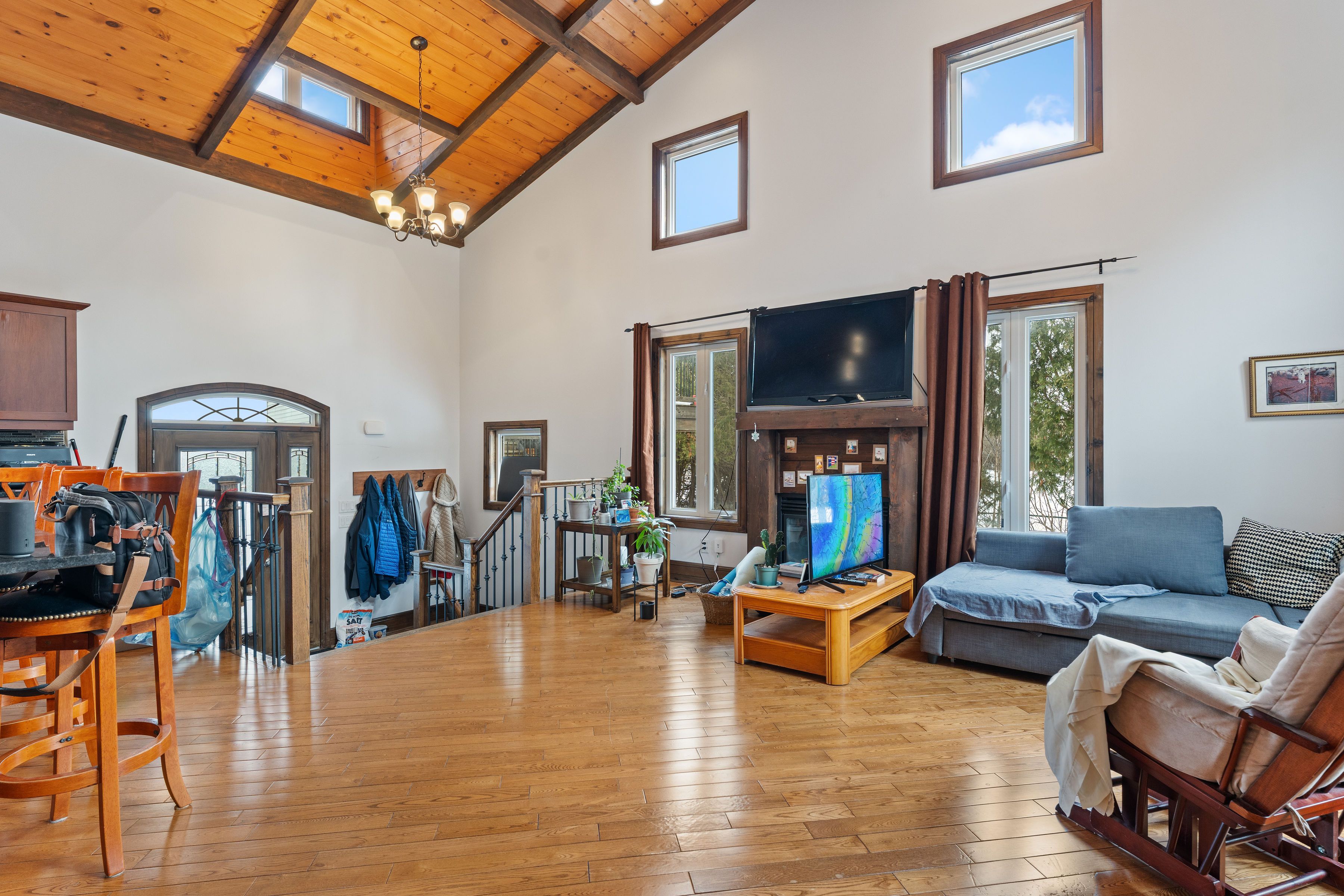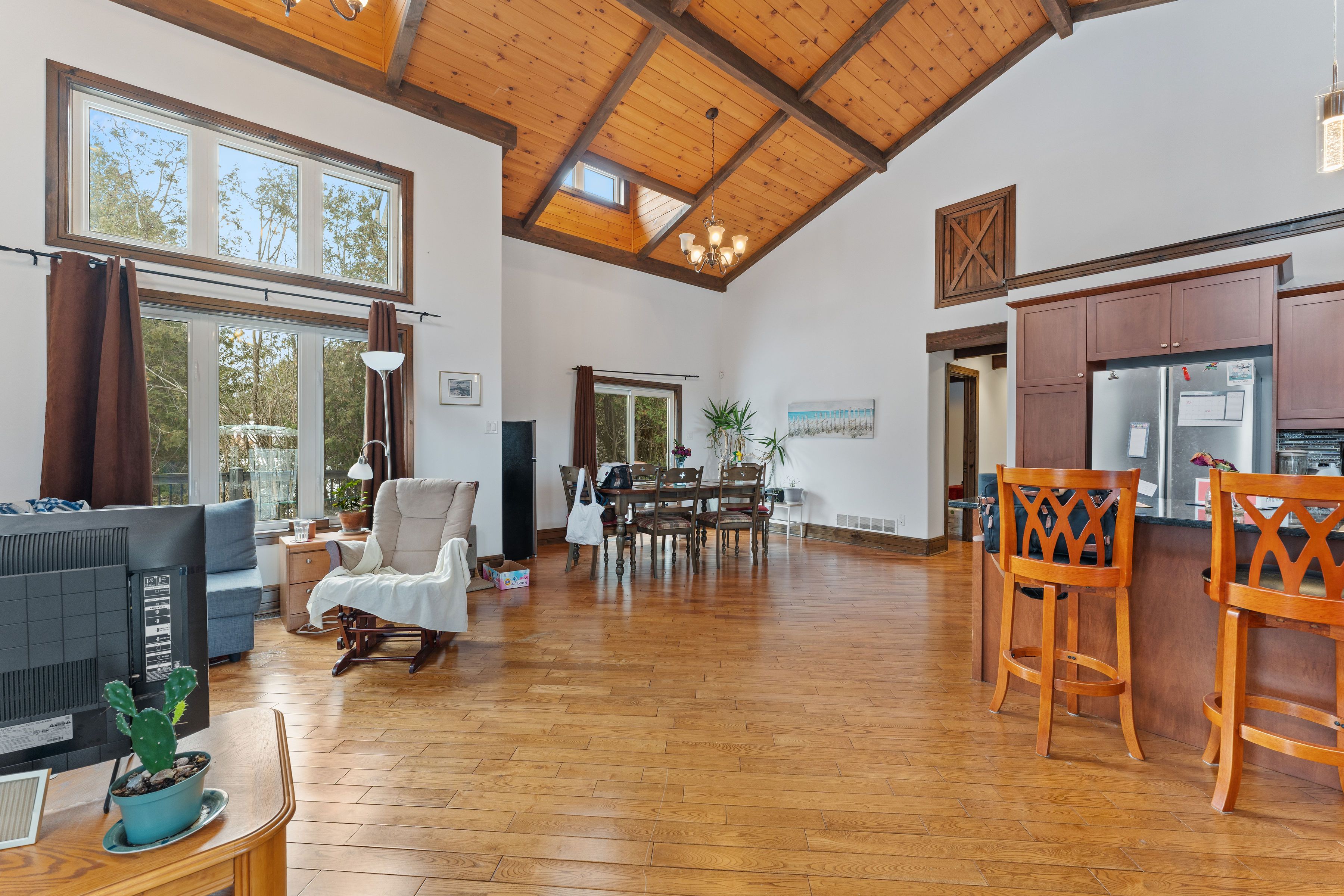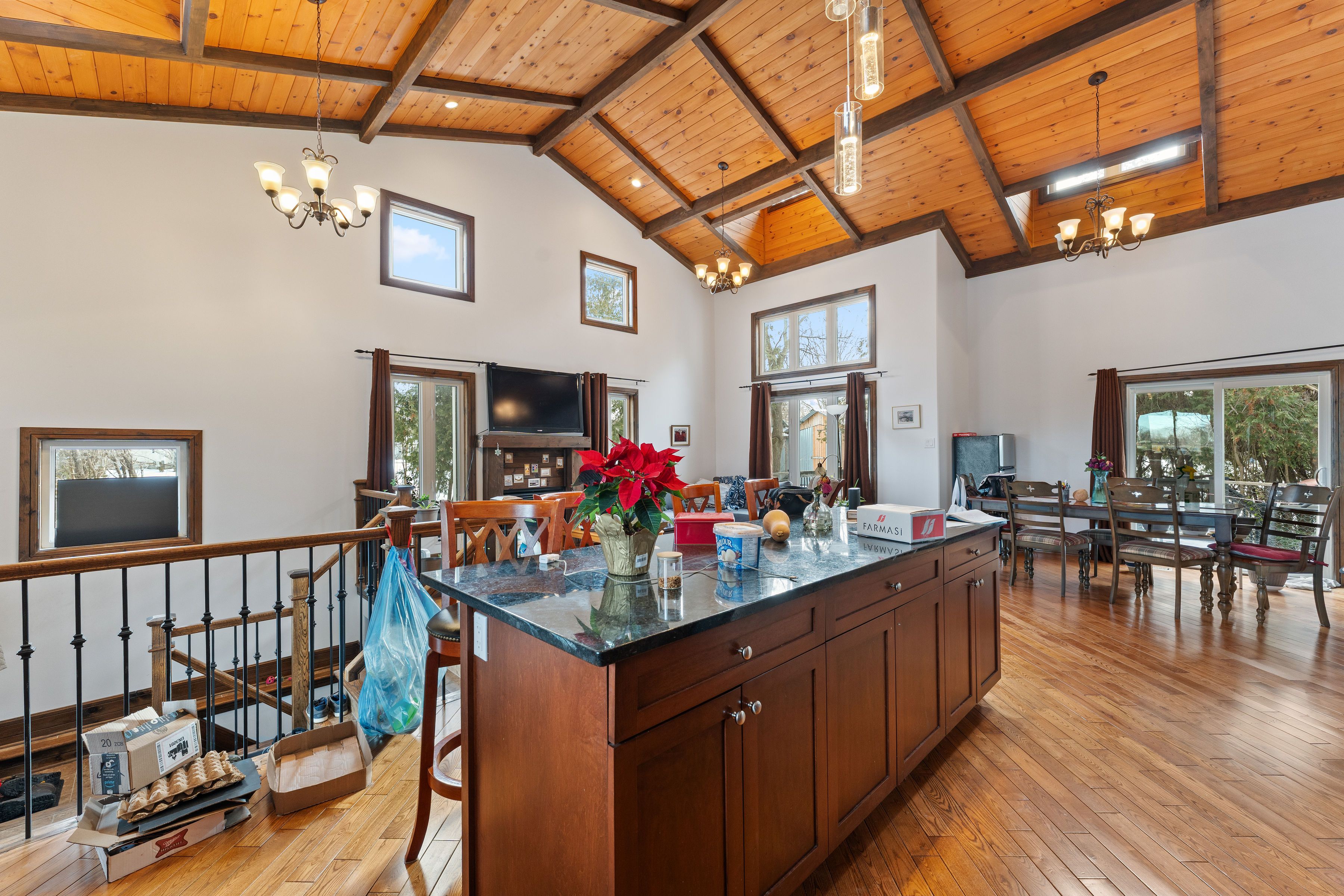 • Open-concept main home with hardwood floors and high vaulted ceilings.