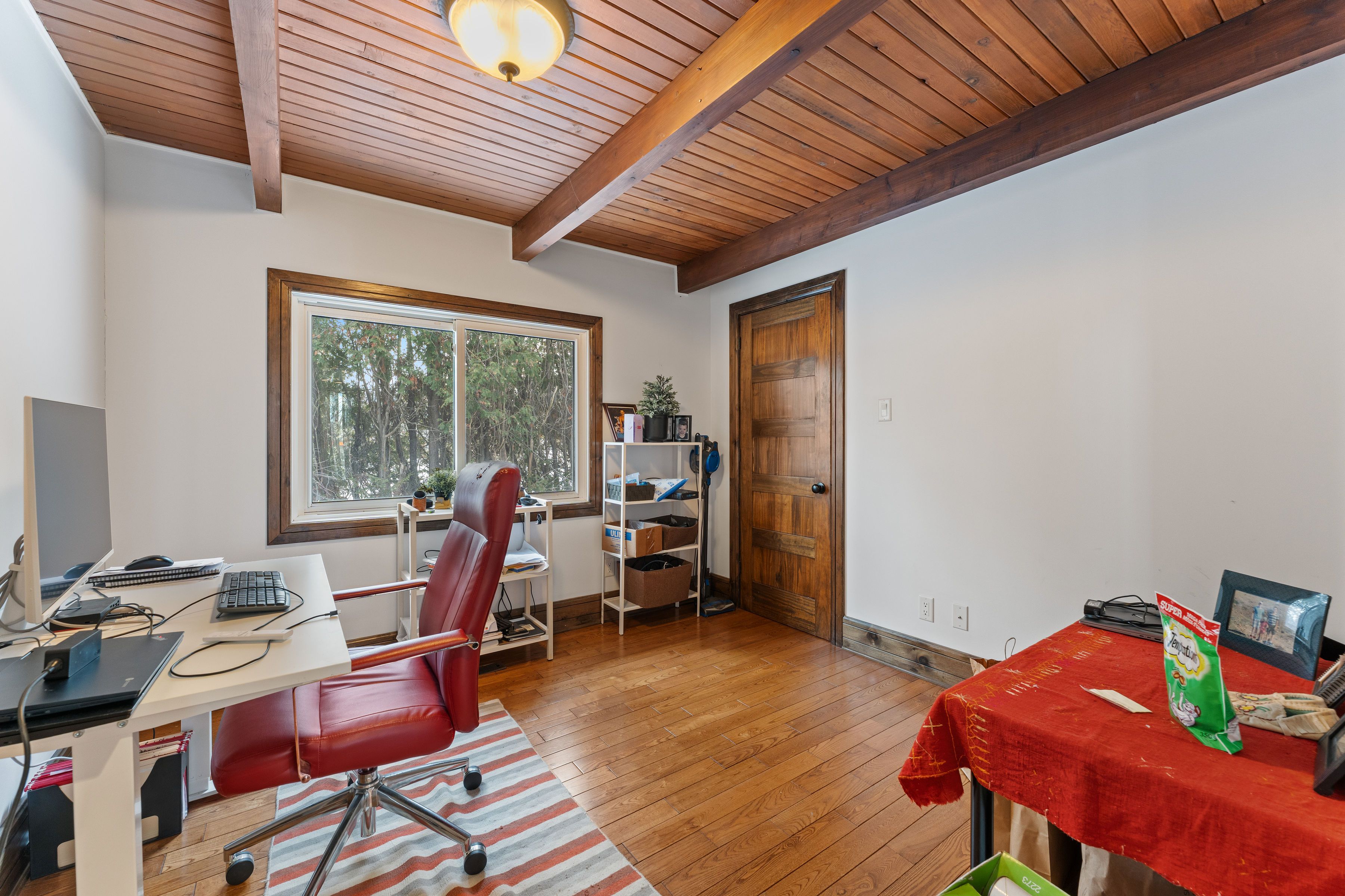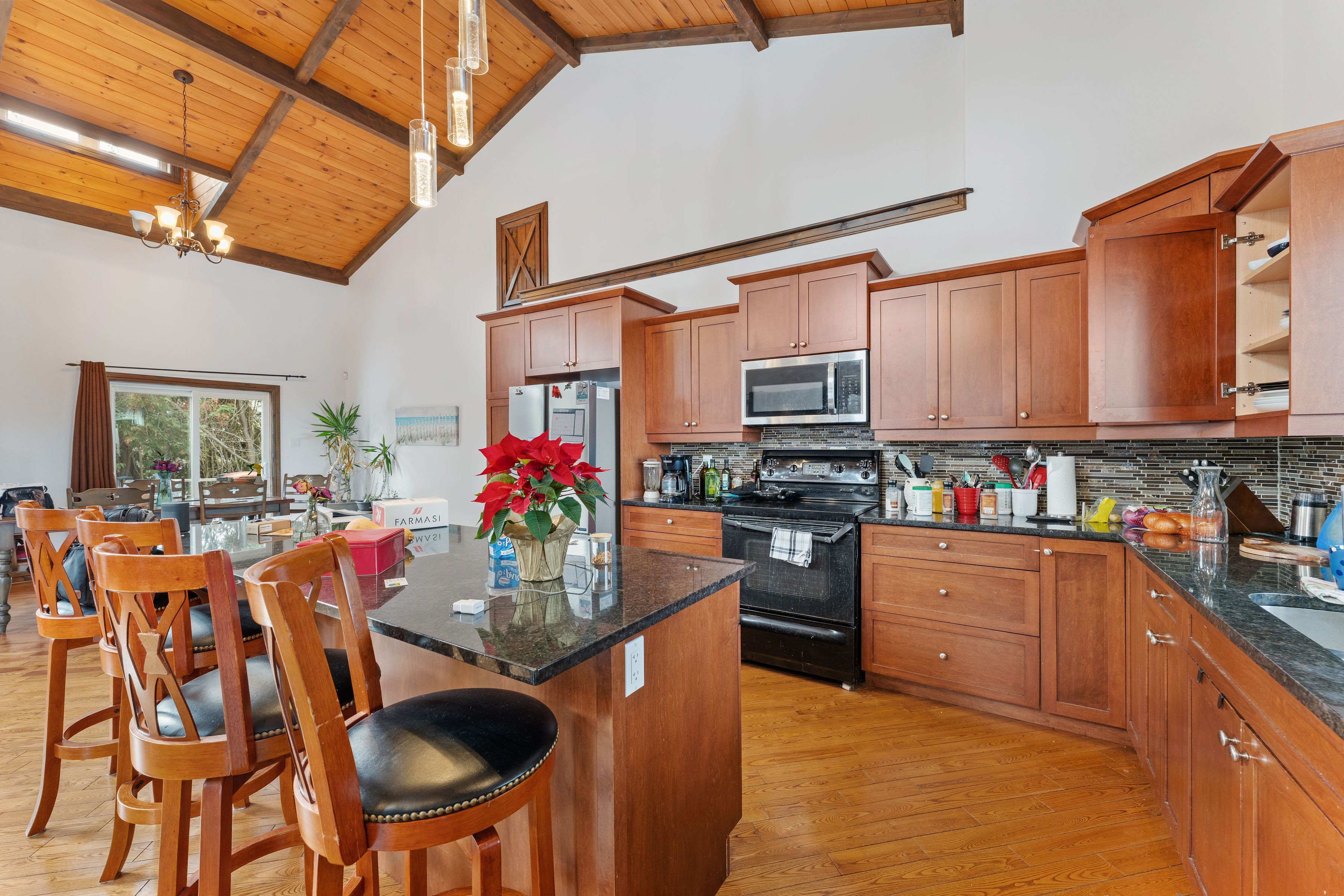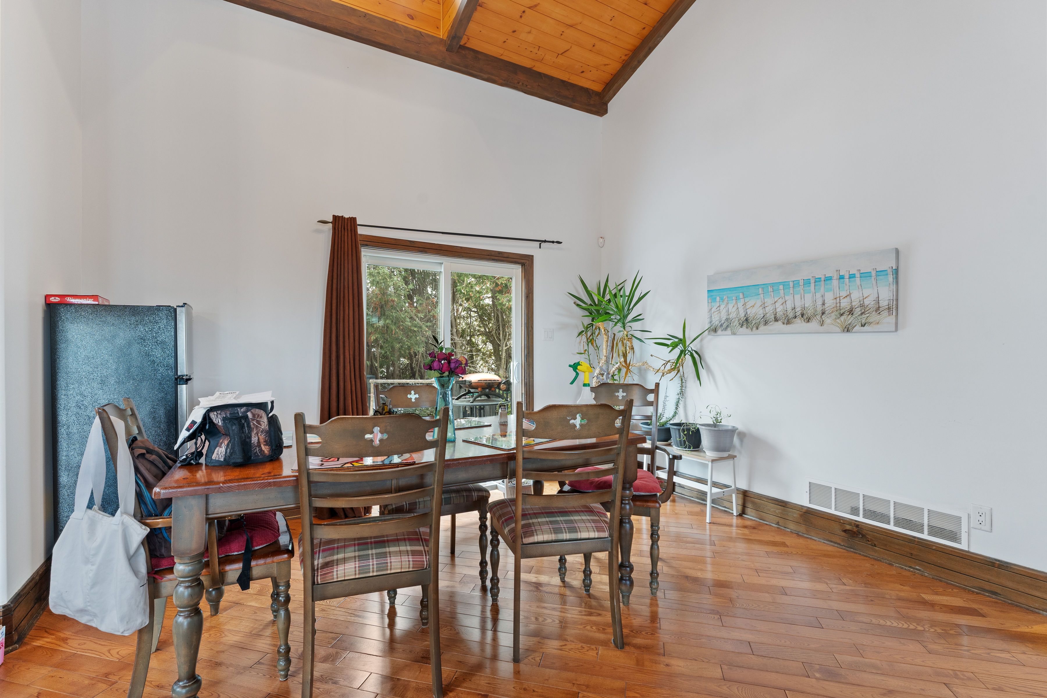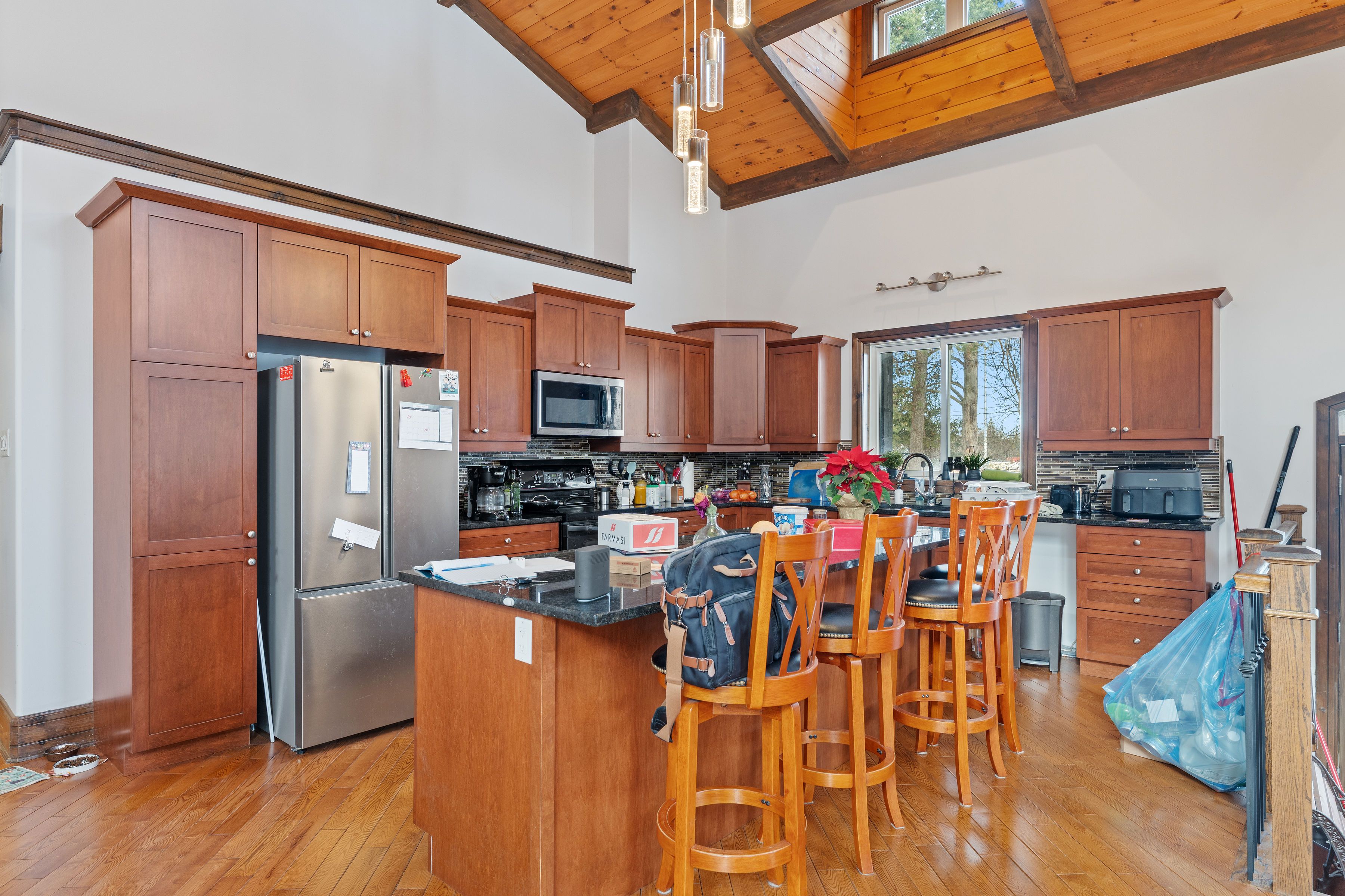 • Open-concept main home with hardwood floors and high vaulted ceilings.