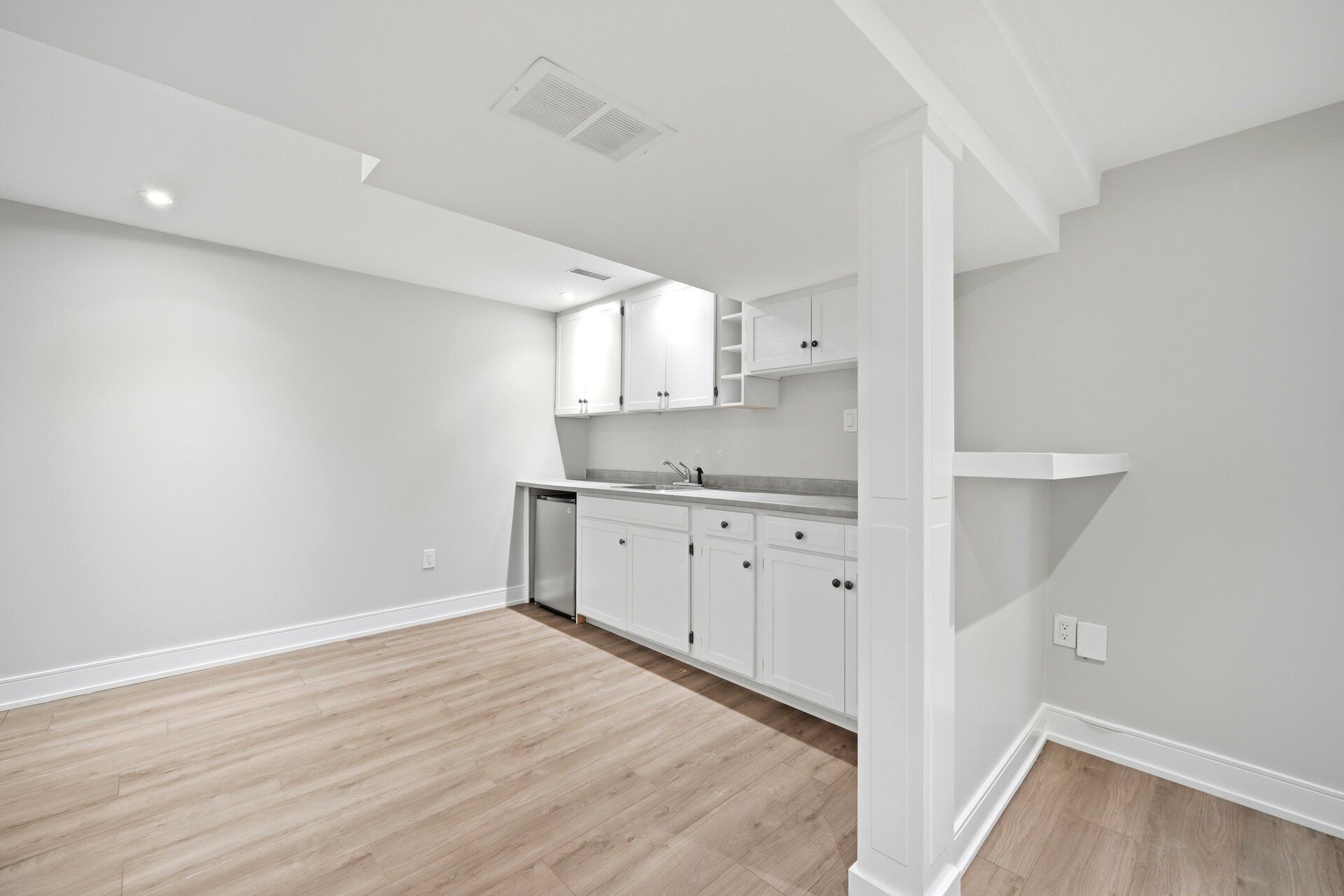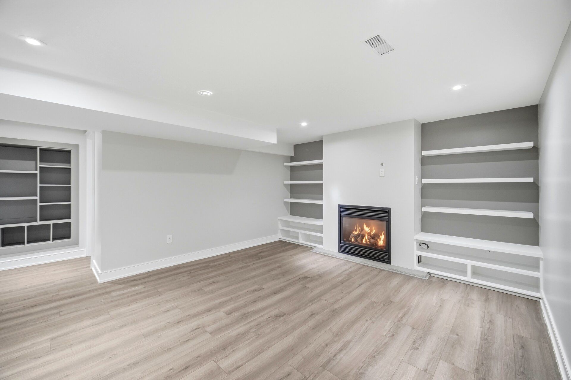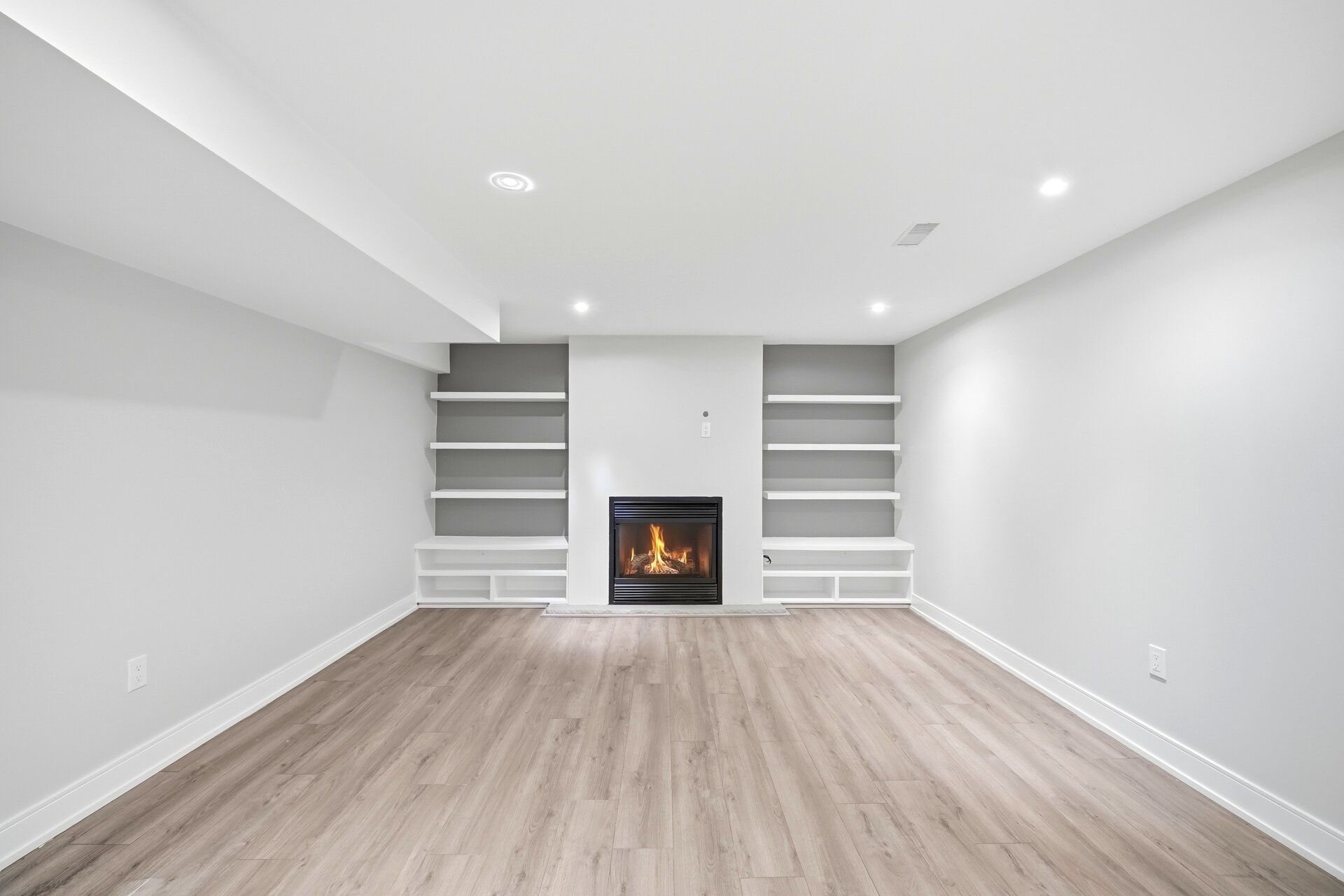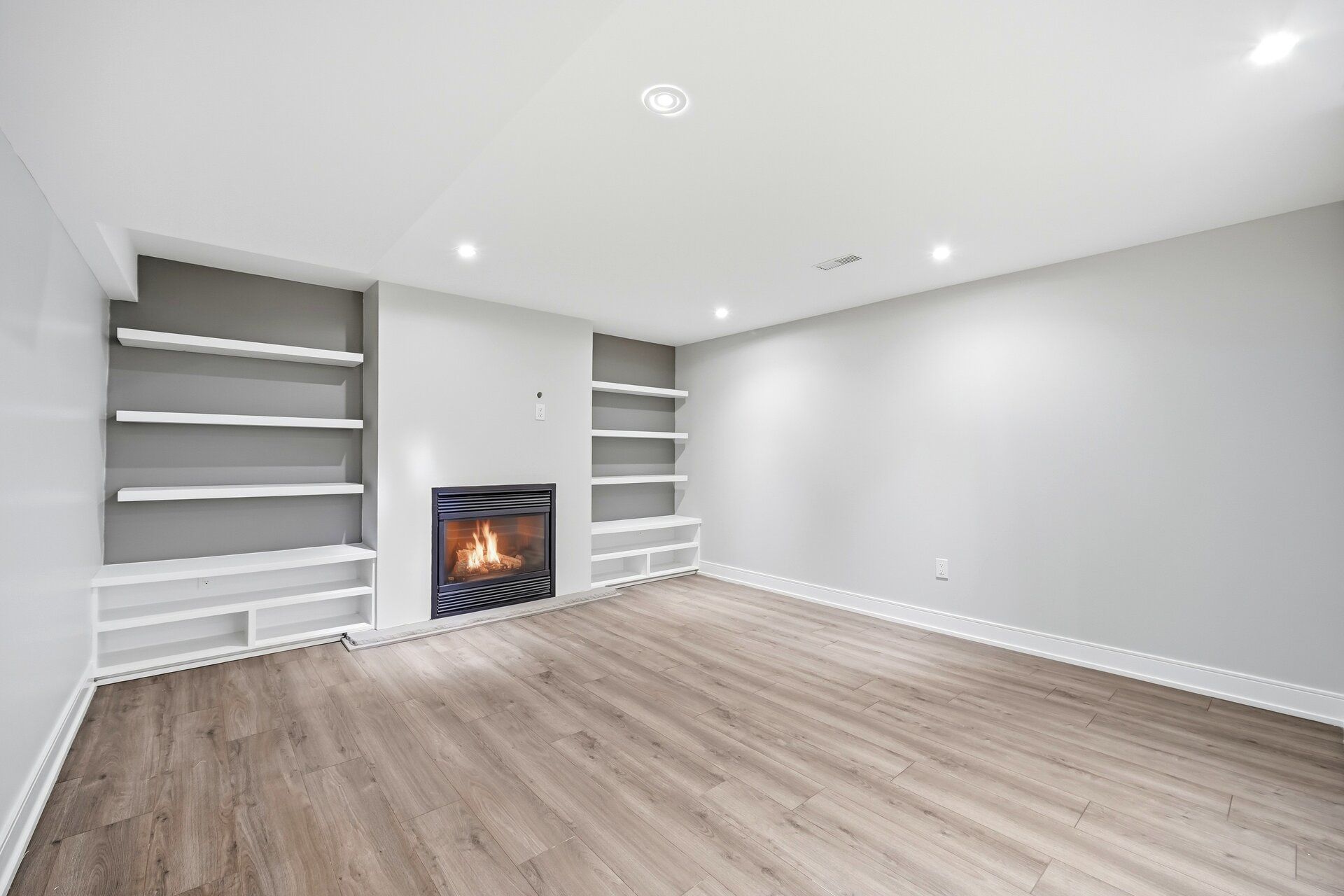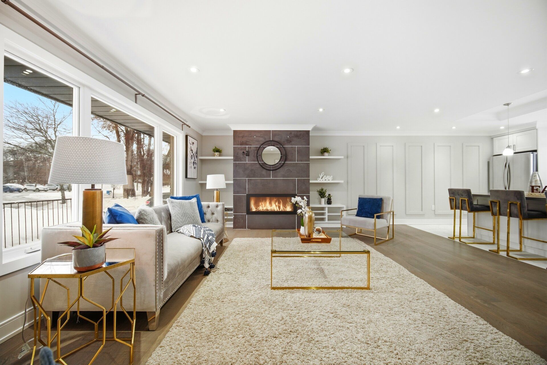 • Open concept living room with stylish engineered flooring.