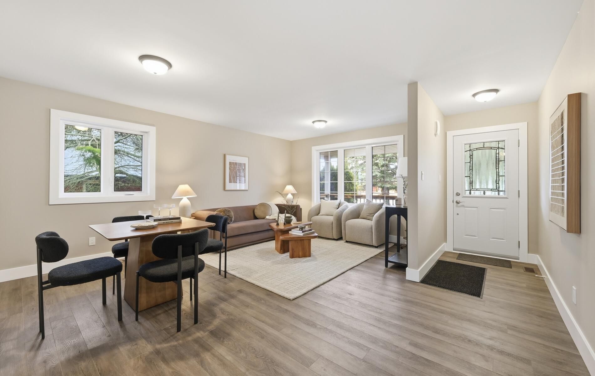 • Bright open-concept layout with new flooring and natural light throughout.