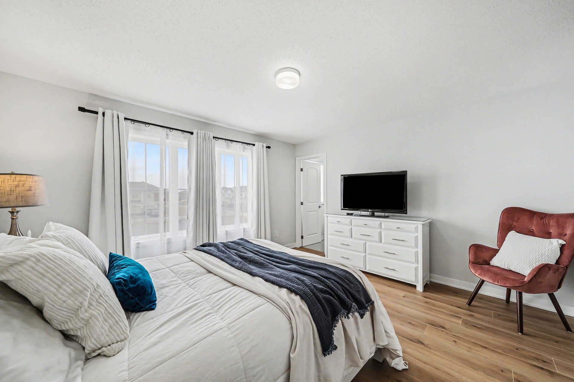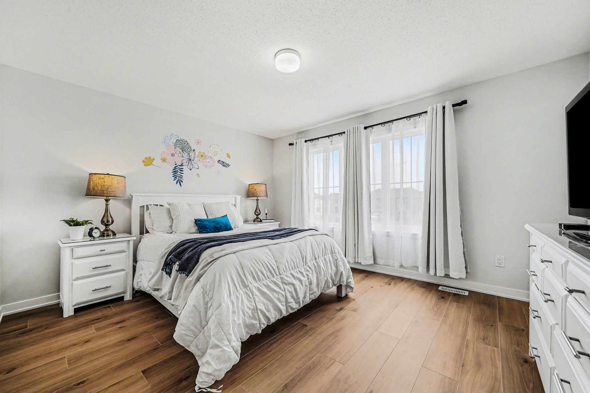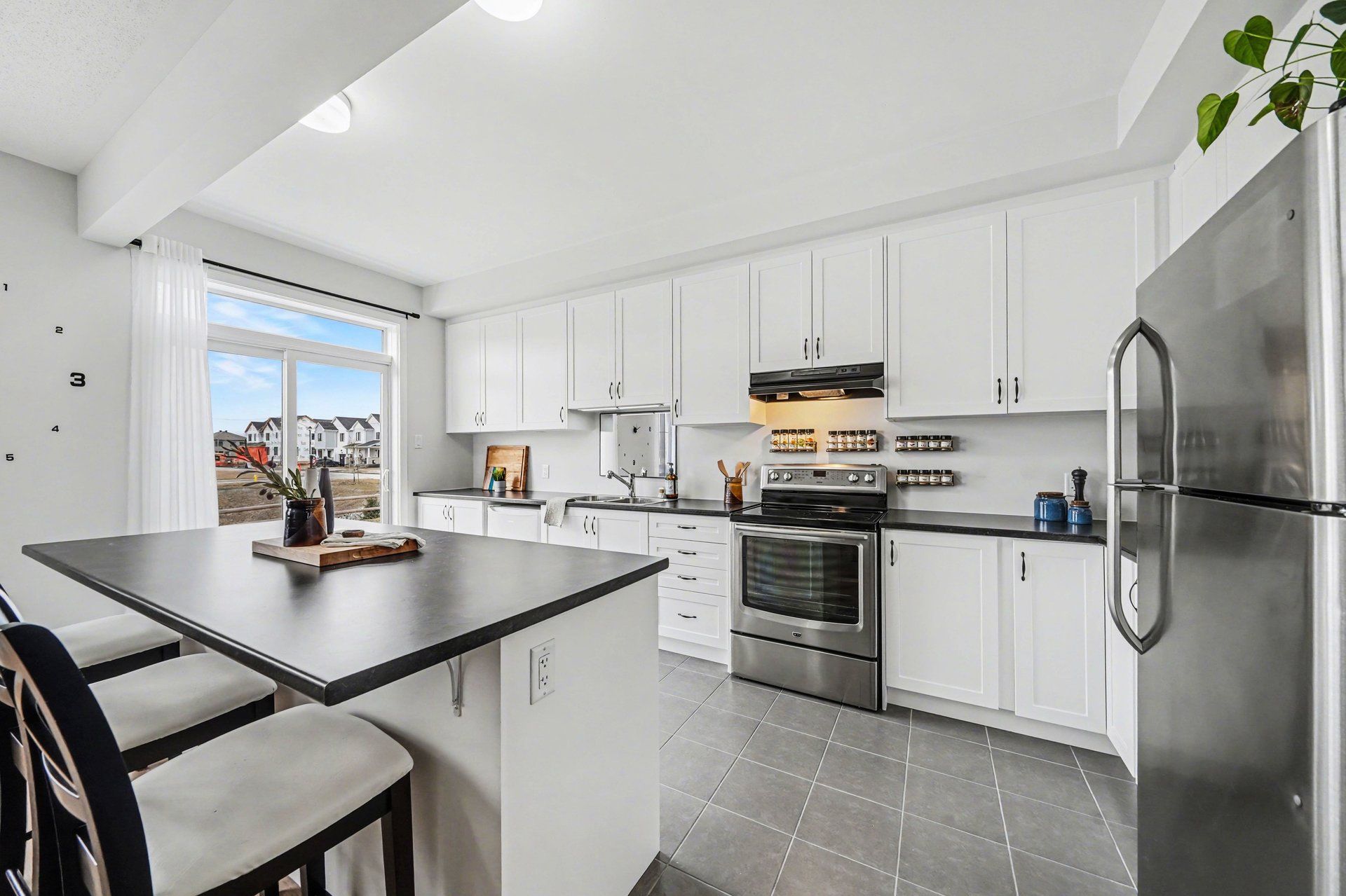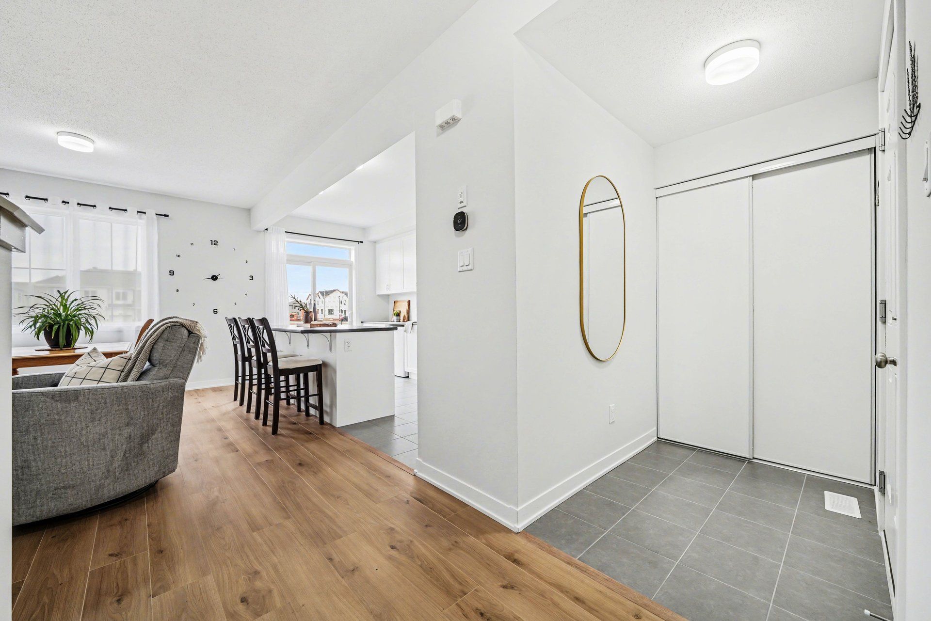Welcome to the odyssey, a thoughtfully designed 3-bedroom, 3. 5-bathroom townhome offering modern comfort, stylish finishes, and exceptional functionality. Step onto the inviting front porch and into a welcoming, spacious foyer with a convenient closet and powder room. The main level features a smart, open-concept layout with a versatile flex space, ideal for a home office, coffee bar, or reading nook, leading into a beautifully upgraded chef's kitchen. Enjoy cooking and entertaining with an oversized island, upgraded extended cabinetry to the ceiling, and ample counter space, all overlooking the bright and spacious great room. This main floor is complete with inside entry from the garage, opening to a secondary foyer area with a full closet, as well as patio doors from the kitchen leading to the rear yard overlooking the enclosed reservoir. Upstairs, you'll find three well-proportioned bedrooms, including a generous primary retreat complete with a walk-in closet and private ensuite. A full main bathroom, convenient second-floor laundry, and linen storage add to the home's practical appeal. This home truly stands out with a fully finished basement, offering additional living space with a recreation room, along with a finished bathroom, ideal for guests or growing families. A large utility room and excellent storage space complete this level. Additional upgrades include laminate flooring throughout the main and second levels, hardwood stairs, a larger kitchen island, and an enhanced kitchen layout including deep pot and pan drawers, a garage door opener with ev-ready wiring and water access for easy vehicle cleaning, and a water softener with chlorine filtration system. With its thoughtful upgrades and flexible living spaces, this move-in ready home is perfect for modern lifestyles. Don't miss your opportunity to make it yours!
