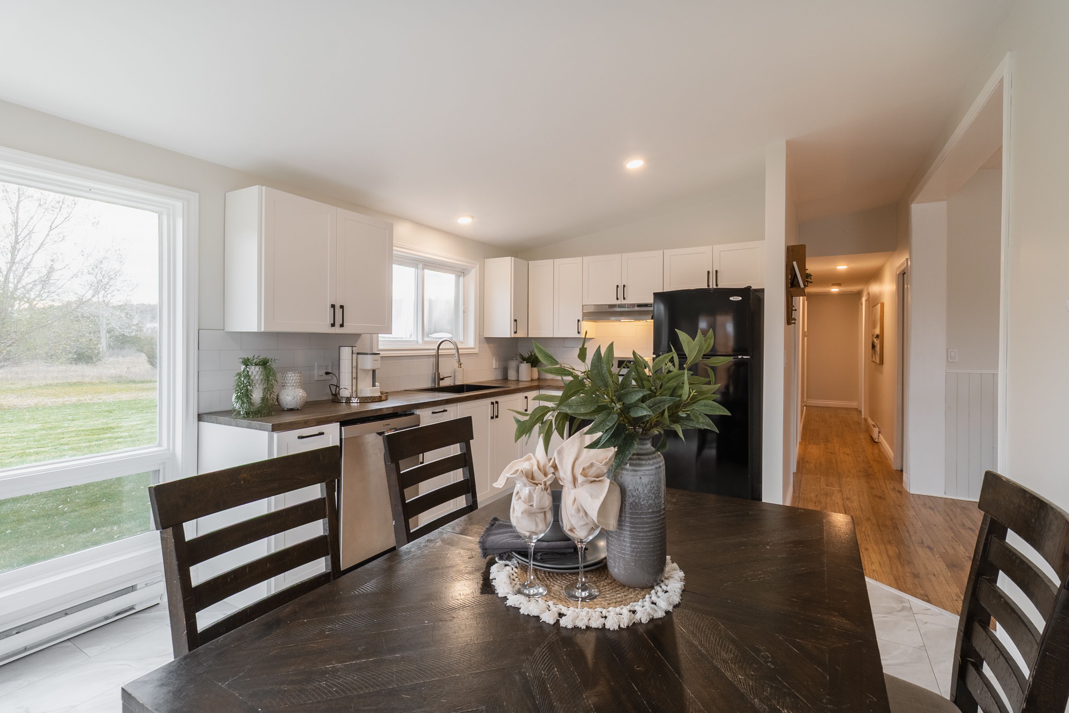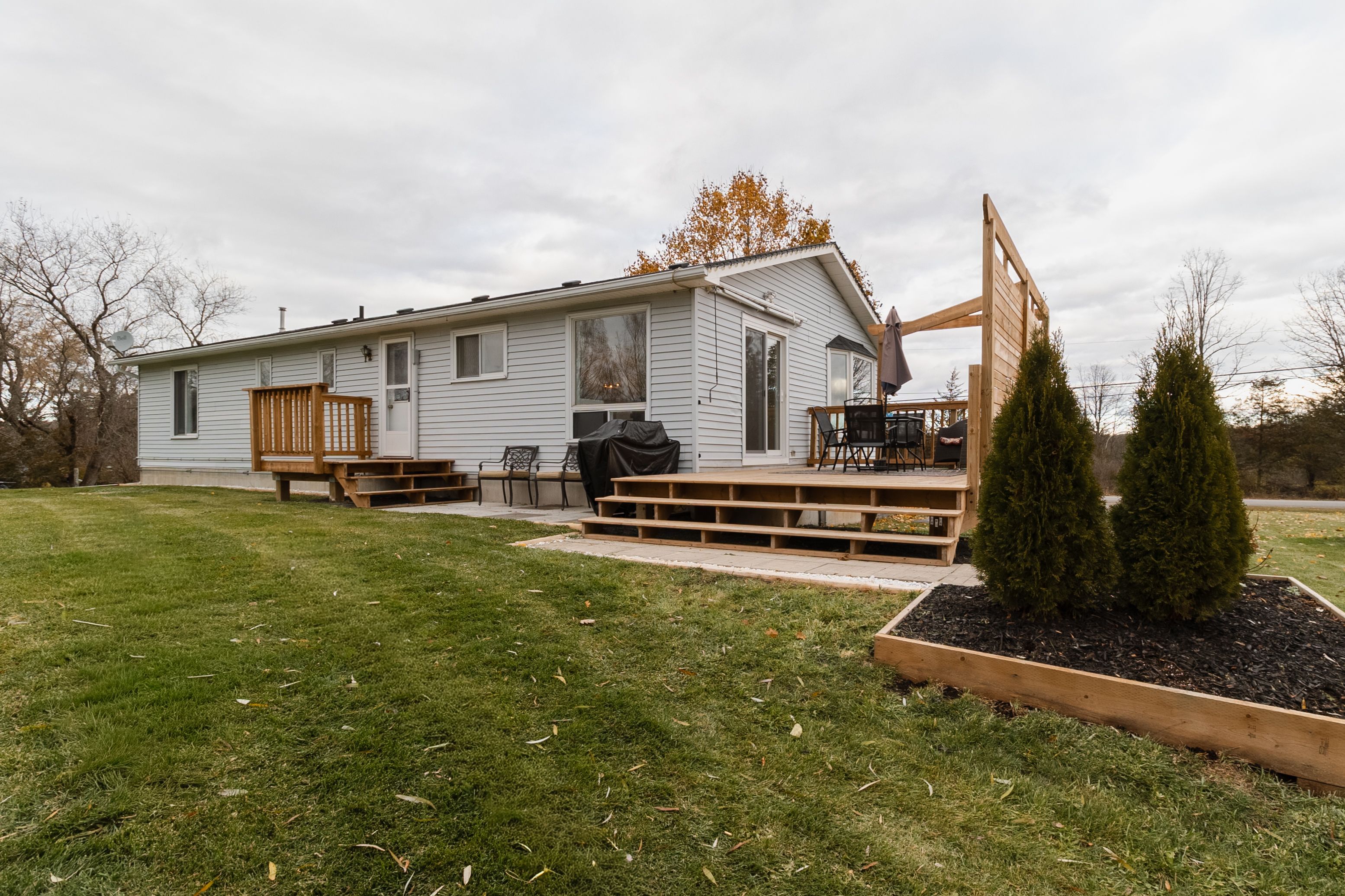 Welcome to this charming and thoughtfully updated, raised bungalow nestled in the peaceful countryside of trent hills. Located just a short drive to campbellford, warkworth, and the trent river, this home combines rural charm with everyday convenience-perfect for those seeking both comfort and tranquility. Step into the bright foyer and ascend to the main floor, where a sun-filled living room welcomes you with a large bay window and a picture window. The updated, eat-in kitchen features butcher block-style countertops, a tasteful backsplash, and a large window over the sink offering a lovely backyard view. A walk-out from the kitchen leads to the deck, ideal for morning coffee or evening barbecues. The main floor boasts three bedrooms, including a spacious primary bedroom with a double closet and an updated 4-piece ensuite complete with his-and-her sinks. An updated, main 4-piece bathroom and a convenient laundry room, with a walk-out to the backyard, complete this level. The fully finished basement offers excellent additional living space, featuring above-grade windows that fill the area with natural light. There are two additional bedrooms, a generous rec room, a cozy play area, and a storage room offering versatility for family needs, hobbies, or guests. Set on approximately half an acre with mature trees, this property provides plenty of space to enjoy the outdoors and take in the quiet, country setting.