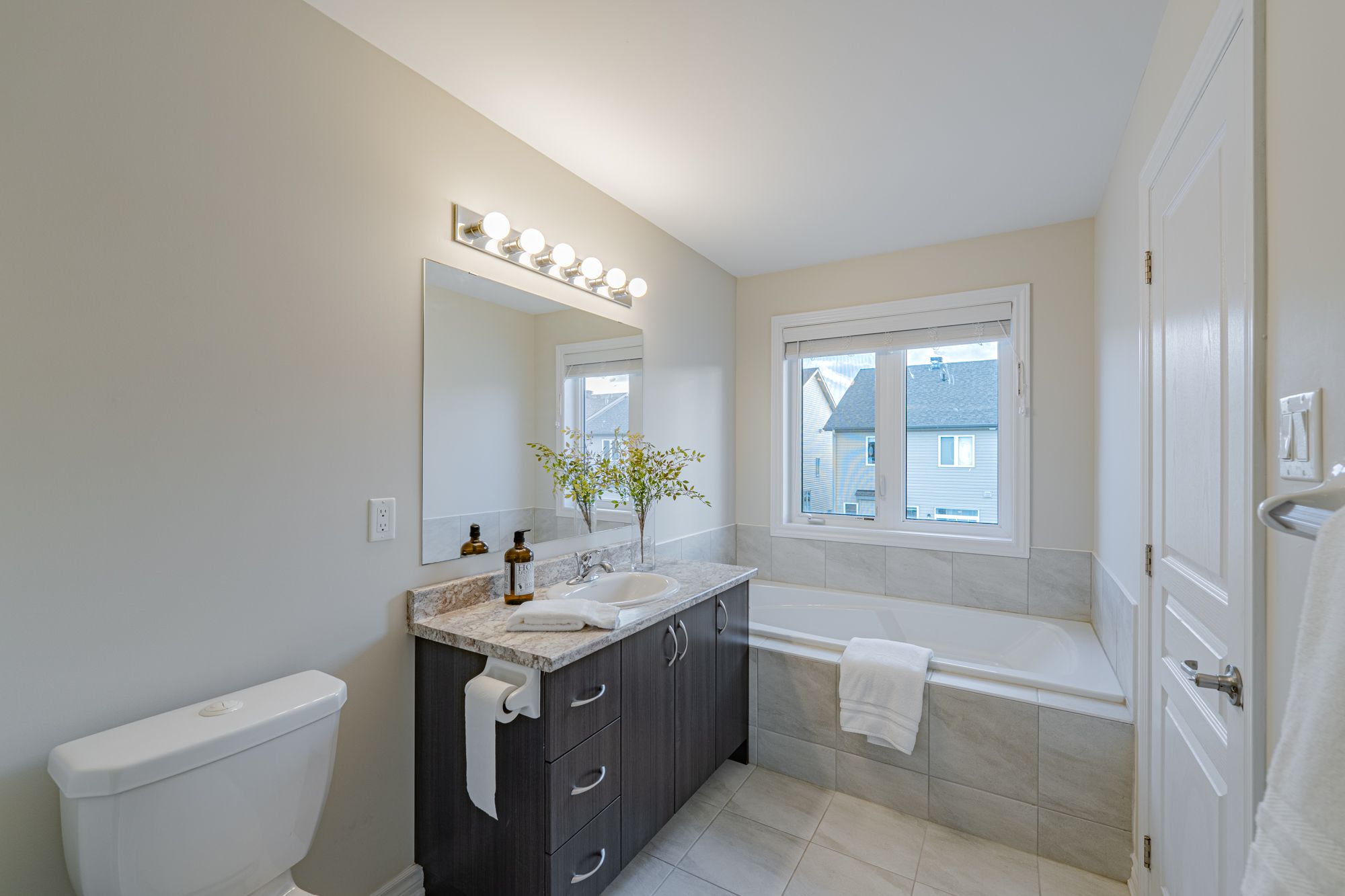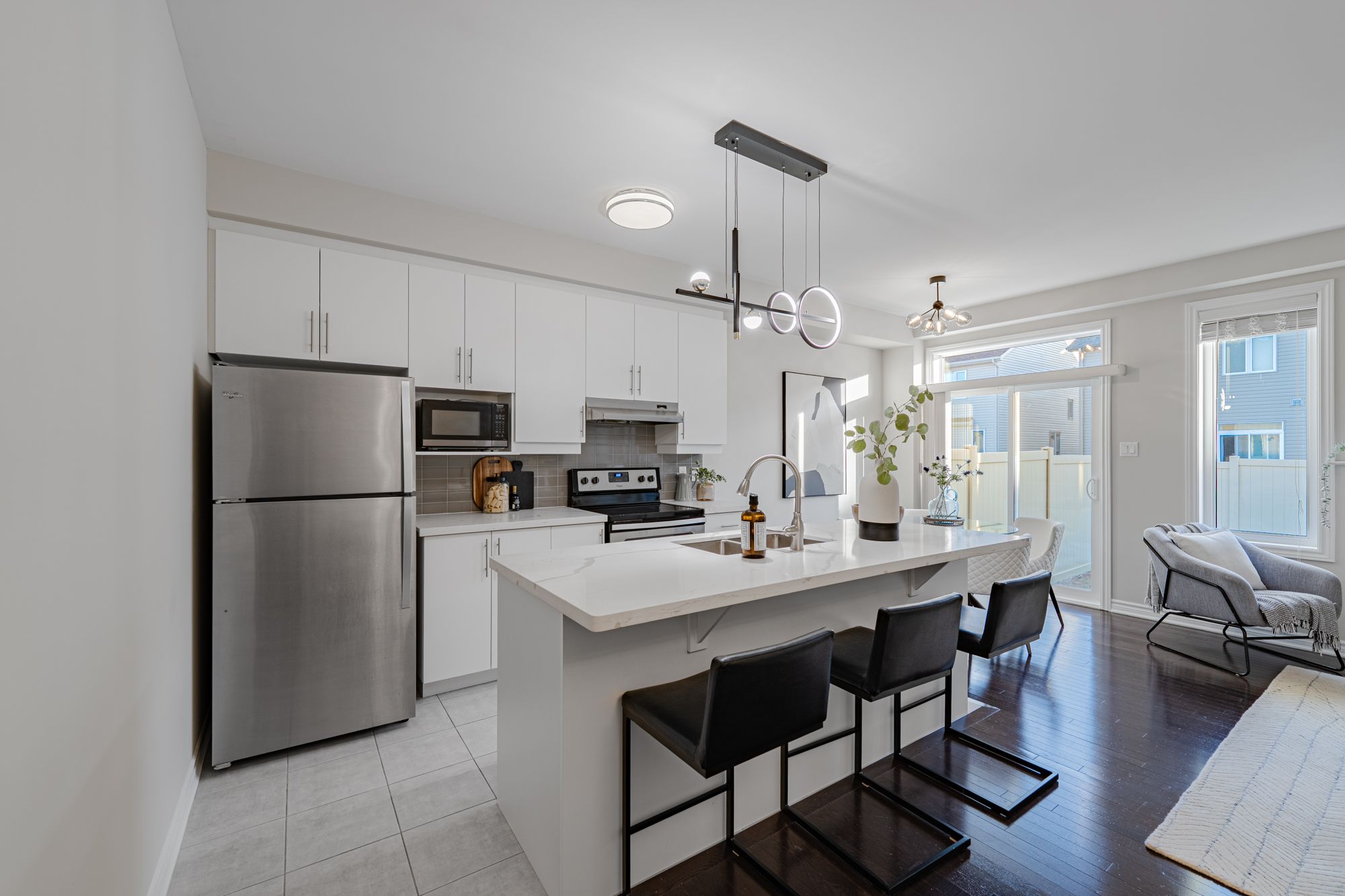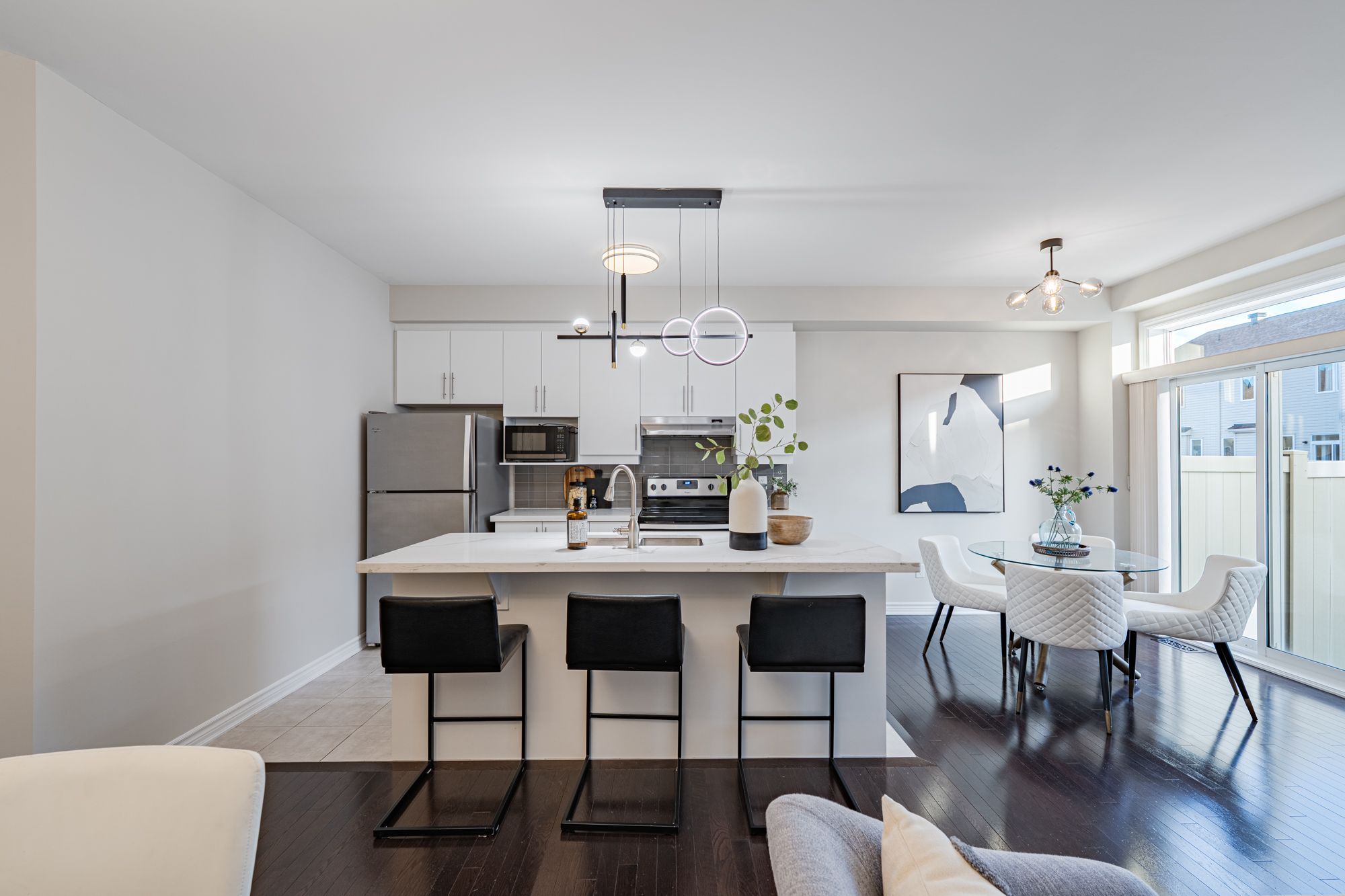 Modern 2-storey interior unit townhome facing a park in longfields, barrhaven! Built in 2017 by mattino homes, the aquamarine model offers 1,862 sq. Ft. Of living space across three floors, including a finished basement. The home has 3 bedrooms, 2. 5 bathrooms, and a south-facing backyard. The main floor features 9' smooth ceilings, hardwood flooring, an open-concept living and dining area with a gas fireplace, and a kitchen with ample cabinetry and quartz counters. A dinette sits adjacent to the kitchen with access to the backyard. A powder room and single-car garage complete the main level. The second floor has three bedrooms and two full bathrooms. The south-facing primary bedroom includes a huge walk-in closet and an ensuite with a 3'*5' shower. The two secondary bedrooms are well-sized and share a full bathroom. Laundry is also located on this level. The finished basement provides a functional family room, suitable for a home office, gym, or recreation room. A rough-in for a future 3-piece bathroom is already in place. The south-facing backyard receives sun throughout the day. The home faces a park and is within walking distance to longfields davidson heights secondary school. Barrhaven town centre, costco, and public transit are just minutes away.