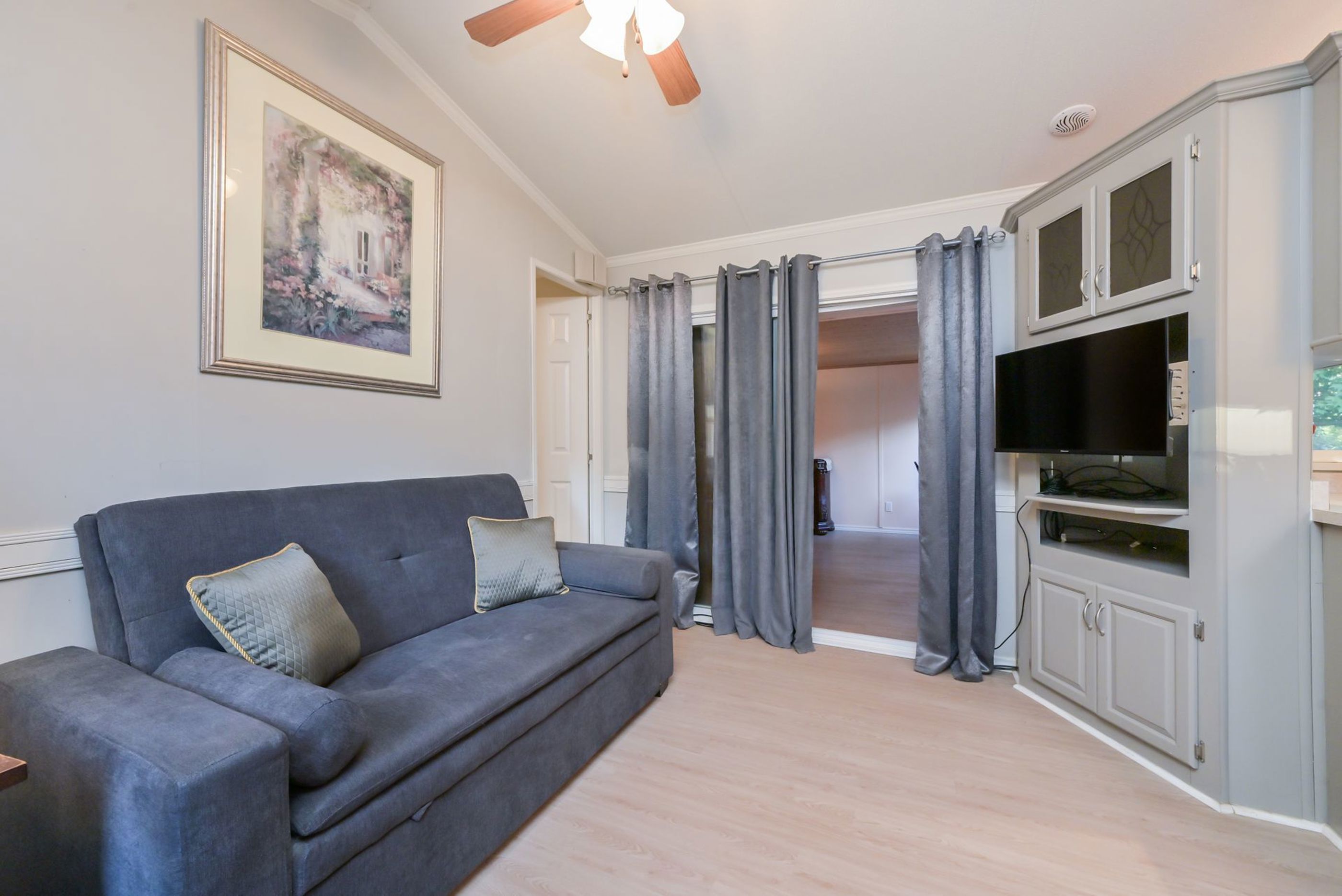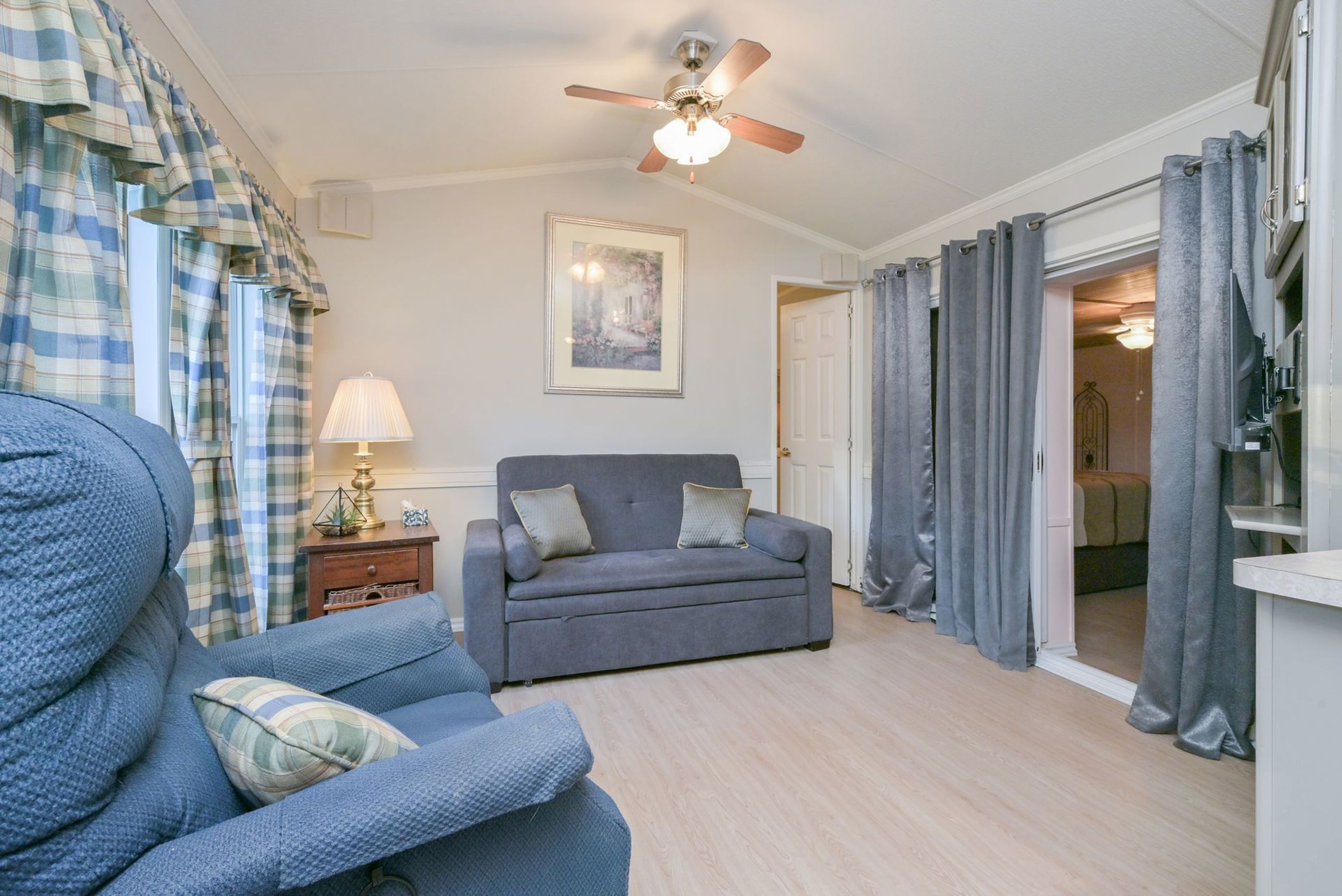 Affordable year-round living at rolling acres campground! Discover comfort and convenience in this beautifully maintained 2-bedroom, 1-bathroom home, featuring a bonus room perfect as a 3rd bedroom, home office, or extra storage. This versatile space adapts to your needs, whether you're downsizing, retiring, or simply seeking a peaceful escape surrounded by nature. Step into the open-concept kitchen with ample cupboard space ideal for cooking and entertaining. The spacious living area flows seamlessly out to a massive deck overlooking the scenic nottawasaga river, offering tranquil views and the perfect spot for morning coffee or evening relaxation. Oversized master bedroom with cozy gas fireplace! 2 garden sheds perfect for additional storage space. Located just minutes from alliston, honda of canada manufacturing, and the nottawasaga inn resort, this home combines rural charm with convenient access to local amenities. Whether youre looking for affordable year-round living, a retirement retreat, or a nature lovers haven, this property checks all the boxes- gated community with check-in attendant! Monthly fees roughly $730 + hst (includes water, septic pump outs, garbage and property taxes)
