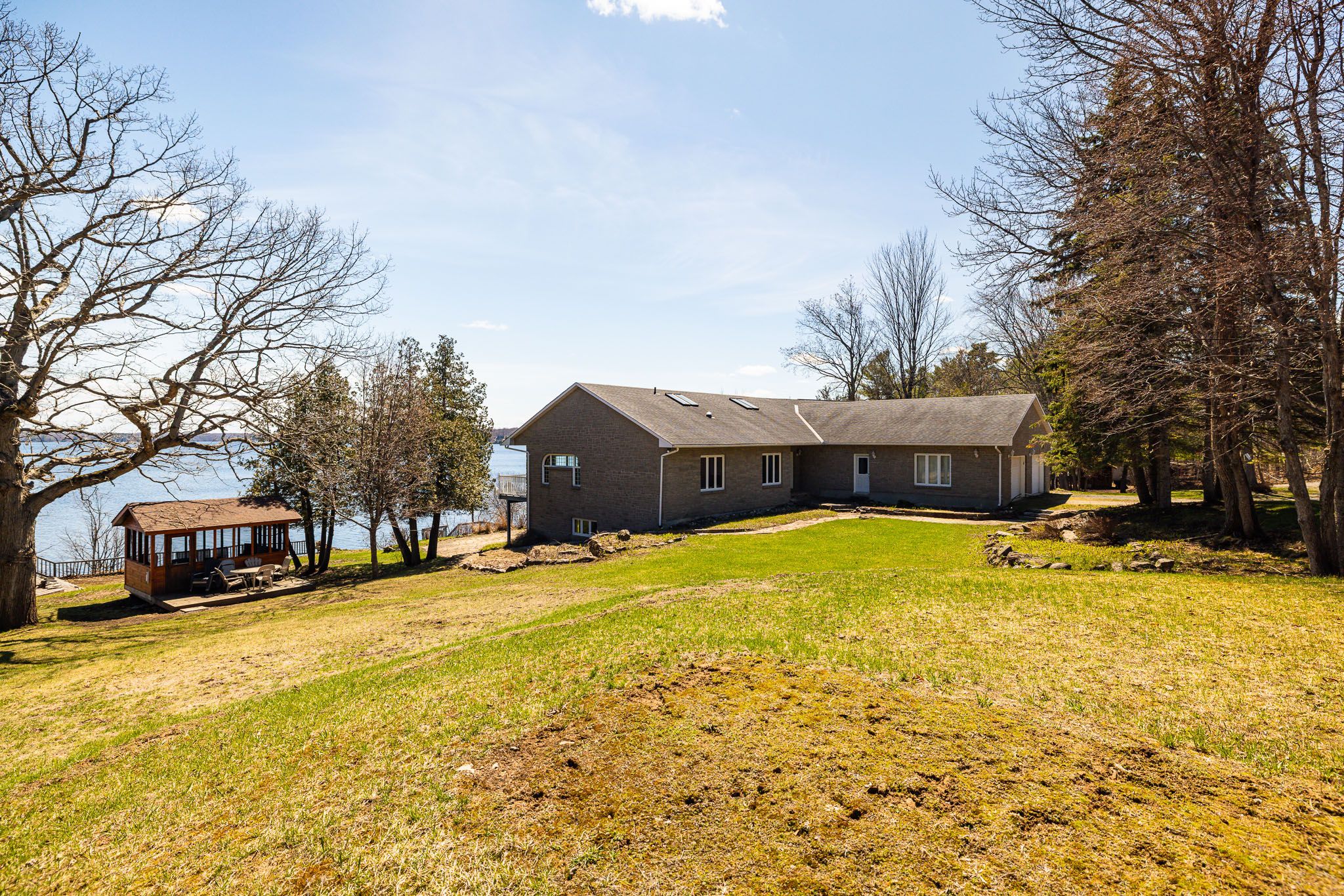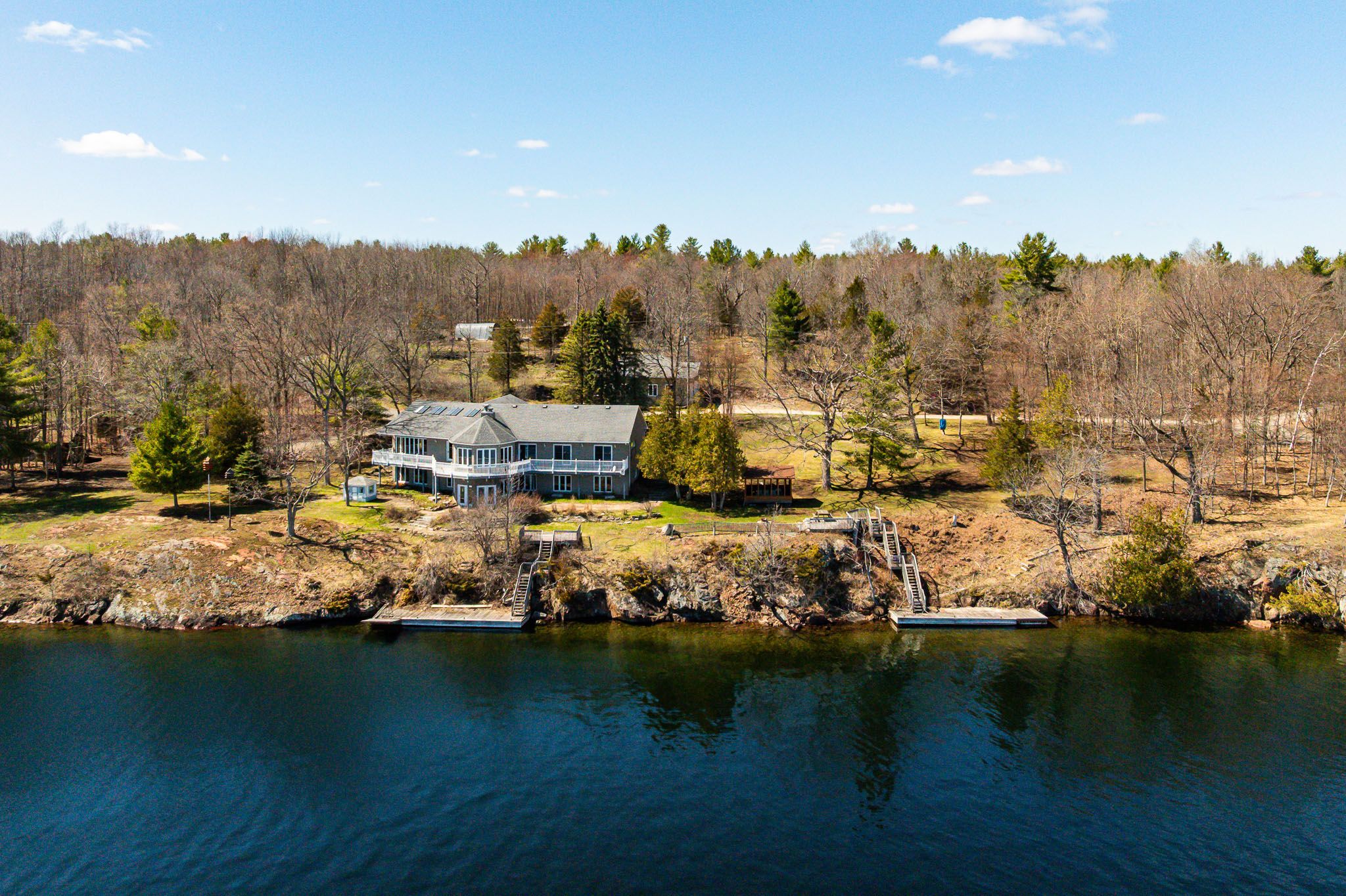 Welcome to a never-before-offered waterfront estate on the prestigious north shore of big rideau lake; part of the world-renowned rideau canal, a designated unesco world heritage site; offering a truly rare opportunity to secure a legacy property with endless possibilities. Set on a private, wooded acreage with breathtaking southeast exposure and exceptional deep-water frontage, this offering is ideal as a luxurious family compound, private retreat, or future development opportunity. The bungalow offers over 5700 sq ft of living space with a bright, functional layout designed for both everyday living and hosting. Featuring four main-level bedrooms and a fully finished walk-out basement, there is ample space for extended family and guests. Inside, you'll find a sun-filled interior enriched by gorgeous millwork throughout, a sunroom, four fireplaces, and a spacious primary suite complete with built-in storage and a 4-piece ensuite. The chef's kitchen is thoughtfully appointed with a wine fridge, built-in oven, and cooktop; perfect for entertaining. Outdoors, the lifestyle truly comes to life. A large deck and gazebo create the perfect setting for lakeside gatherings, seamlessly leading to a large dock and pristine, deep-water access; ideal for swimming, boating, and enjoying everything big rideau has to offer. The property is as impressive in function as it is in setting, featuring a oversized detached garage (apprx 30x40ft) with space for multiple vehicles and a heated workshop. Adding to its value and versatility, the property could be parceled together with the two adjacent two acre lots on either side of the home creating a unique opportunity for multi-generational ownership, resale, or future development. This is more than a home; it's a once-in-a-lifetime opportunity to own a landmark property on one of the rideau's most sought-after shorelines, offering privacy, scale, and limitless potential.