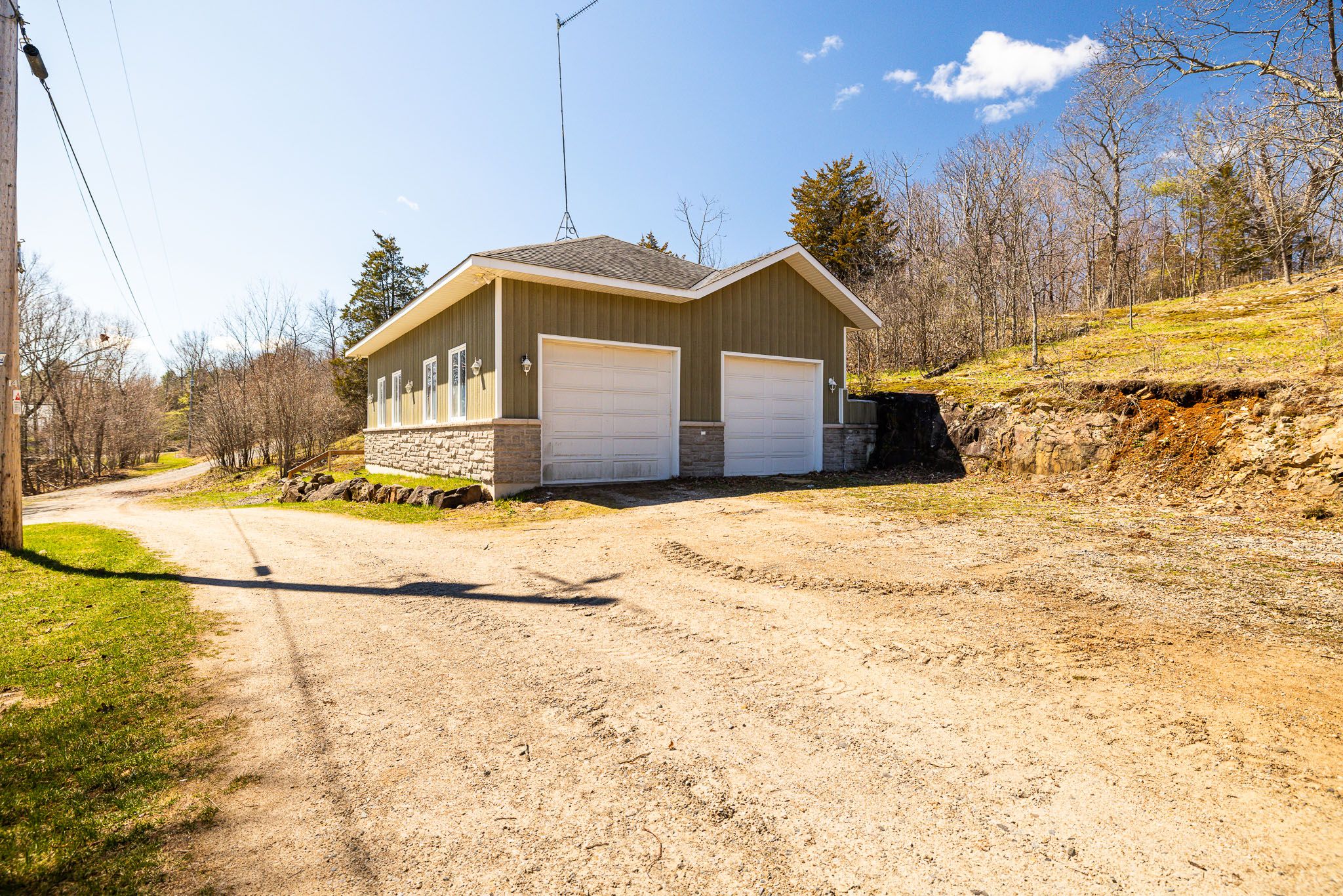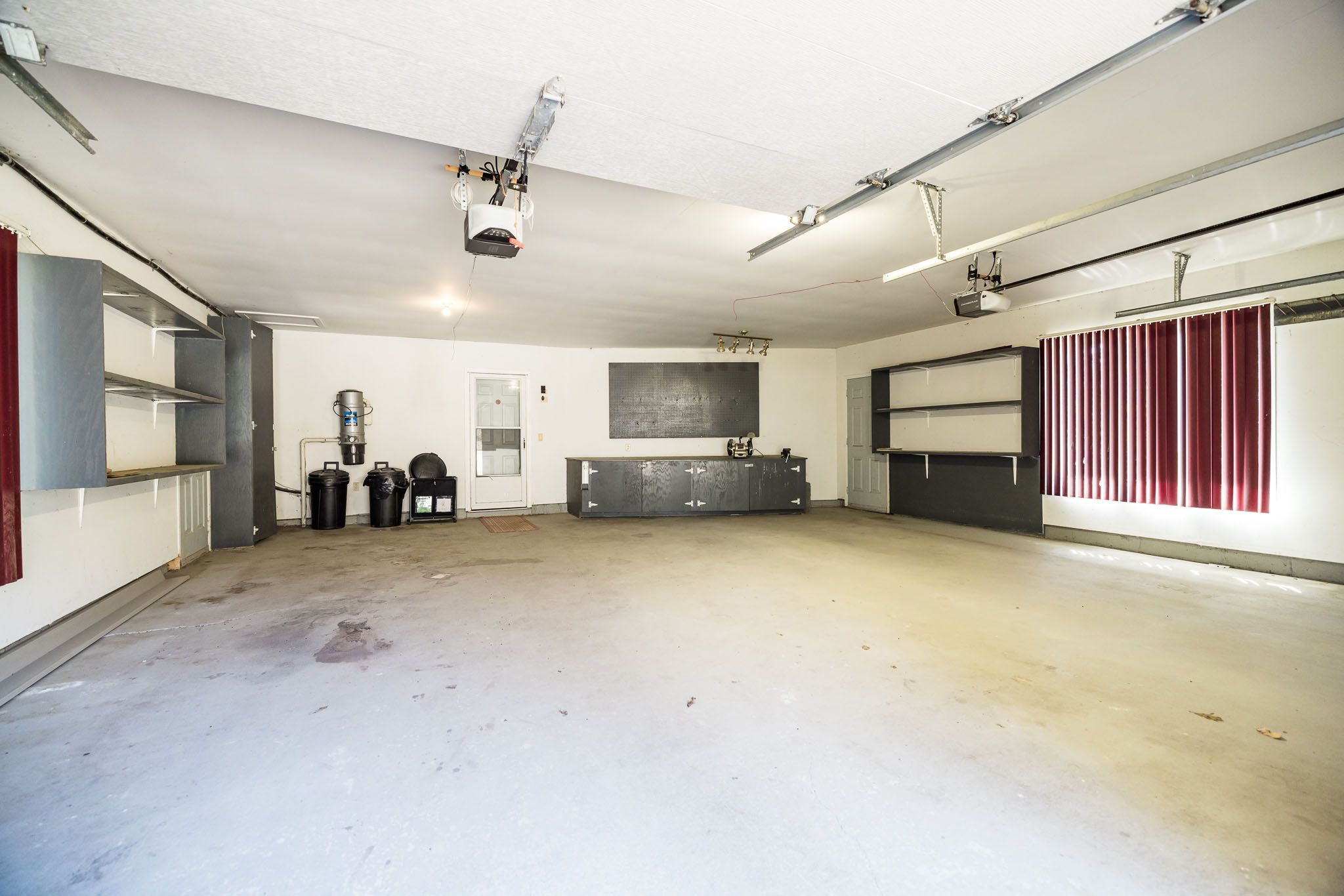 • Oversized garage with heated workshop offers ample space for multiple vehicles.