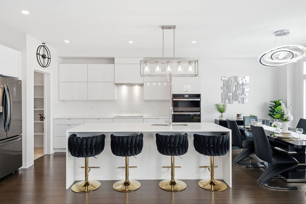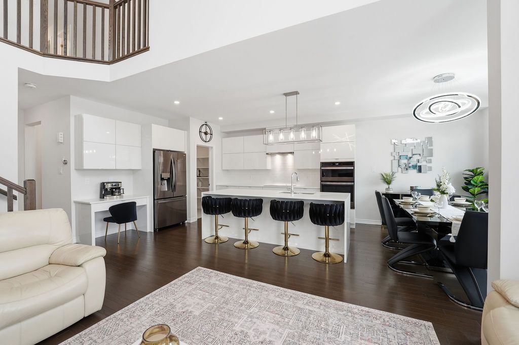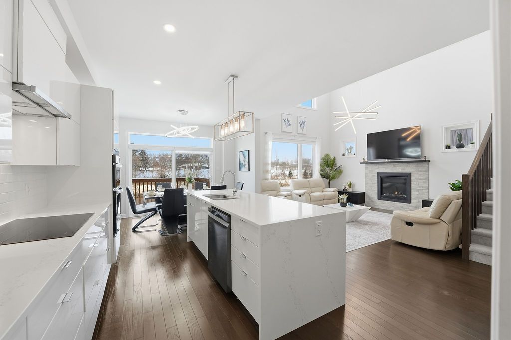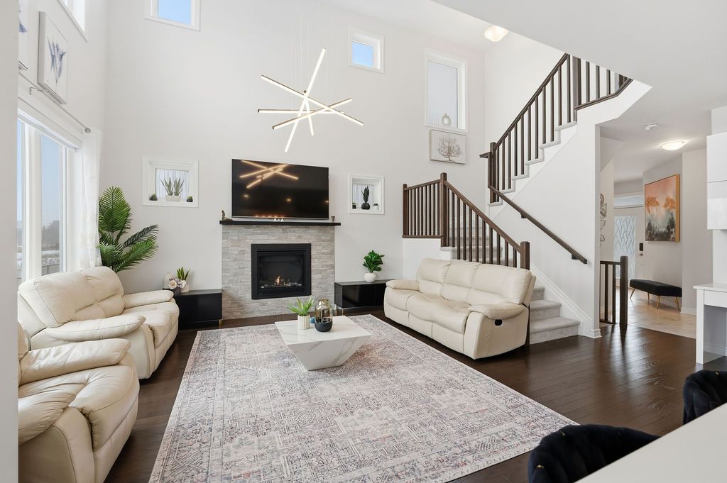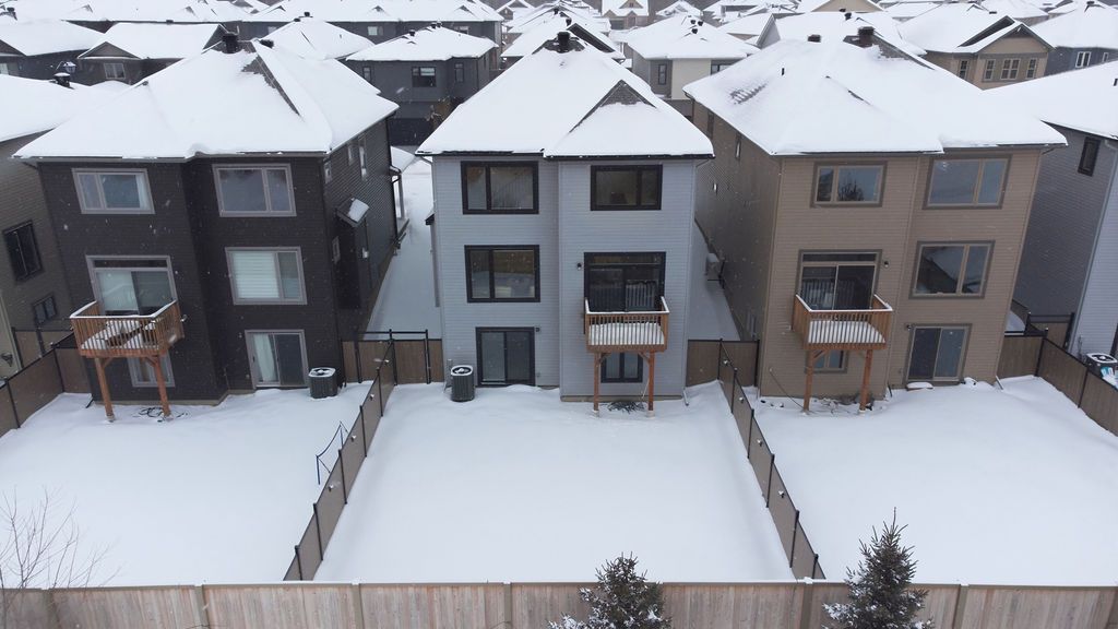 Premium lot onto pond and trail view! Extensively upgraded executive home offering modern design, smart technology, and a fully finished walkout basement with in-law or income suite possibility. This almost new and move-in ready property features a chef inspired kitchen with custom white cabinetry, hanstone quartz countertops with waterfall island ends, built-in cooktop, oven, and microwave, and a stainless steel slide out hood fan. The open concept main living area is enhanced by pot lighting throughout, a custom ceramic tile fireplace surround, and a raised fireplace feature with 18 ft ceilings , creating a warm and inviting space with lots of extra windows flooding the space with natural light. Upstairs, the primary bedroom offers a luxurious ensuite with a full ceramic shower, custom glass enclosure, double sinks, upgraded fixtures, and caesarstone countertops. Additional bedrooms are well sized and complemented by a modern full bathroom convenient laundry room. The 2nd floor loft is perfect for a home office, 2nd living area or play area for kids. The fully finished walkout basement adds exceptional versatility and includes a very large bedroom, full bathroom, rec room, and an electric fireplace. Fully fenced backyard is spacious and private with no rear neighbors. Notable upgrades include 200-amp electrical service, ev charger , lutron smart switches, nest smart thermostat and a finished garage complete with a smart garage opener with camera. A thoughtfully upgraded smart home designed for comfortable and connected living, book your private showing today.