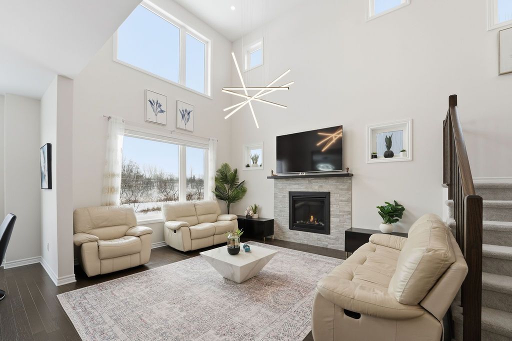 Welcome to 605 enclave lane, an extensively upgraded executive home on a premium lot backing onto a tranquil pond and scenic walking trail, offering exceptional privacy with no rear neighbours. This nearly new, move-in ready home blends luxury finishes with smart home functionality. The chef inspired kitchen features custom white cabinetry, hanstone quartz countertops with waterfall island, built-in cooktop, wall oven, microwave, and a sleek stainless steel hood fan. The open-concept living space impresses with soaring 18 foot ceilings, expansive windows, pot lighting throughout, and a striking raised fireplace with custom tile surround, creating a bright and inviting atmosphere. Upstairs, the primary suite offers a spa like ensuite with glass shower, double vanity with caesarstone countertops, and upgraded fixtures. The other bedrooms are generously sized, complemented by a full bathroom, convenient laundry room, and a huge versatile loft, perfect for a home office or additional living space. The fully finished walkout basement provides excellent flexibility with a large bedroom, full bathroom, rec room, and electric fireplace, ideal for an in-law suite or income potential. Enjoy a fully fenced backyard with direct access to nature. Notable upgrades include 200-amp service, tesla ev charger, lutron smart switches, nest thermostat, and a finished garage with smart opener and camera. A rare opportunity to own a modern, smart enabled home in a premium location. Book your private showing today.