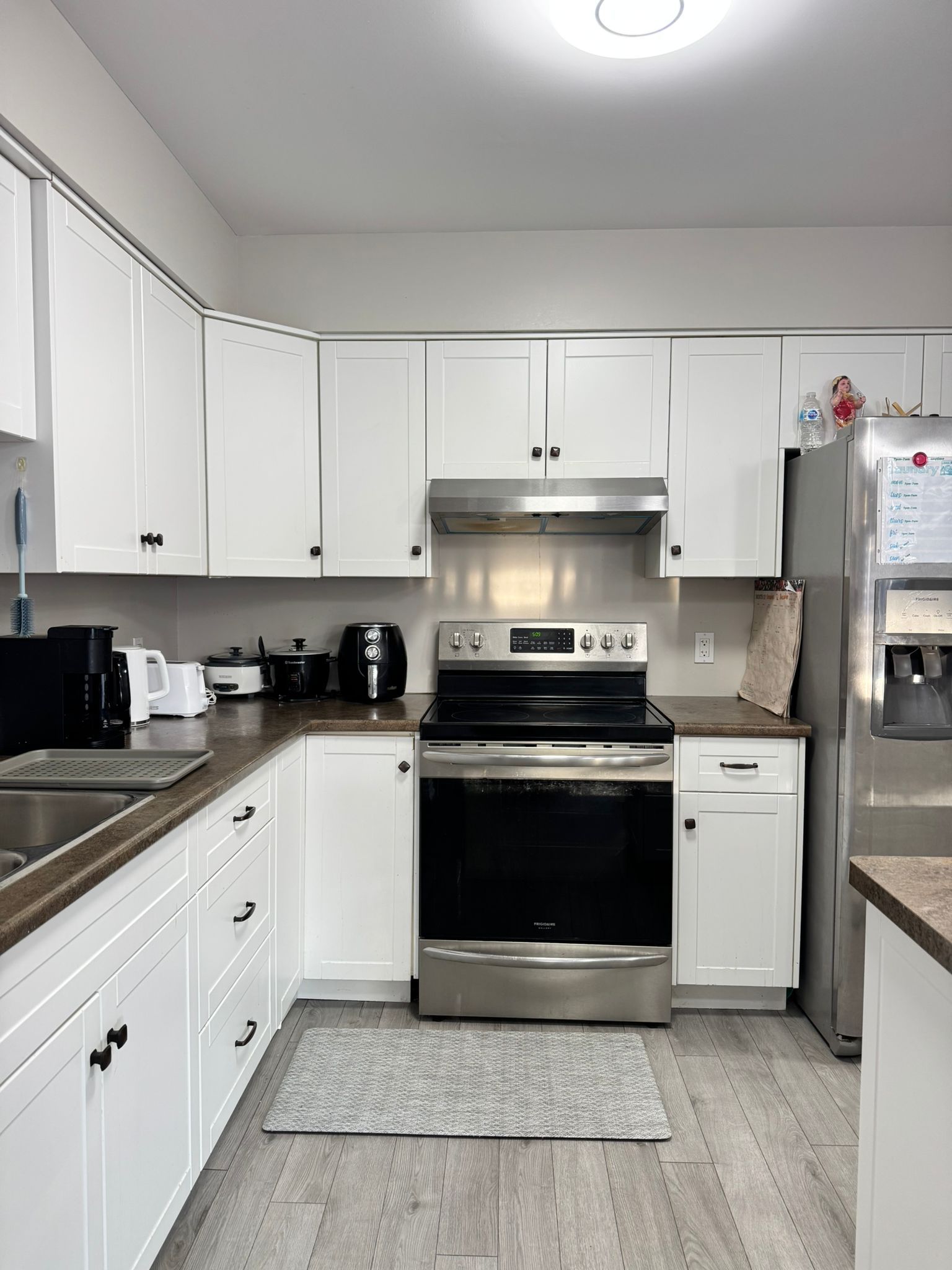 • Finished basement with separate entrance, full kitchen, and bathroom.